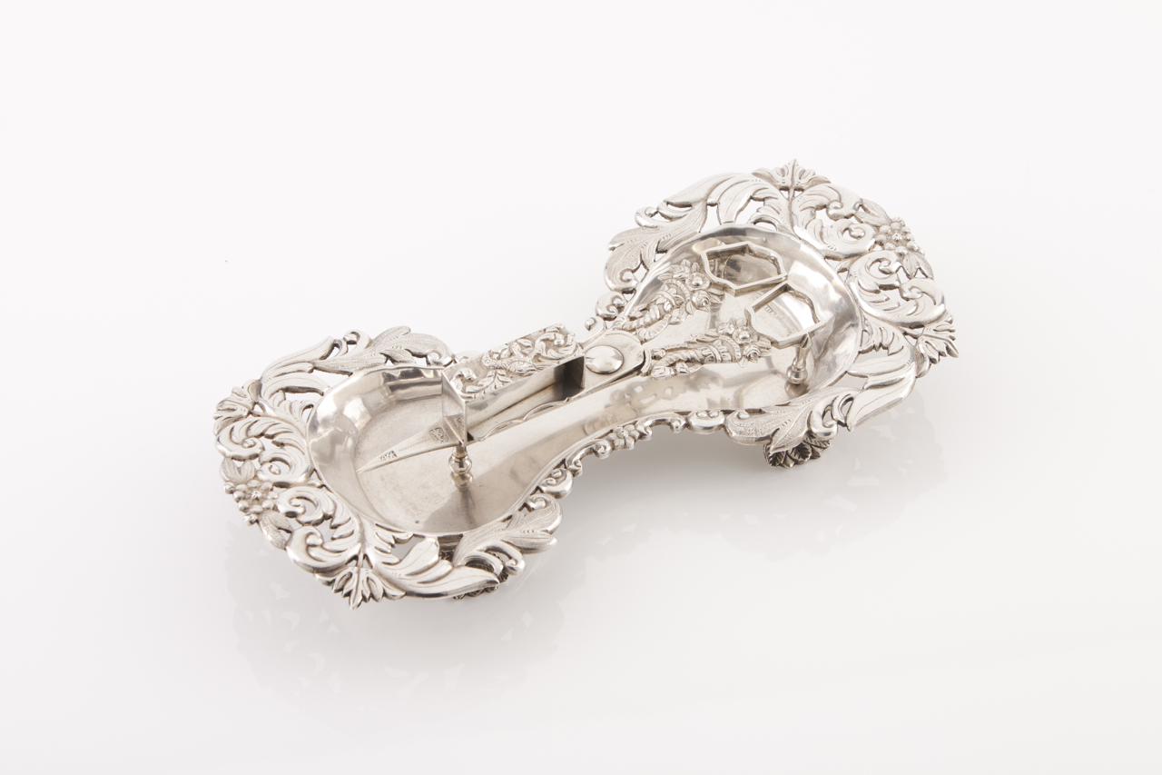 Snuffers tray with pierced romantic decoration, Porto assay mark (1861-1867) and Manuel António dos Santo Silva maker''''s mark (1870-1886).