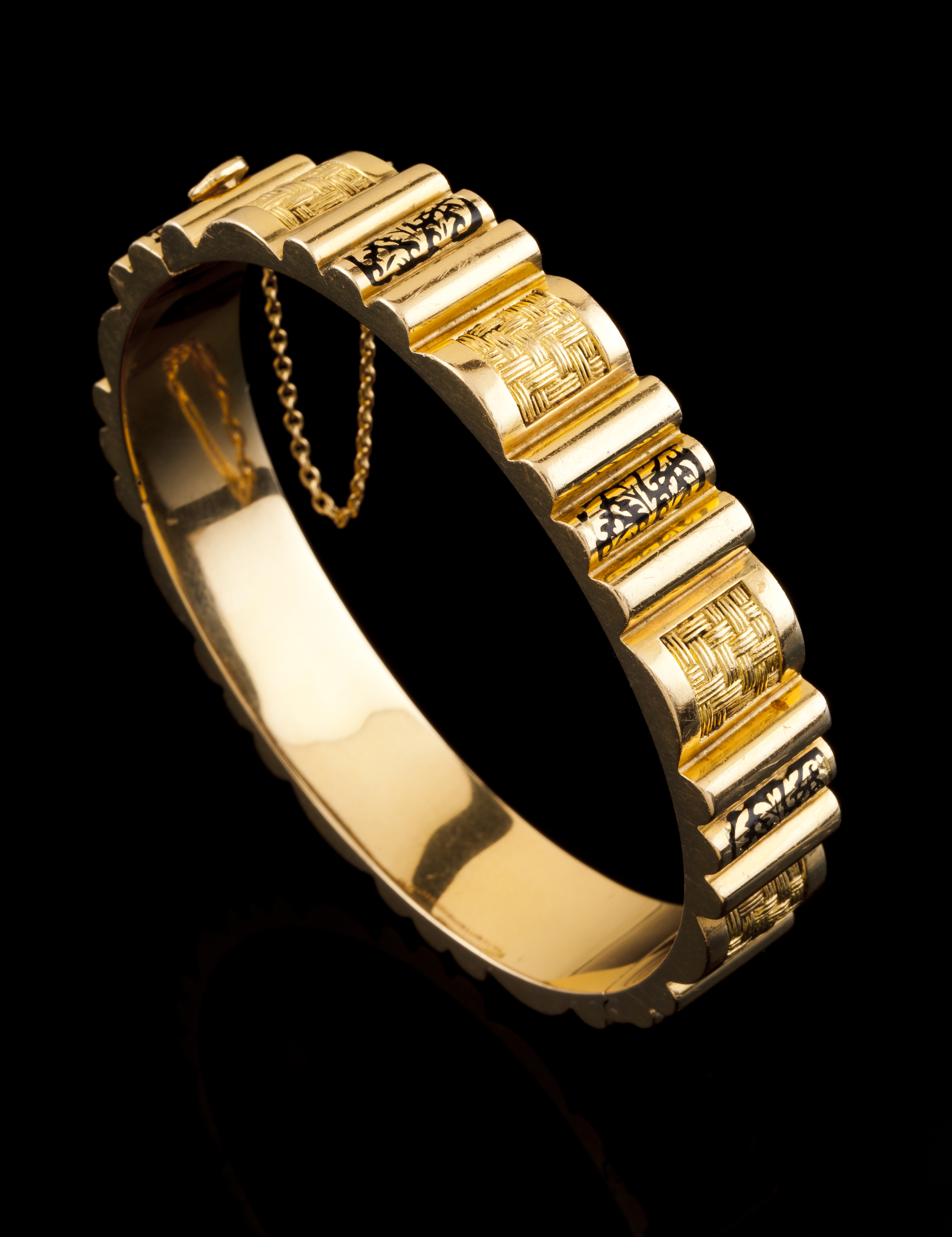 Fluted, braided and partly black enamelled decoration