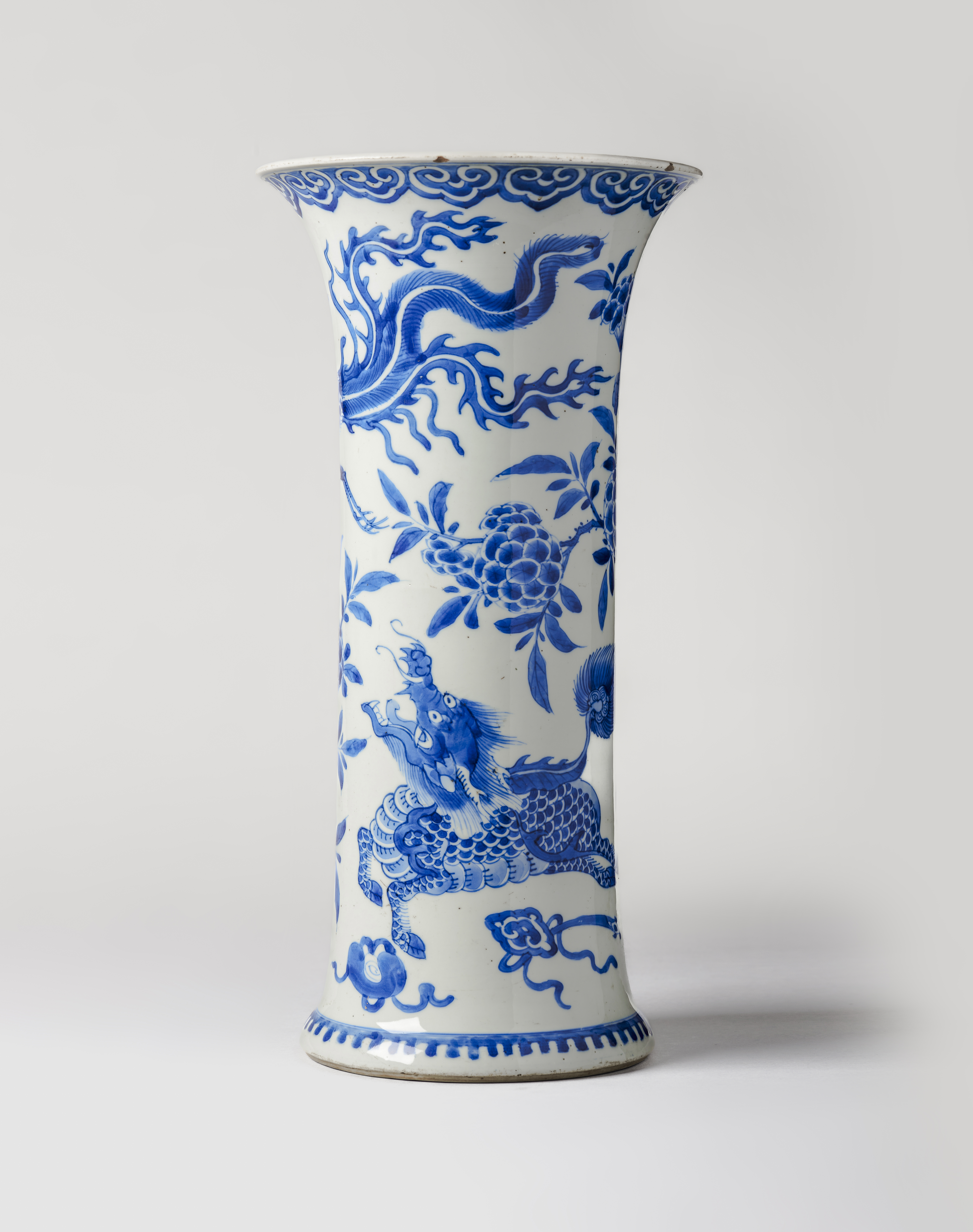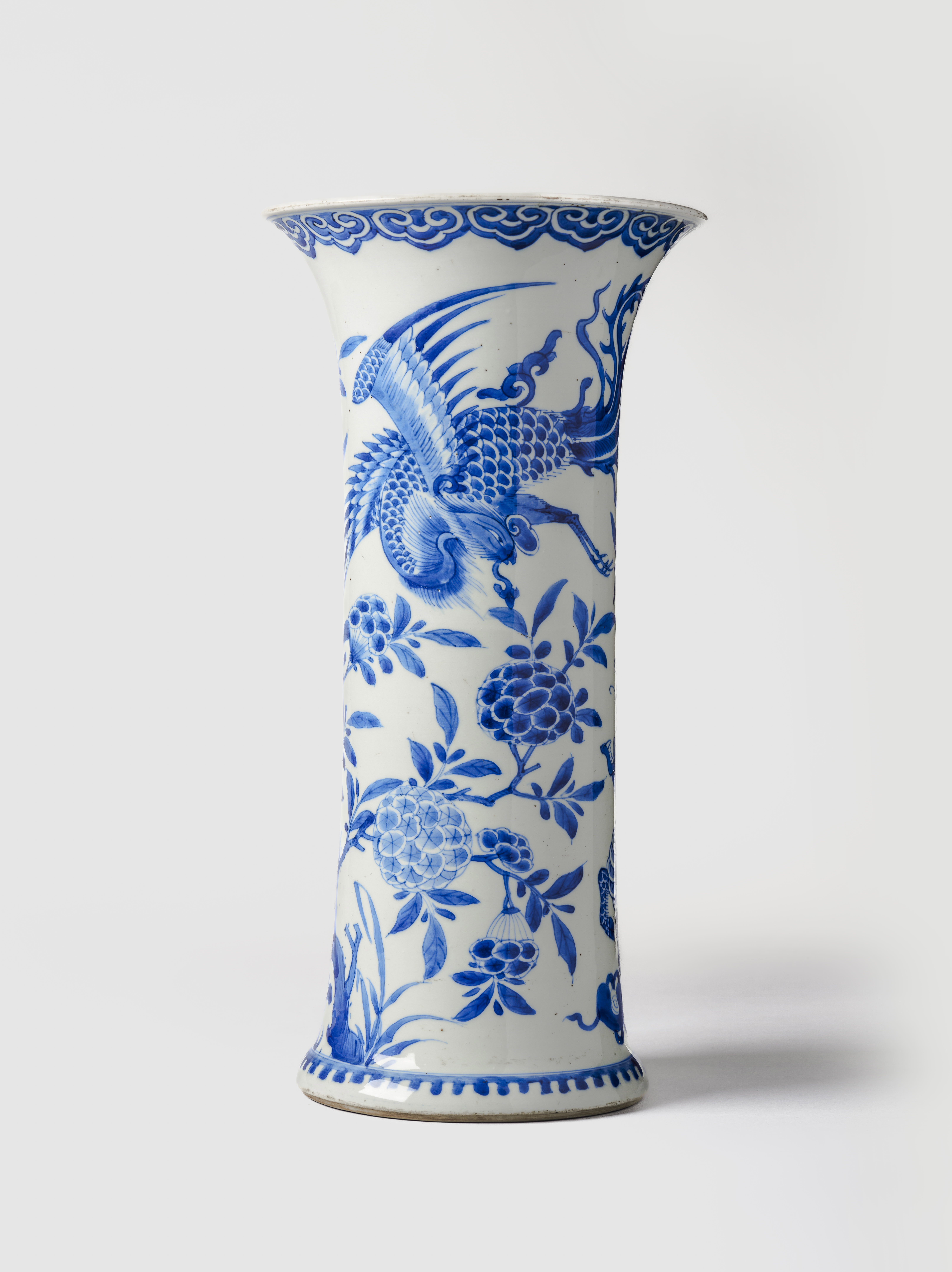 A blue and white 'phoenix and qilin' beaker vase 康熙时期青花"凤凰麒麟"瓜形瓶
