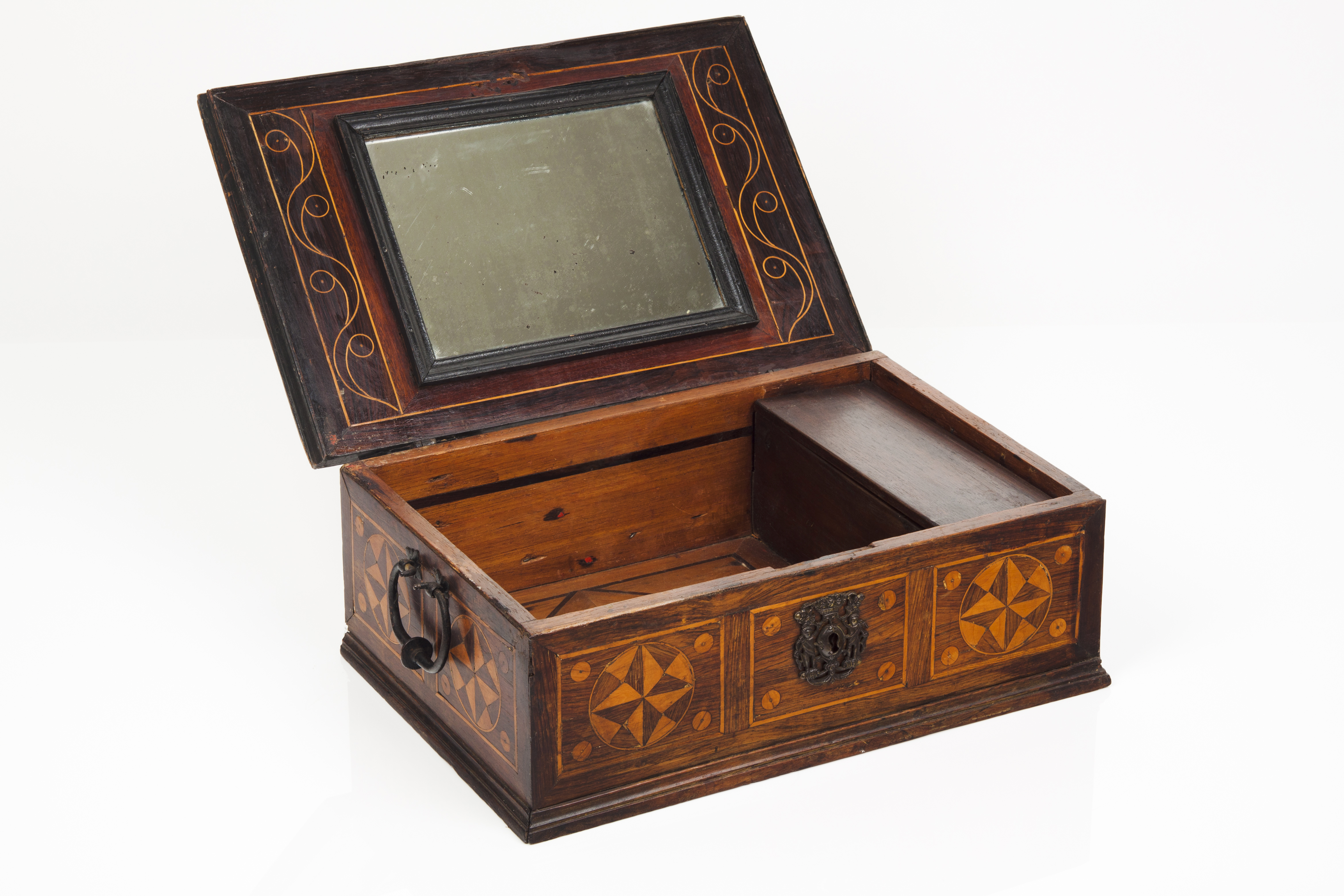 Rosewood and boxwood geometric marquetry