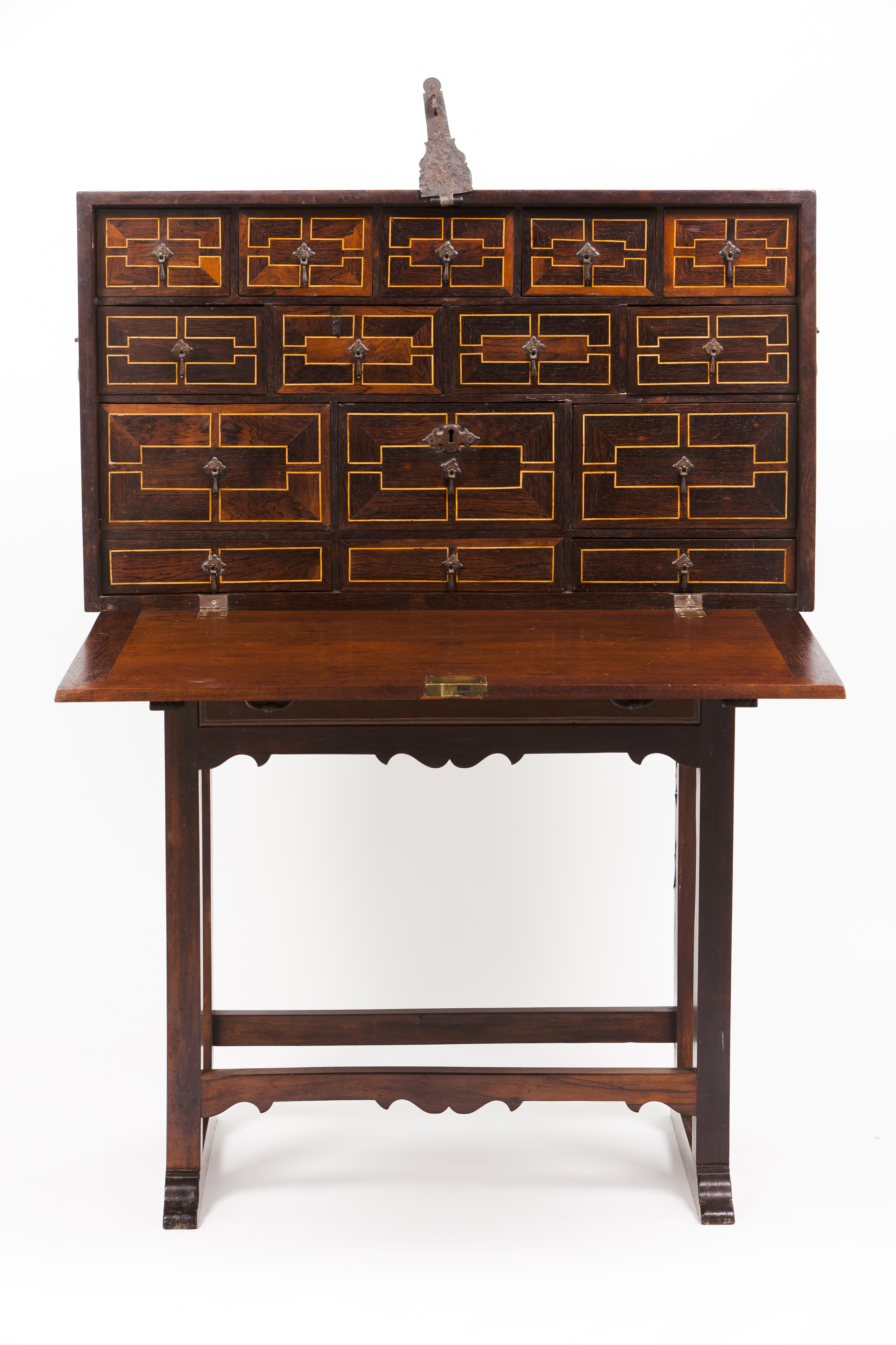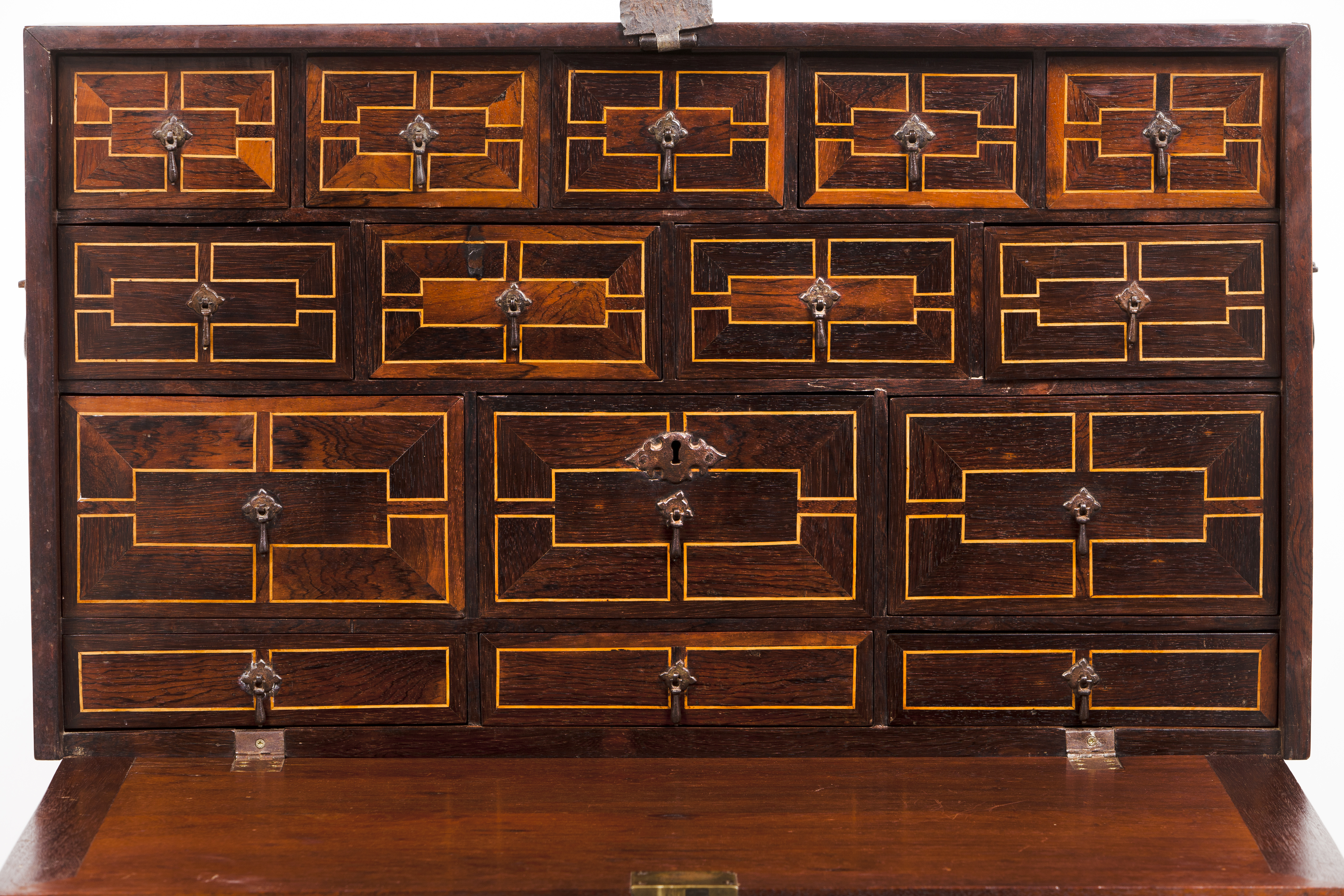 Fifteen inner drawers with rosewood and boxwood veneered fronts