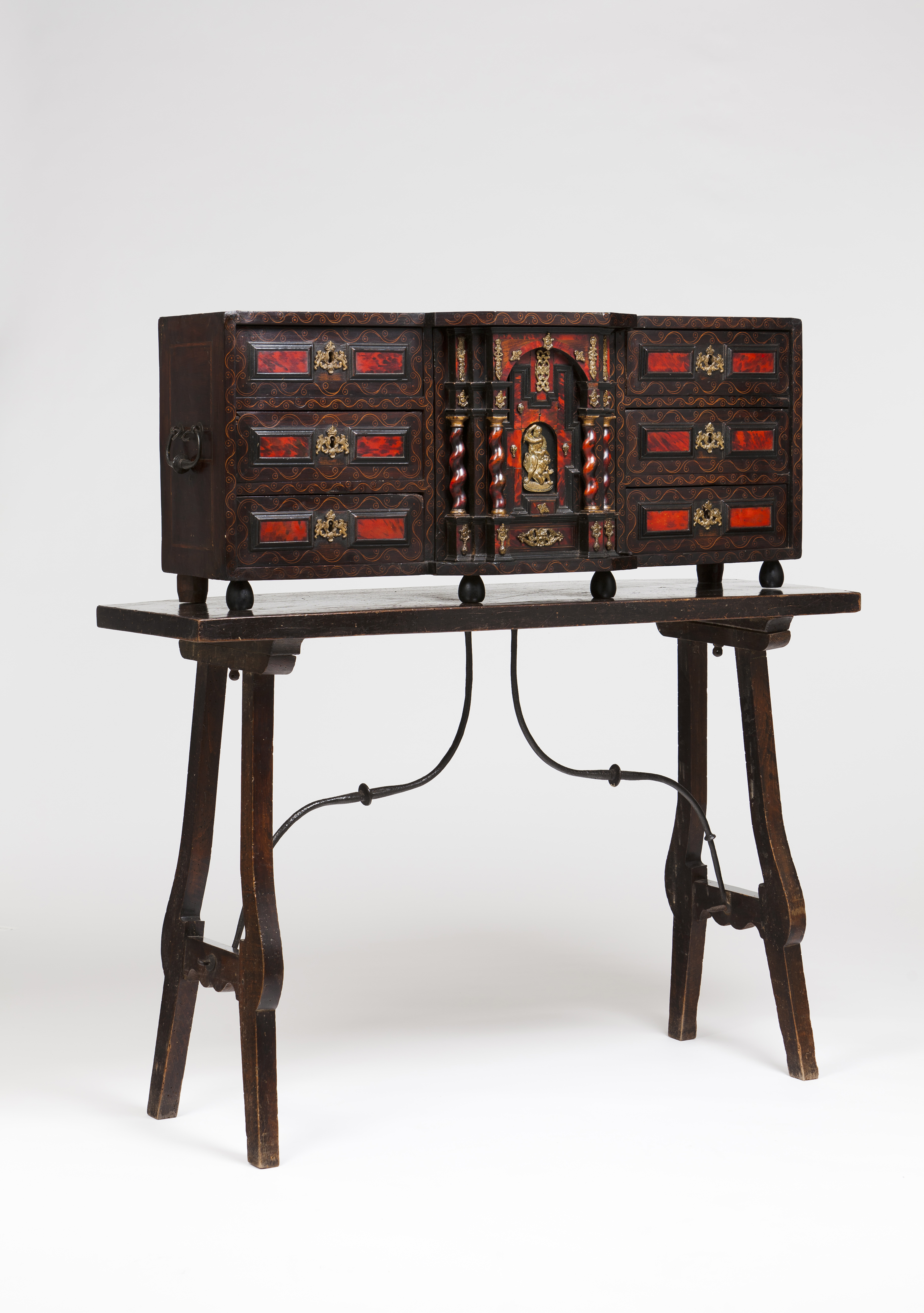 Central door flanked by columns, tortoiseshell plaques and gilt bronze elements depicting Hercules and the Nemean Lion