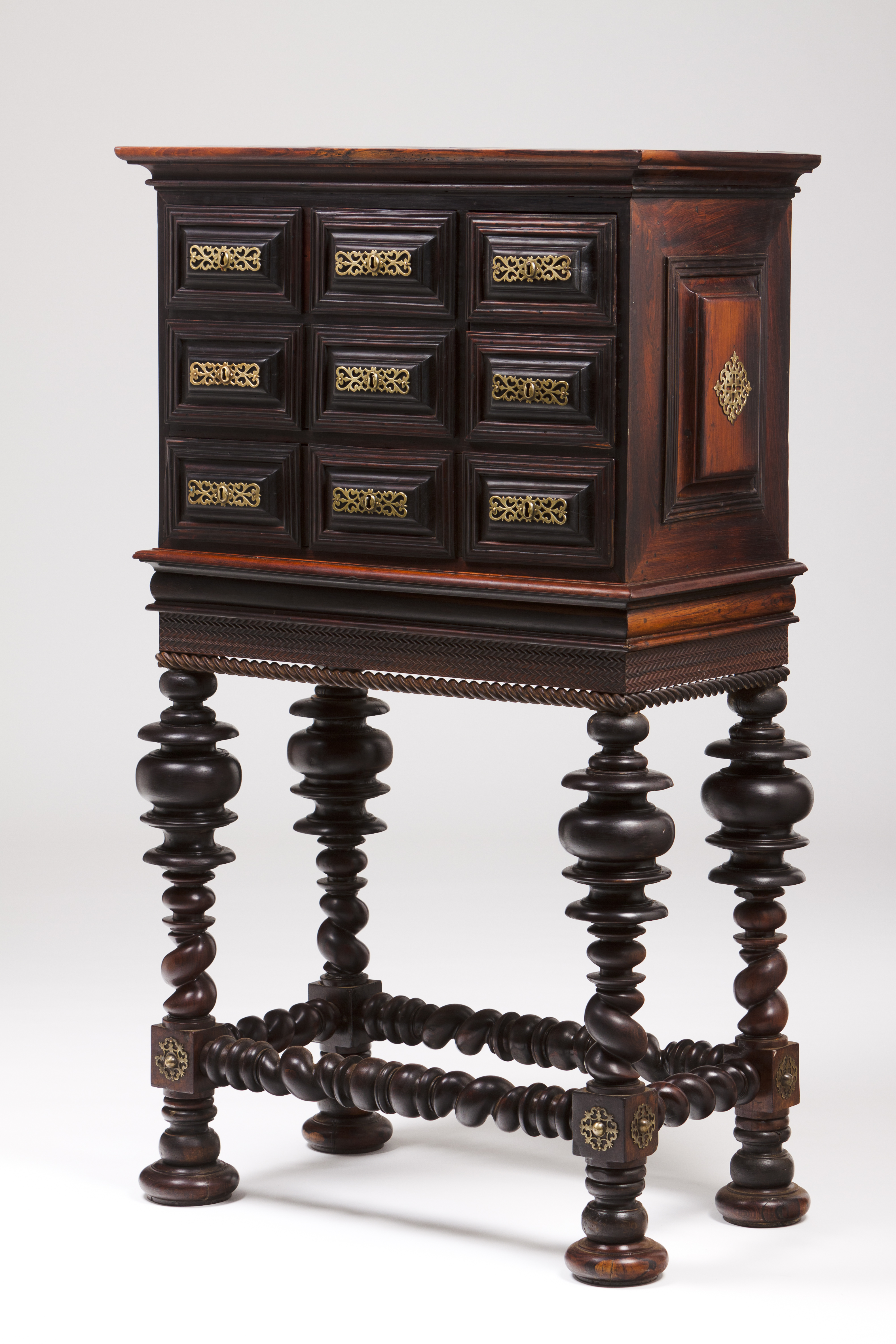Rosewood and rosewood veneered, With five drawers simulating nine