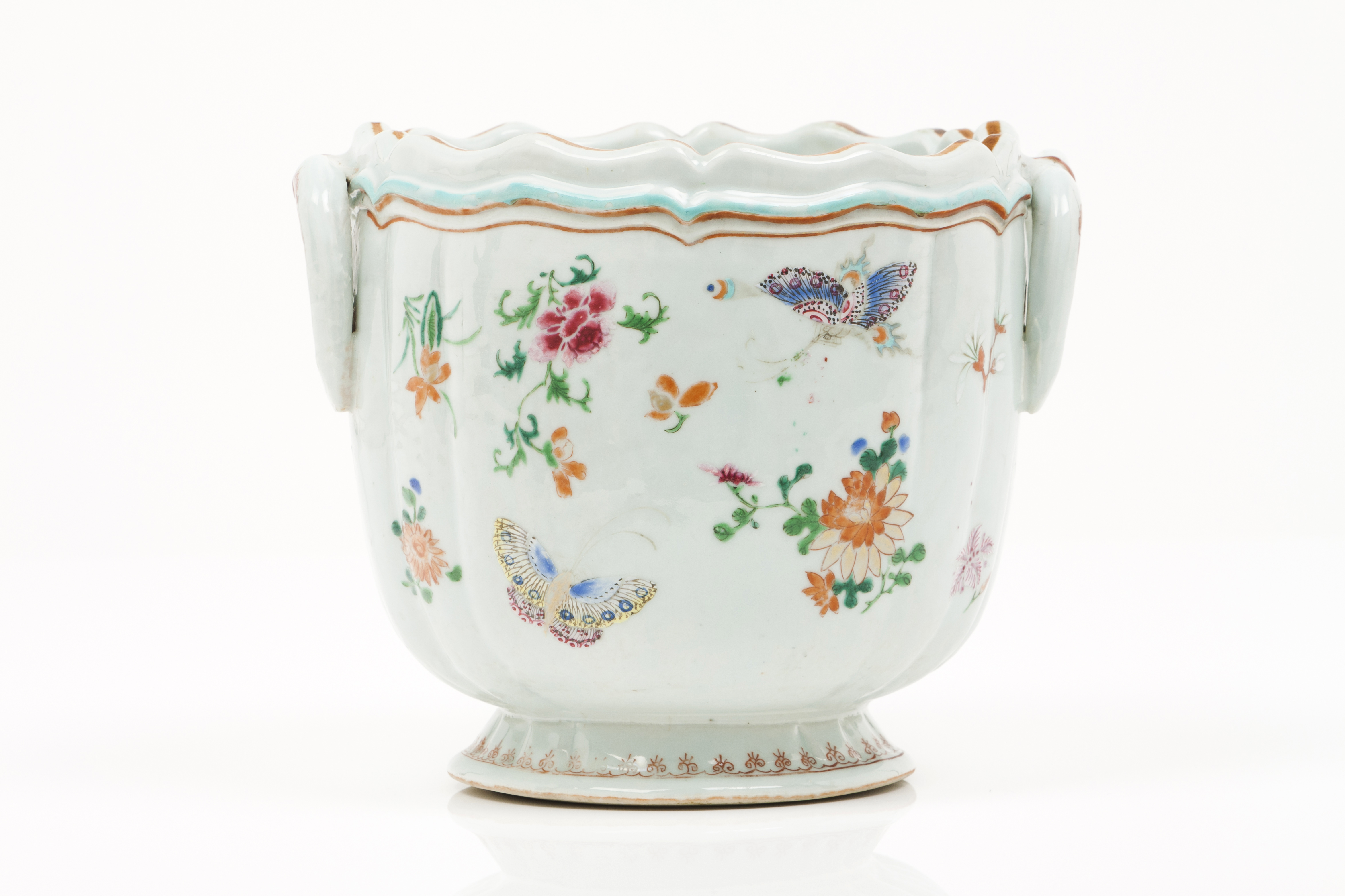 Polychrome "Famille Rose" enamelled decoration with flowers and butterfly