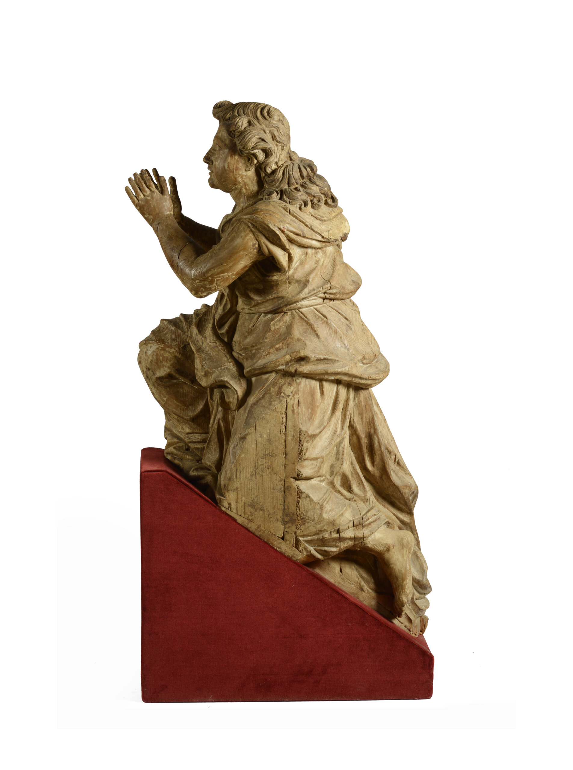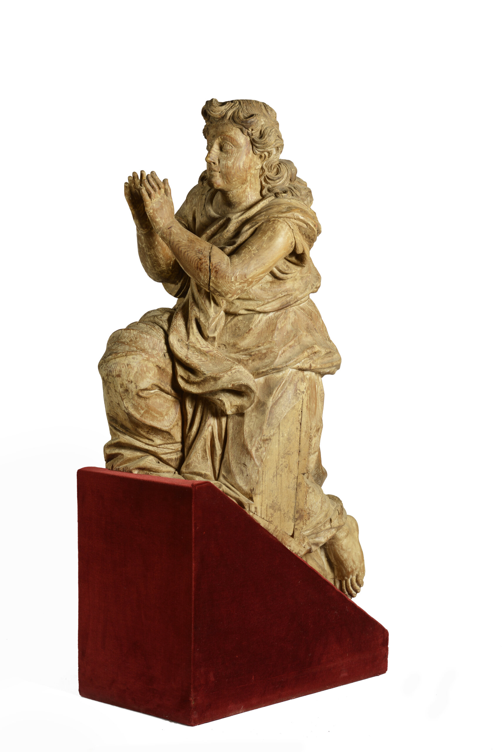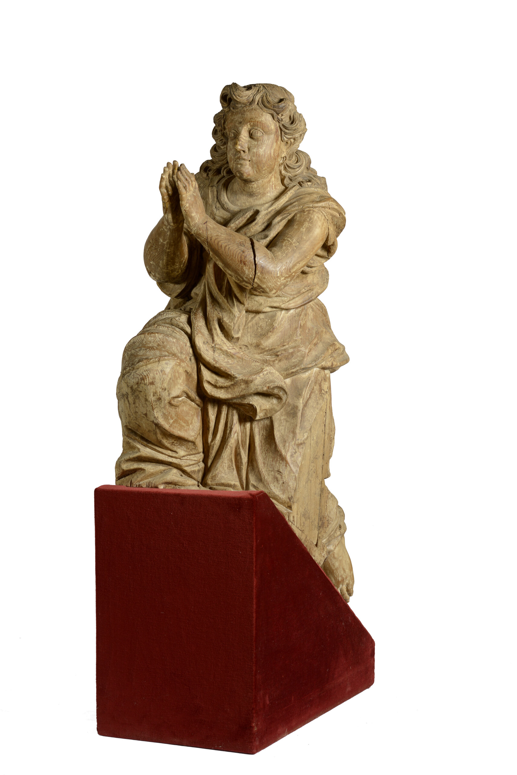 A carved wood praying angel