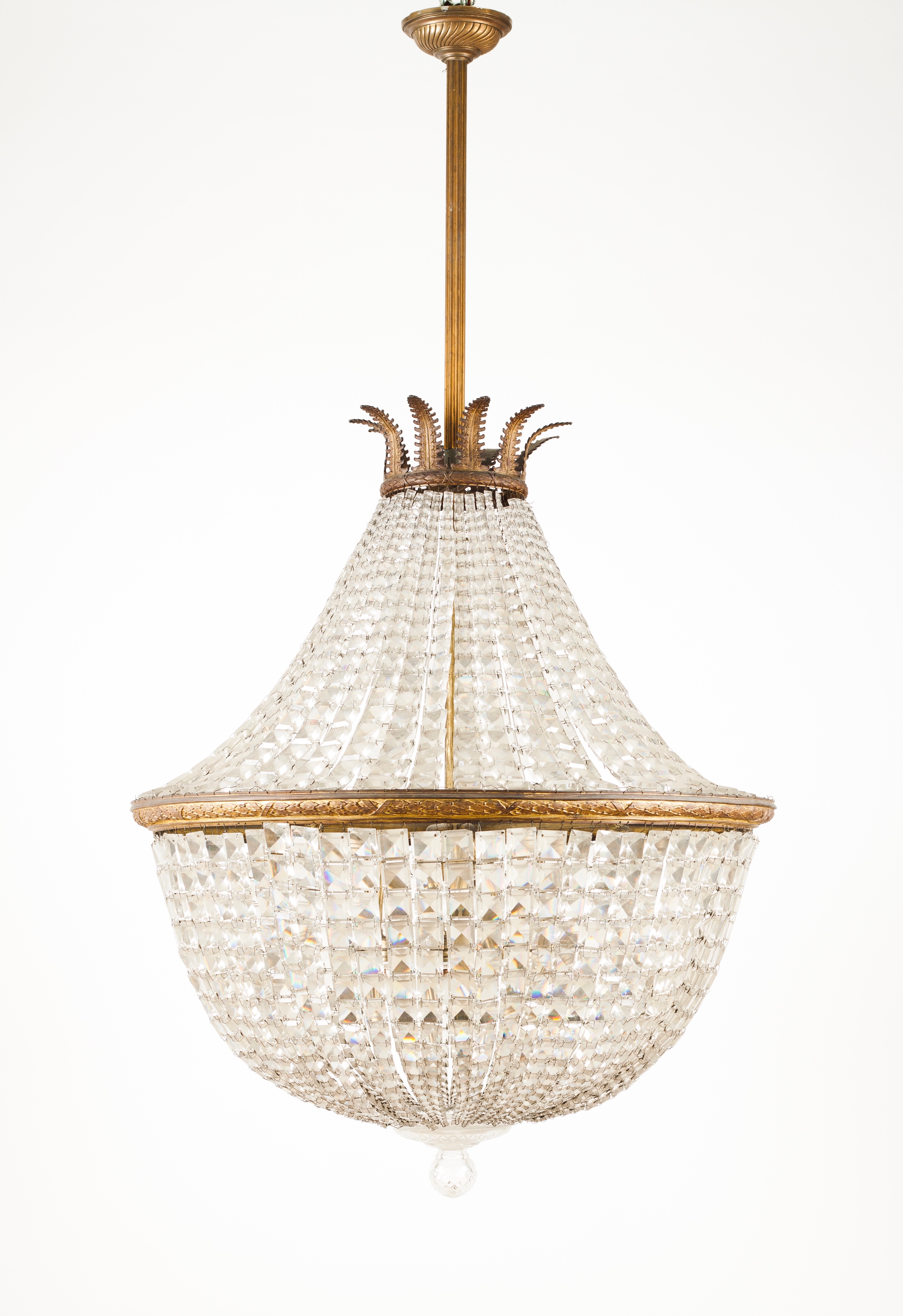 Gilt bronze structure decorated in relief and cut-crystal pendants