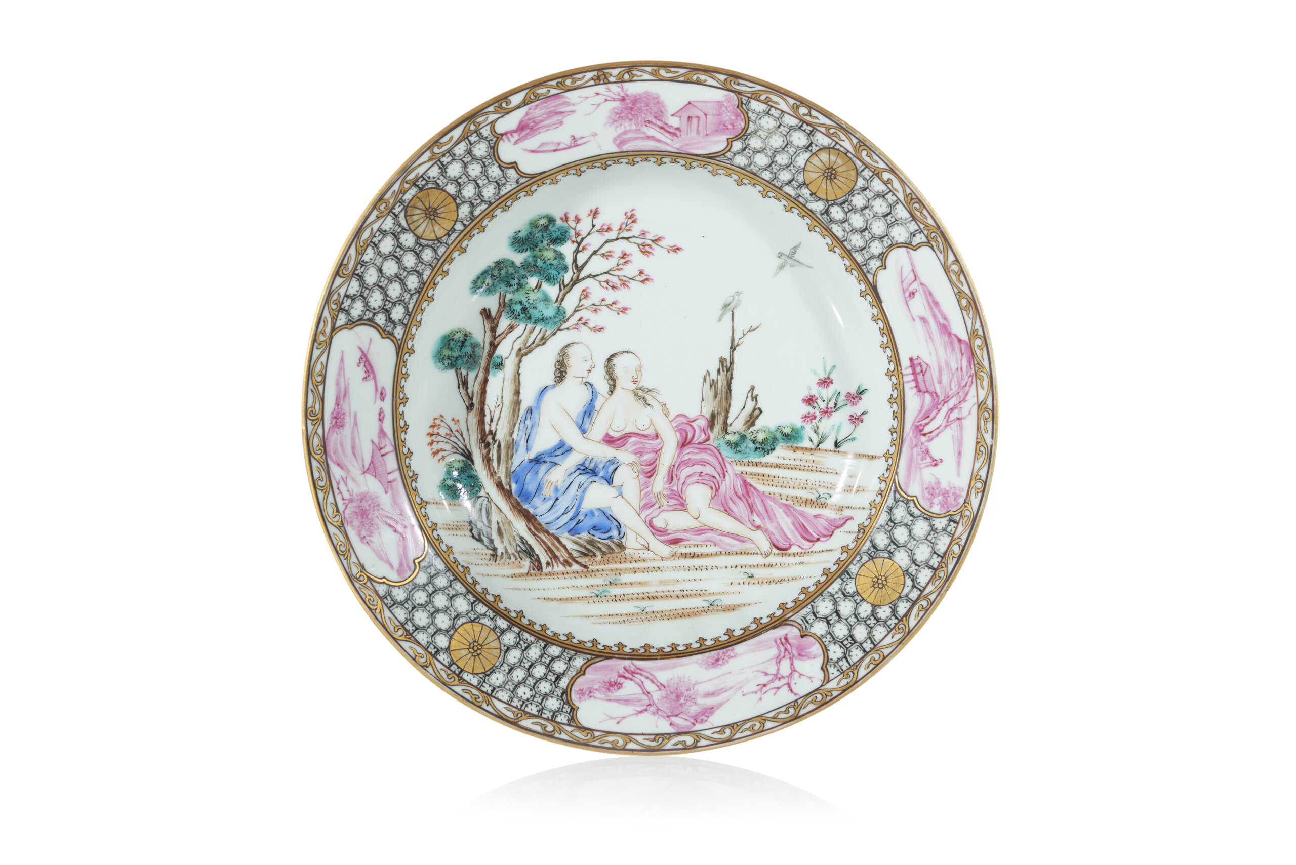 A Chinese export porcelain dish with Acis and Galatea