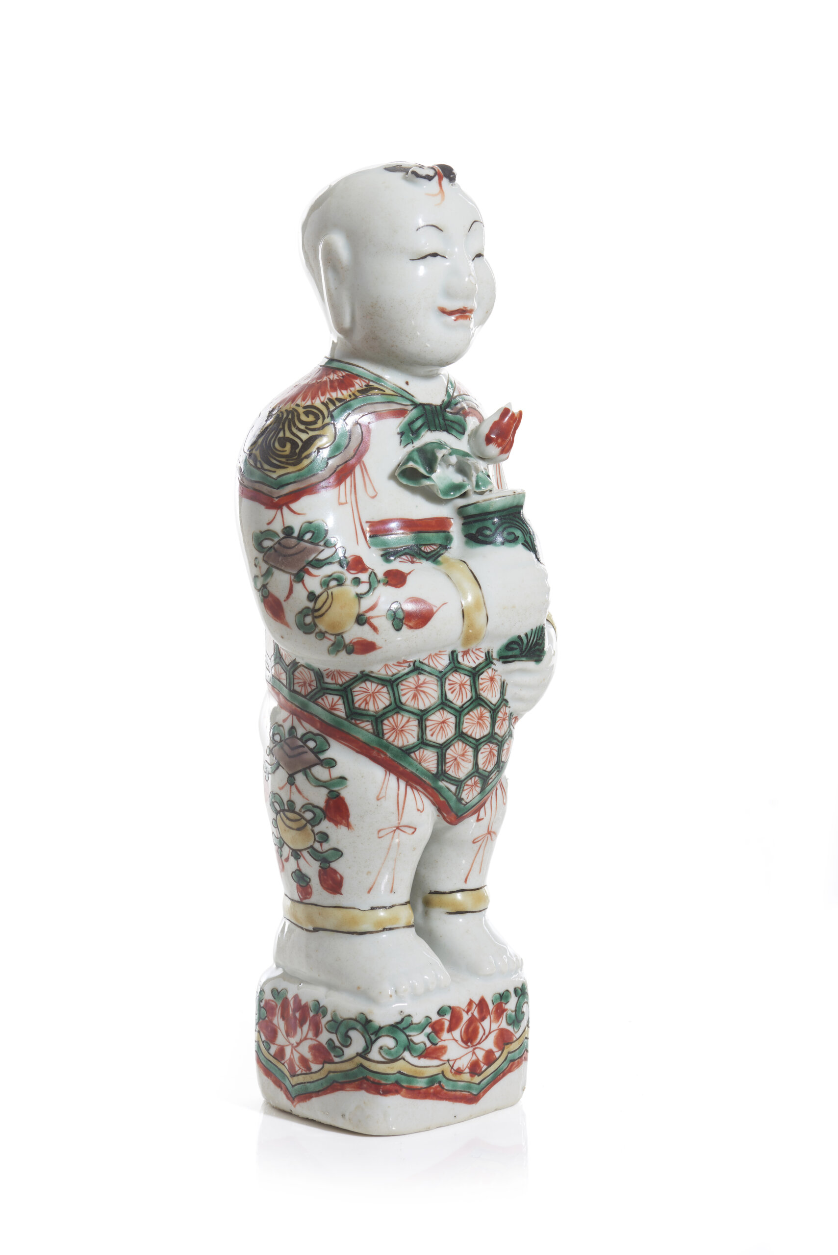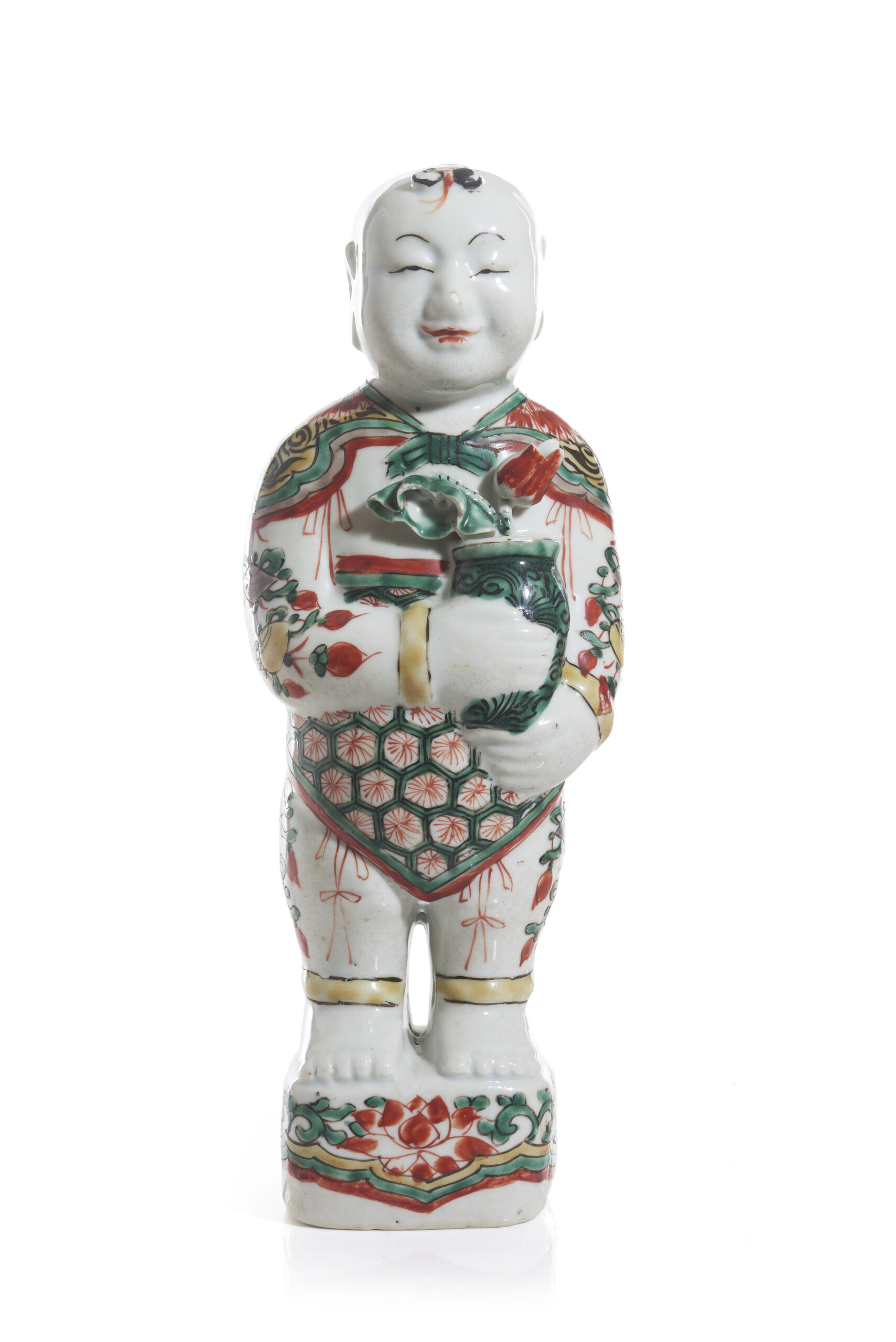 A Chinese export porcelain figure of a laughing boy