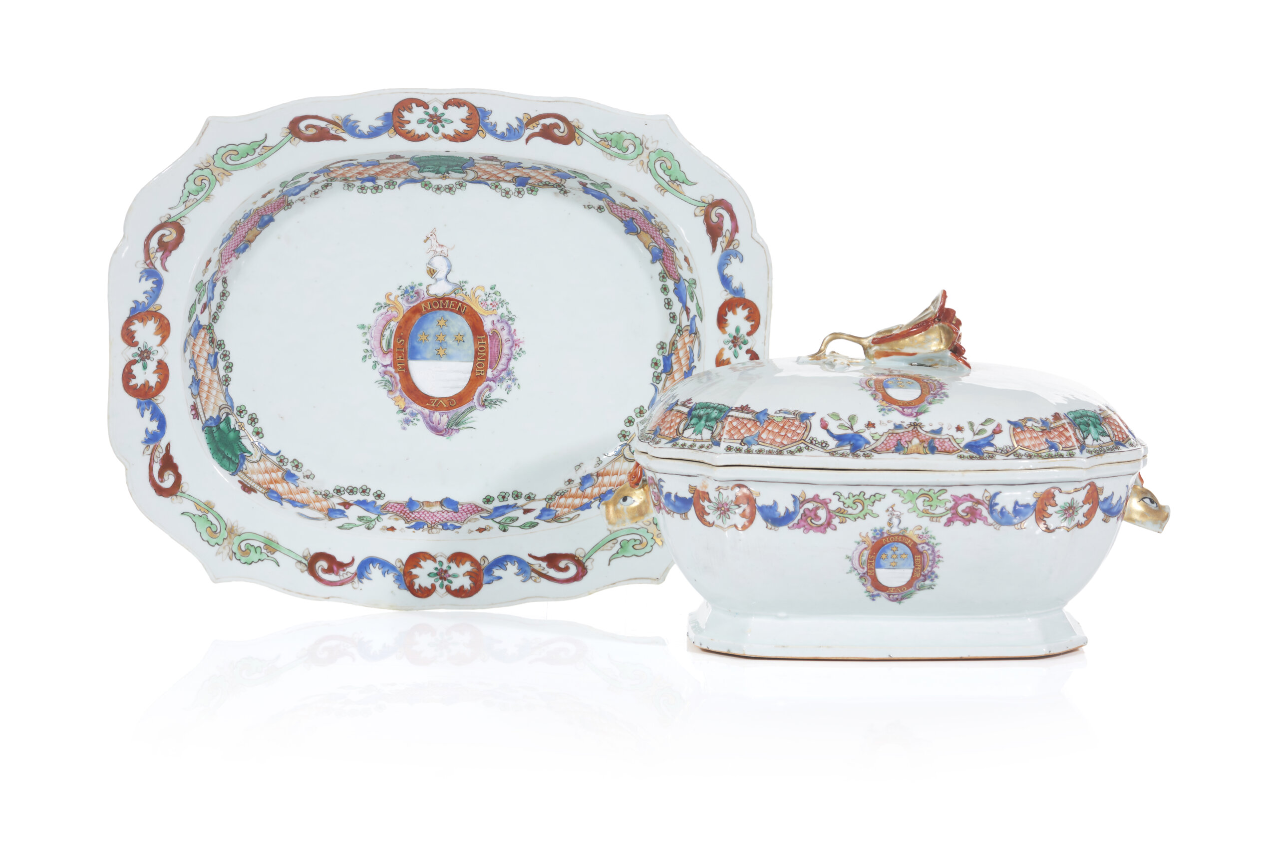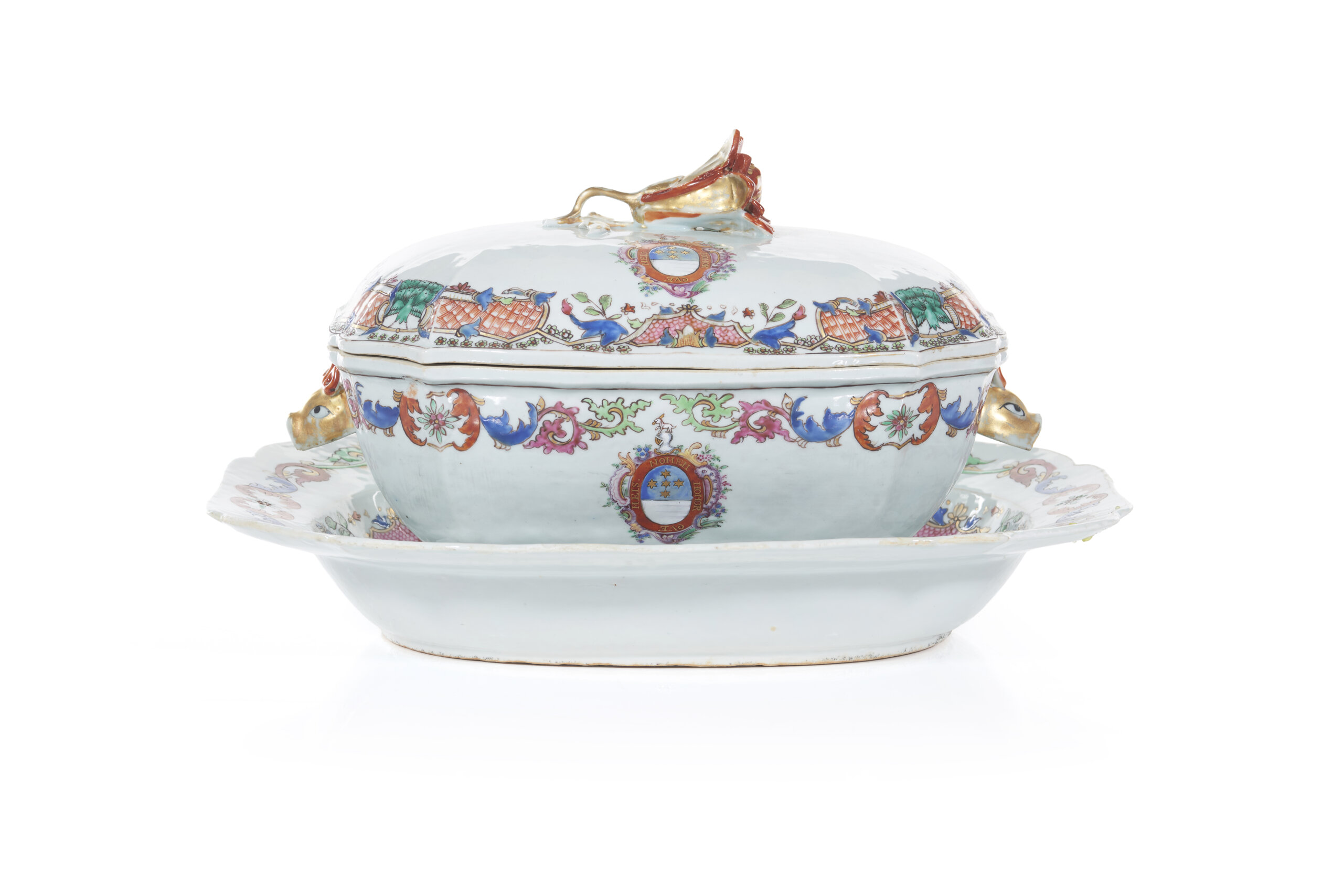 A Chinese export porcelain tureen and stand with the arms of Joaquim Inácio da Cruz Sobral