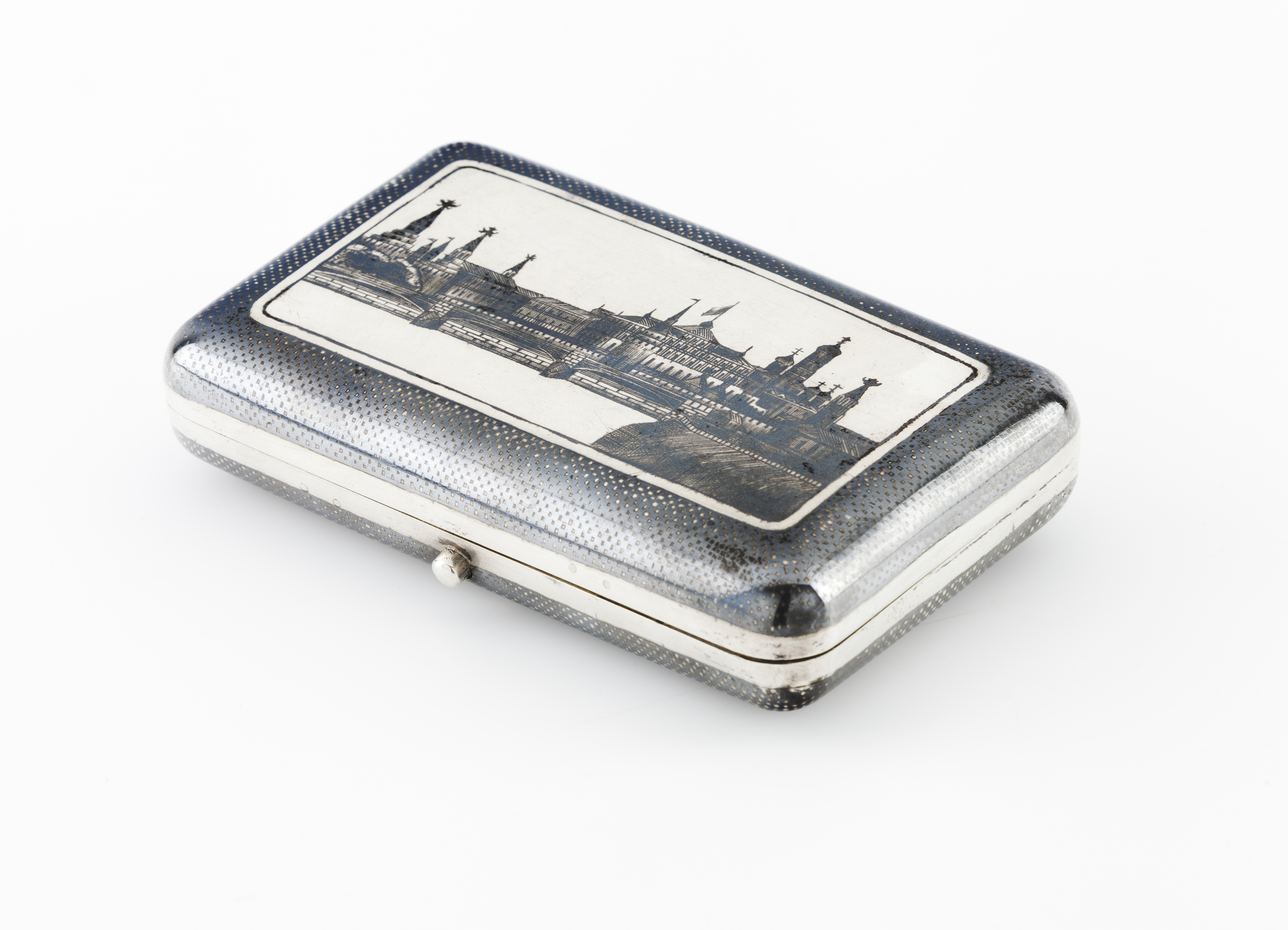 Engraved to cover with a view of Moscow with the Kremlin and church domes