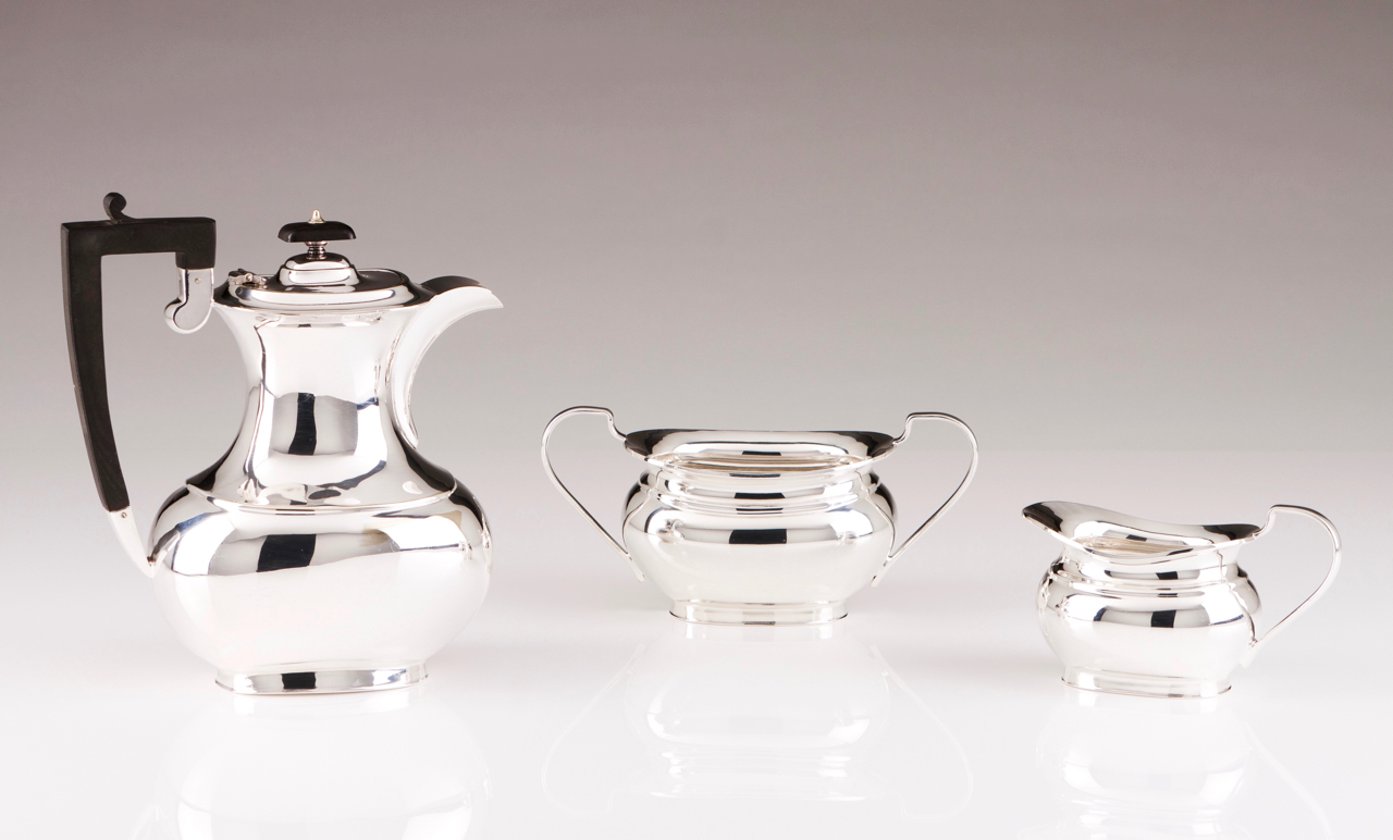 Comprising: a coffee pot, a sugar bowl and milk jug