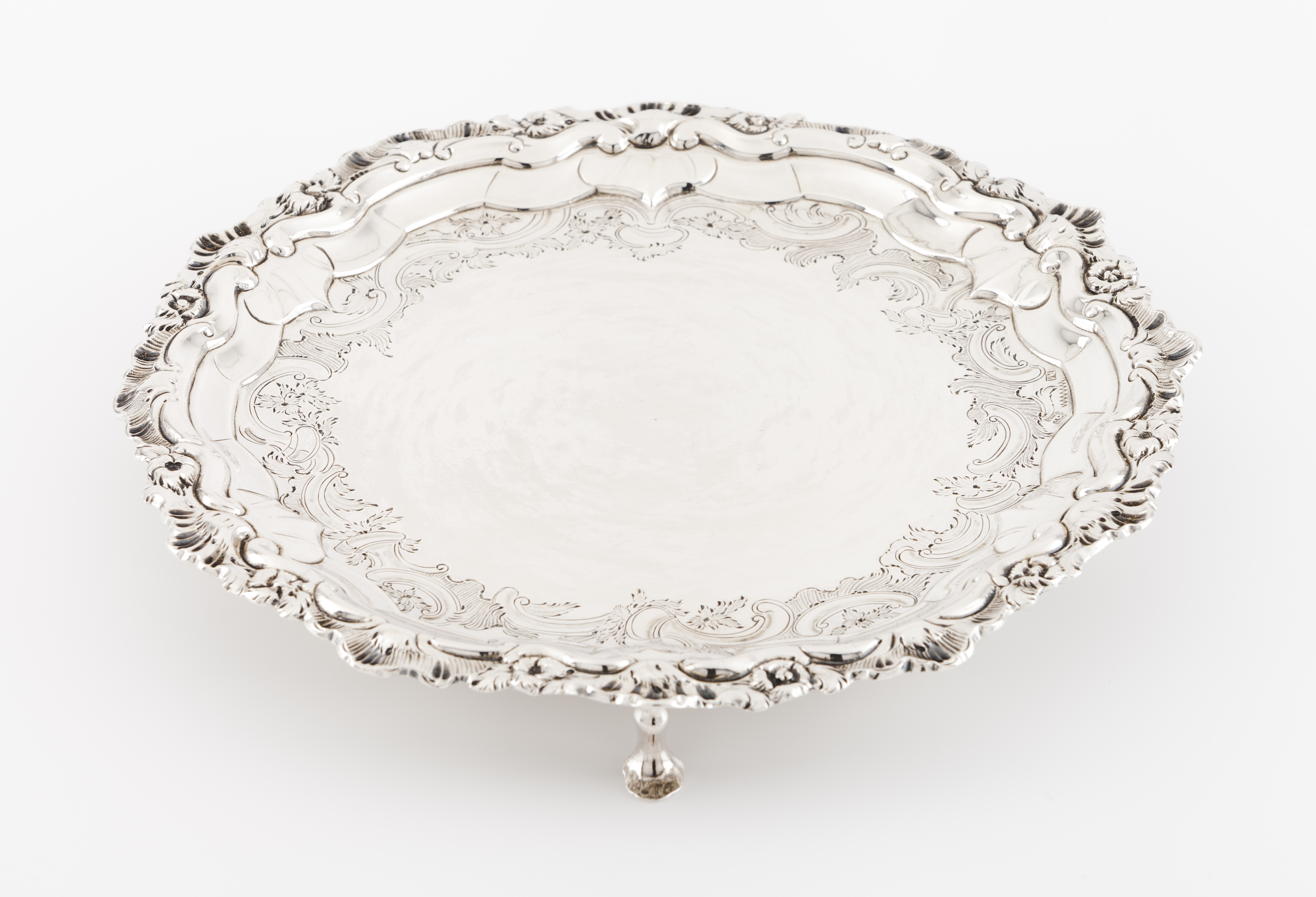 Plain centre of scrolls and foliage engraved decoration