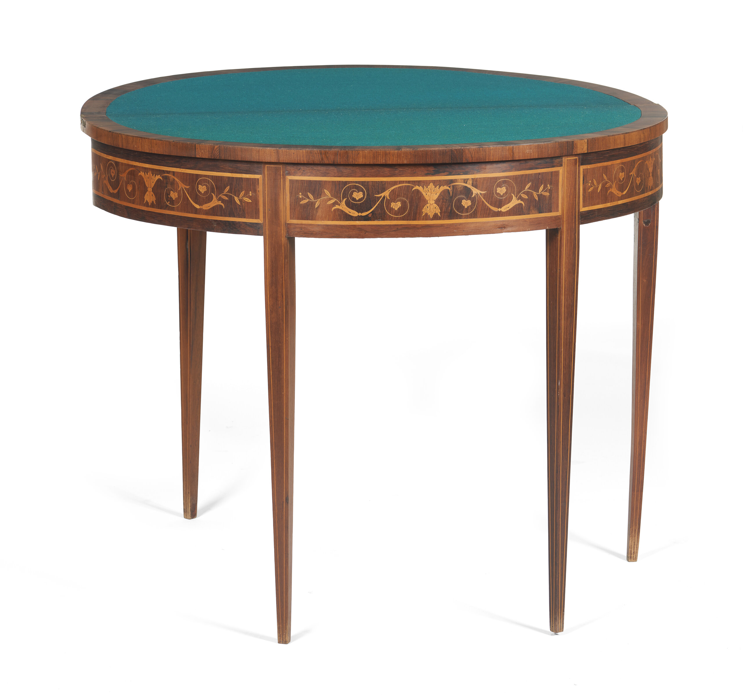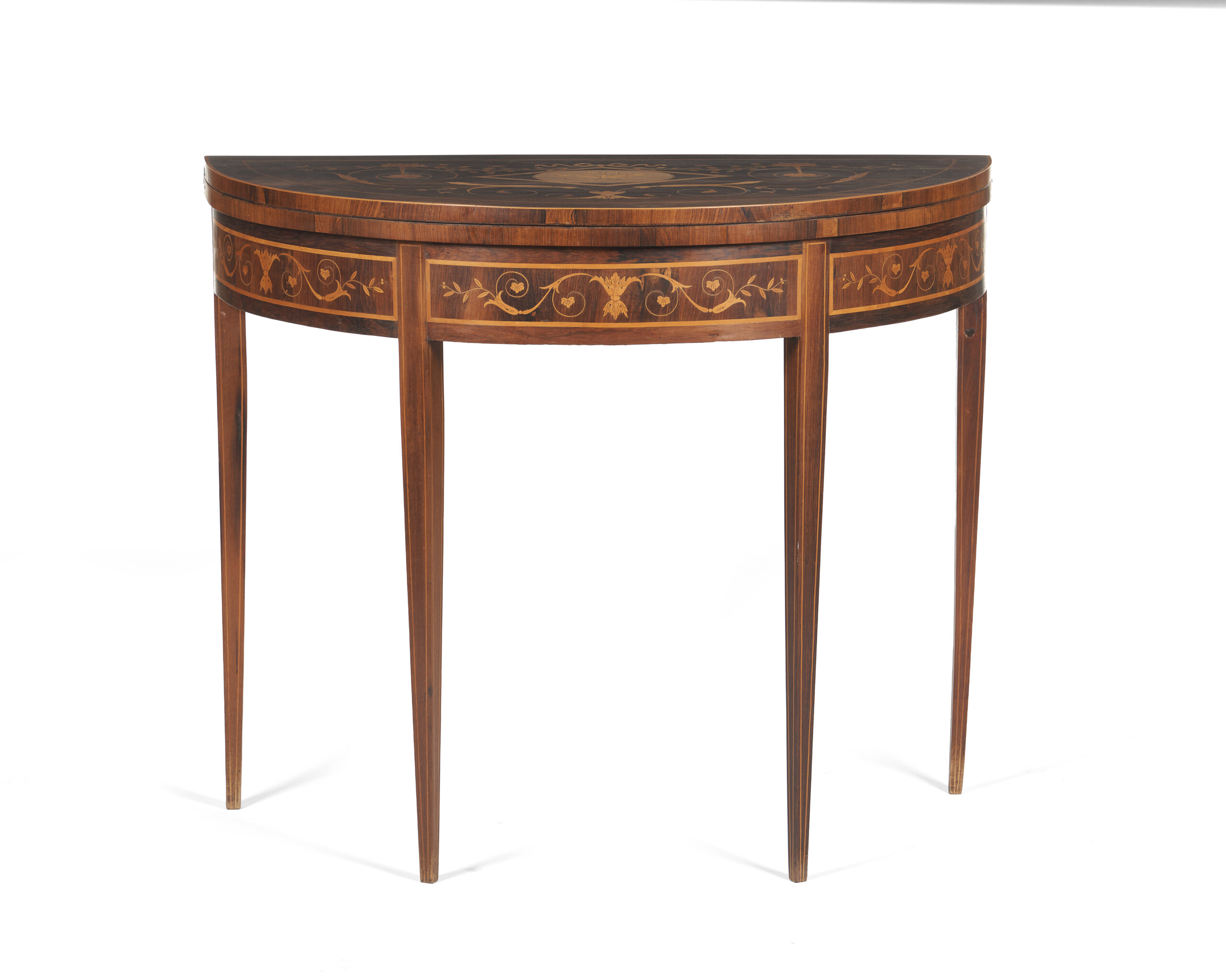Rosewood veneered in rosewood with marquetry work in boxwood and other woods depicting floral motifs