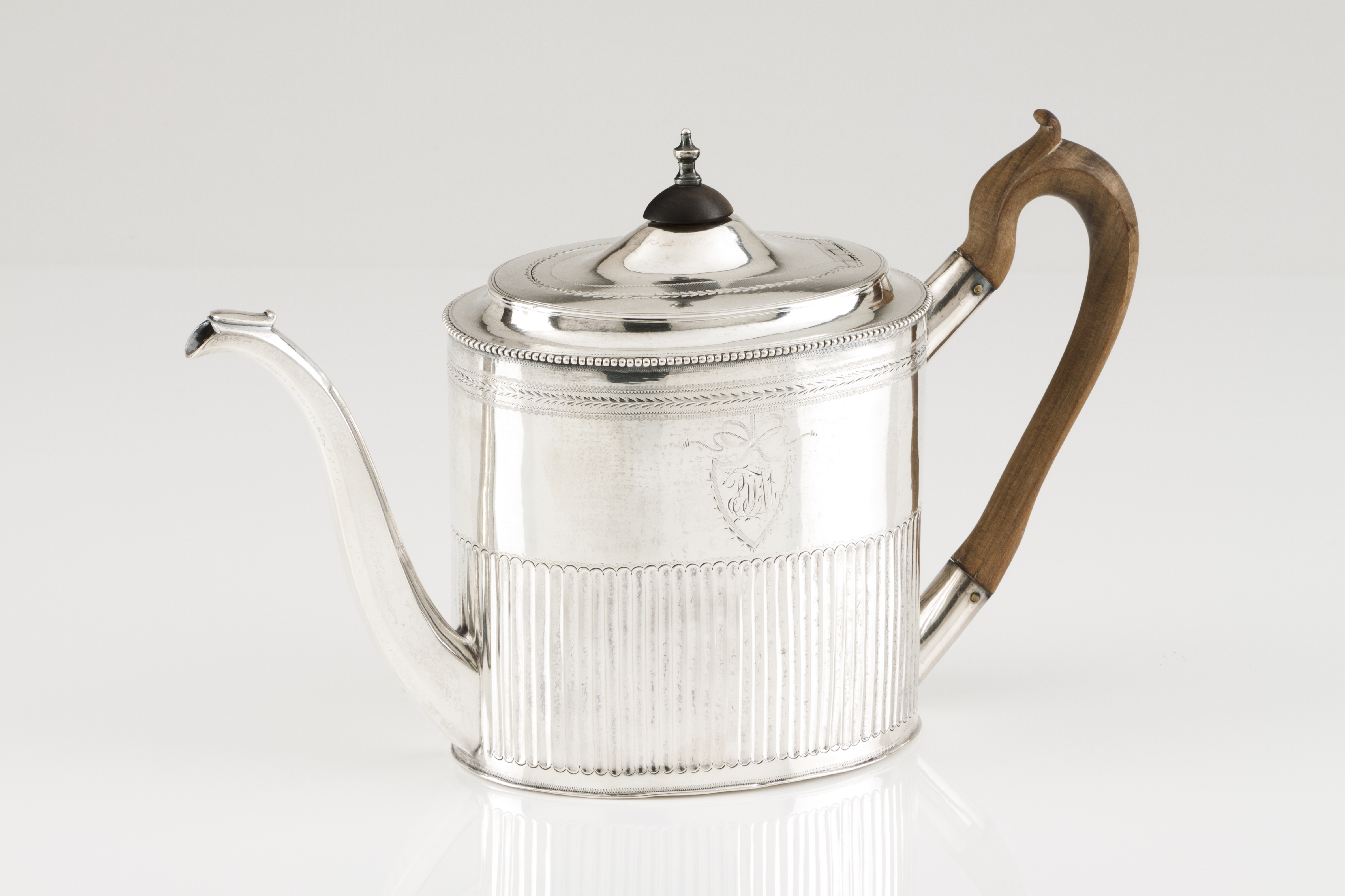 Part fluted body of foliage motifs bands and monogramed shield