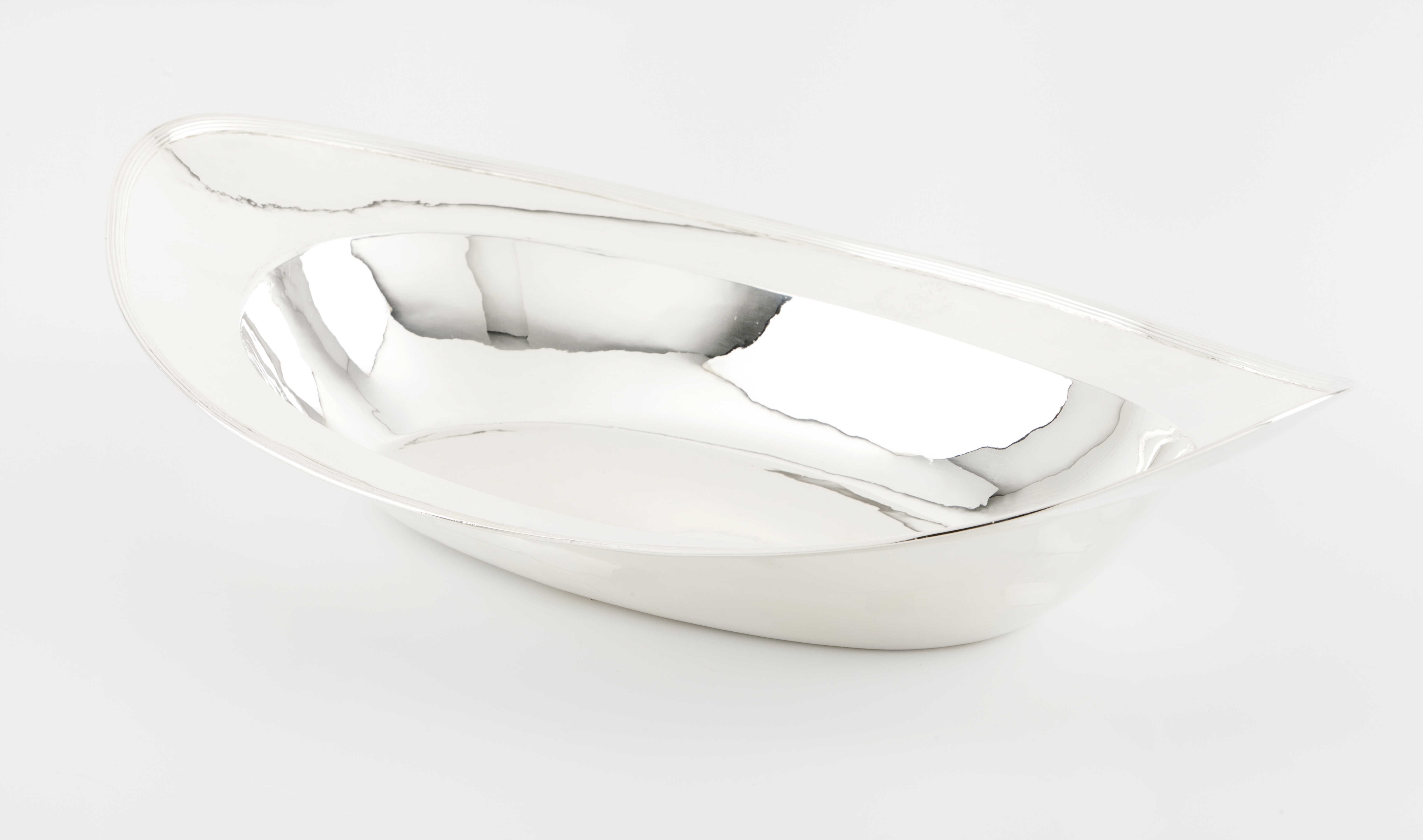 Of boat shape and filleted decoration with engraved monogram shield surmounted by crown of roses framed by intertwined laurel branches