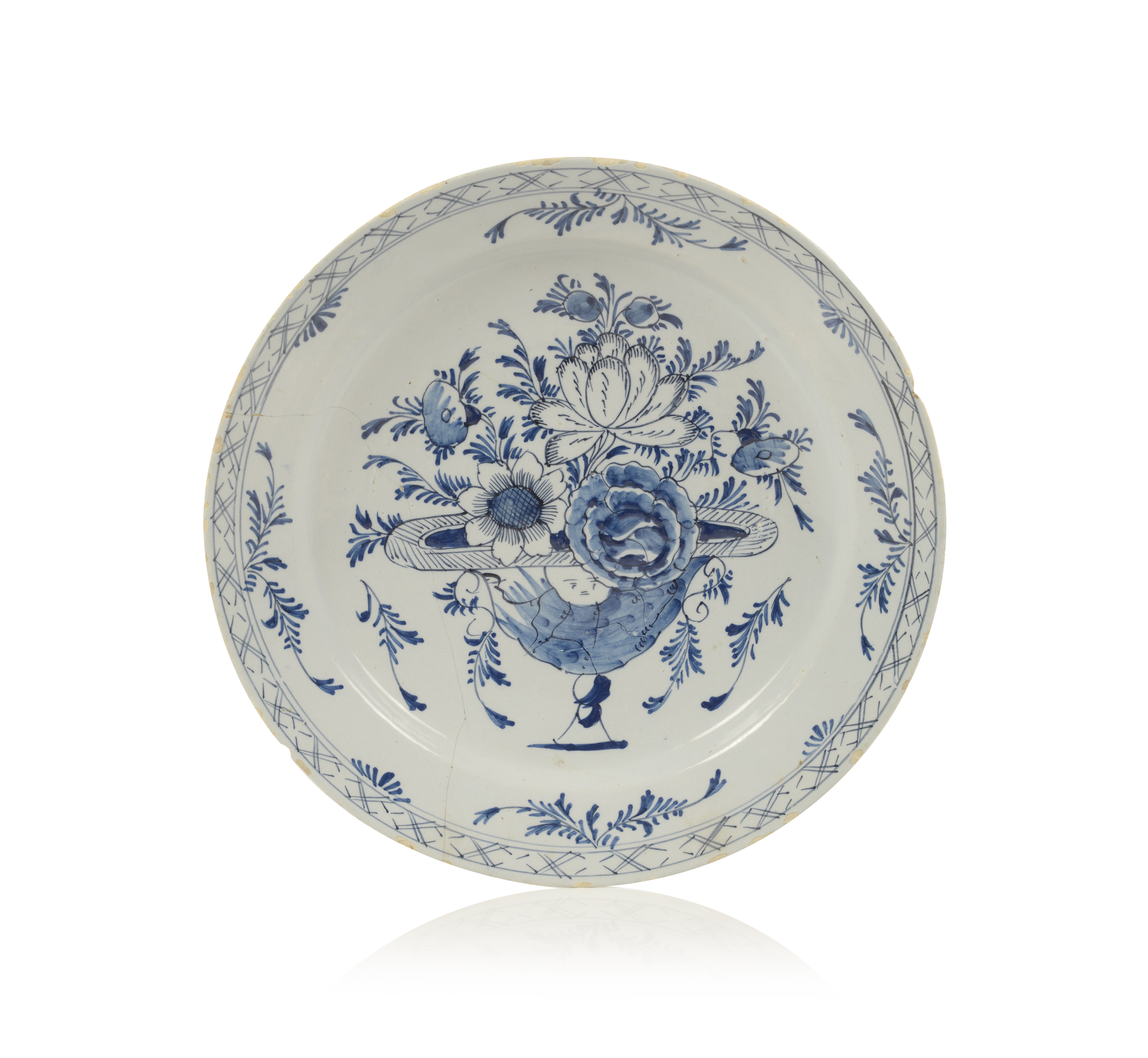 With blue and white decoration depicting a vase with flowers