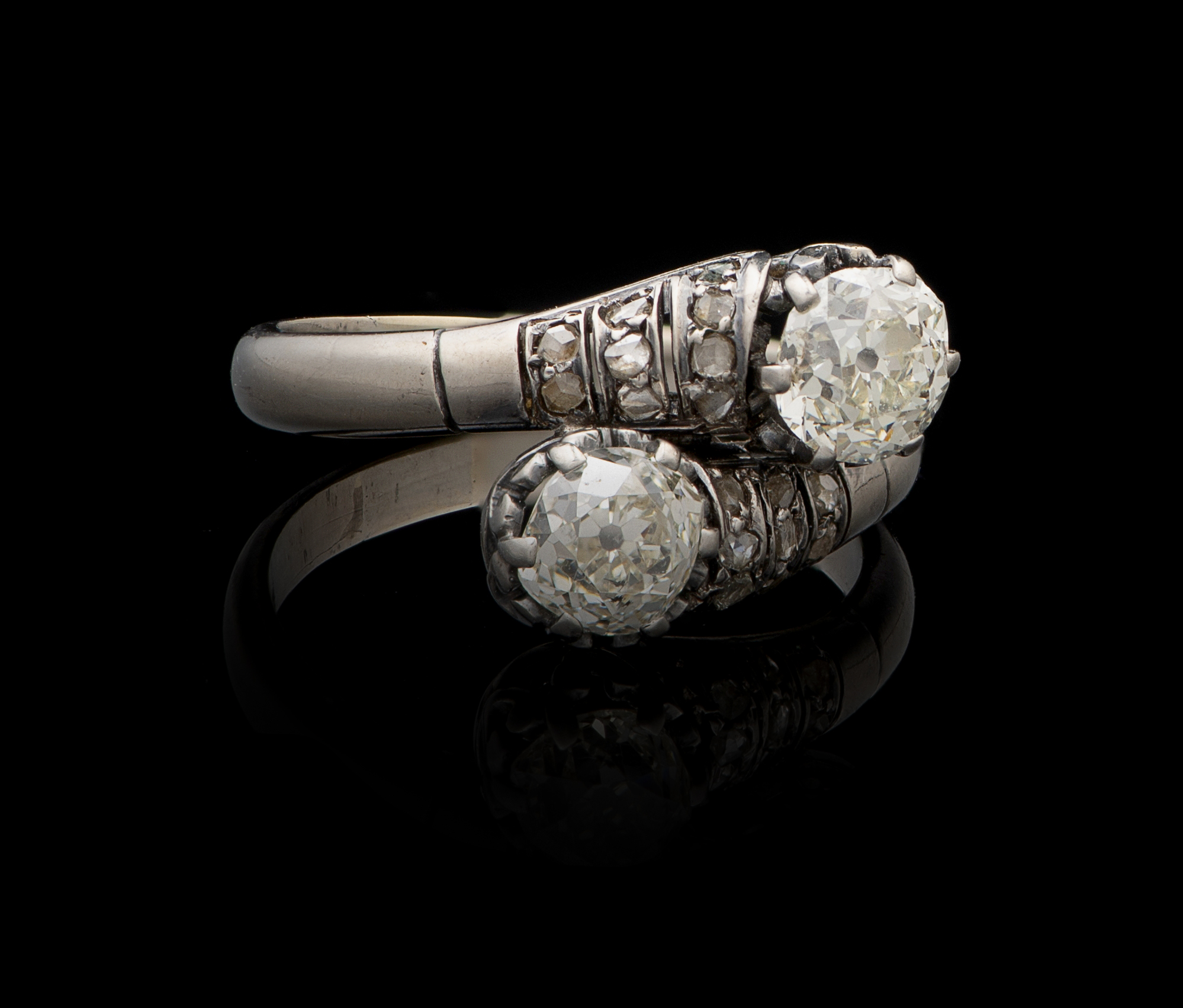 Set with rose-cut diamonds and 2 old-cut brilliant diamonds weighing approximately 1.15 ct.