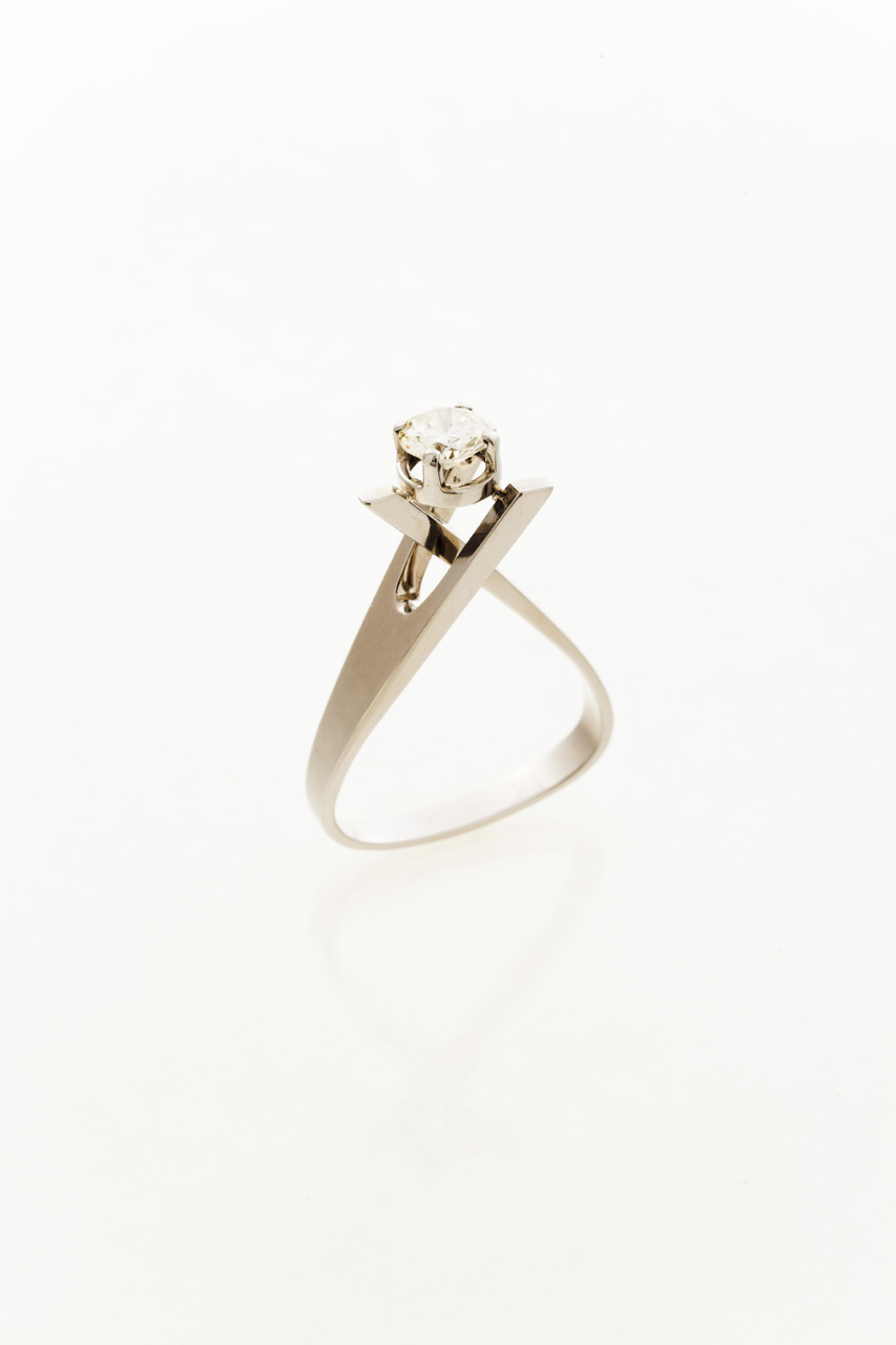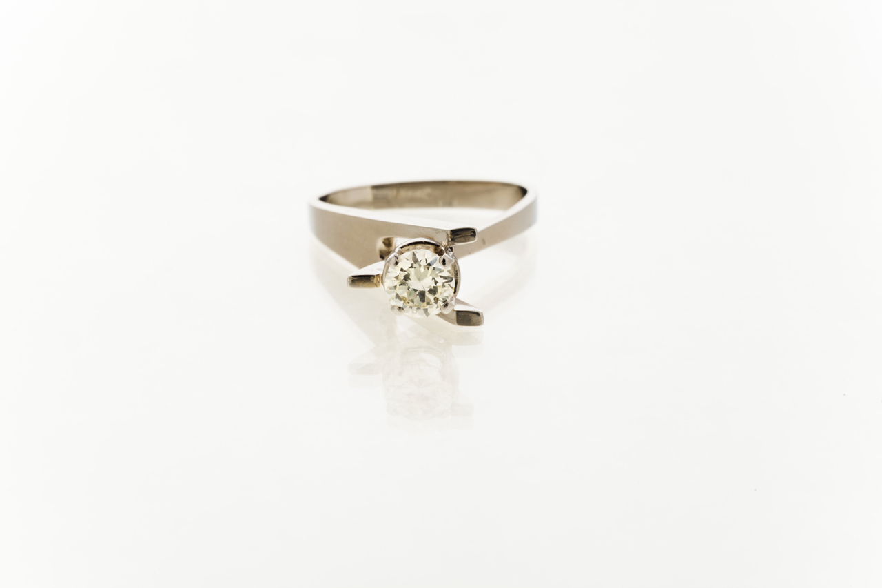 Set in white gold with one brilliant cut diamond of yellow tint weighing approx. 0,75ct