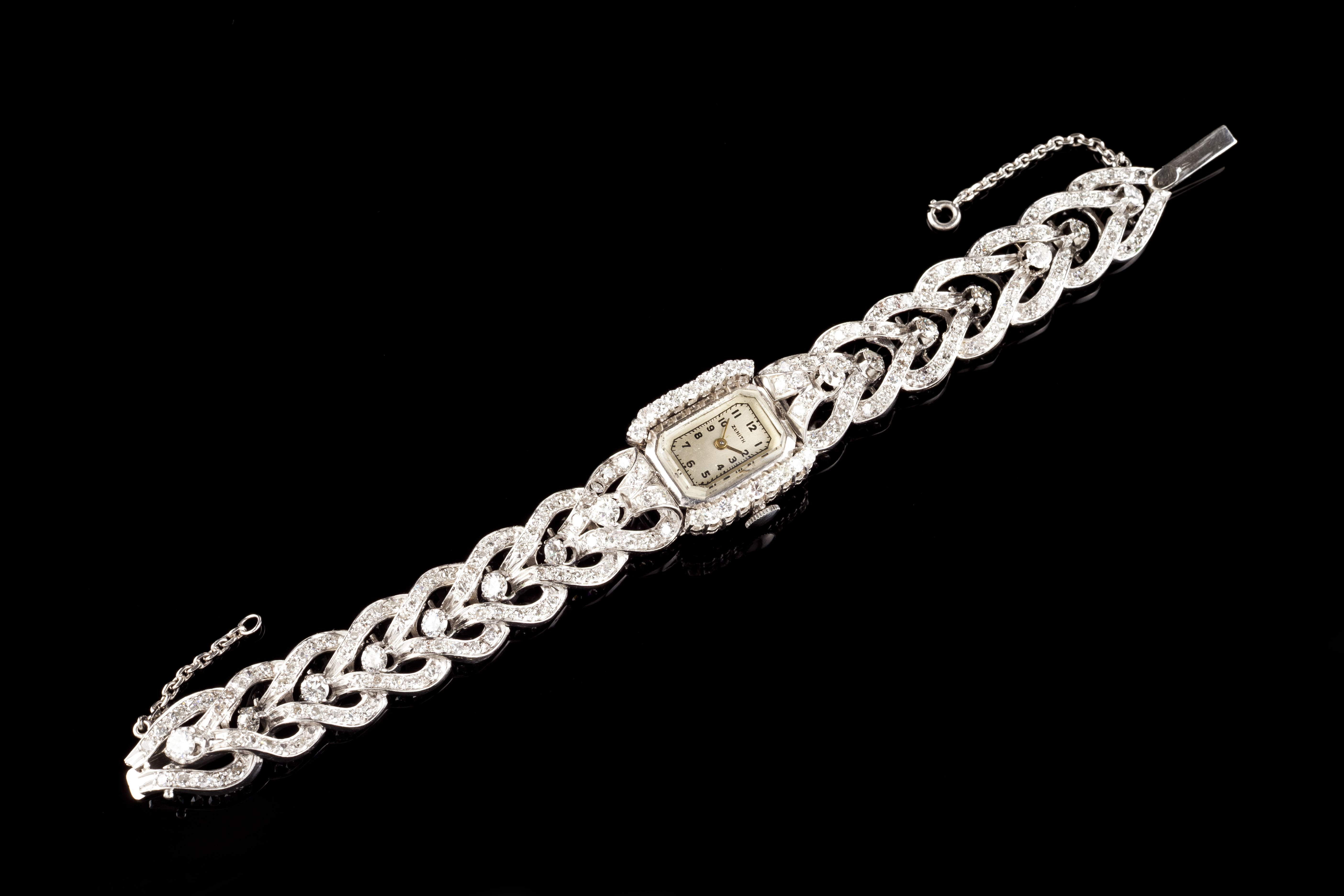 Set in platinum with 156 brilliant and single cut diamonds (ca. 4,95ct)