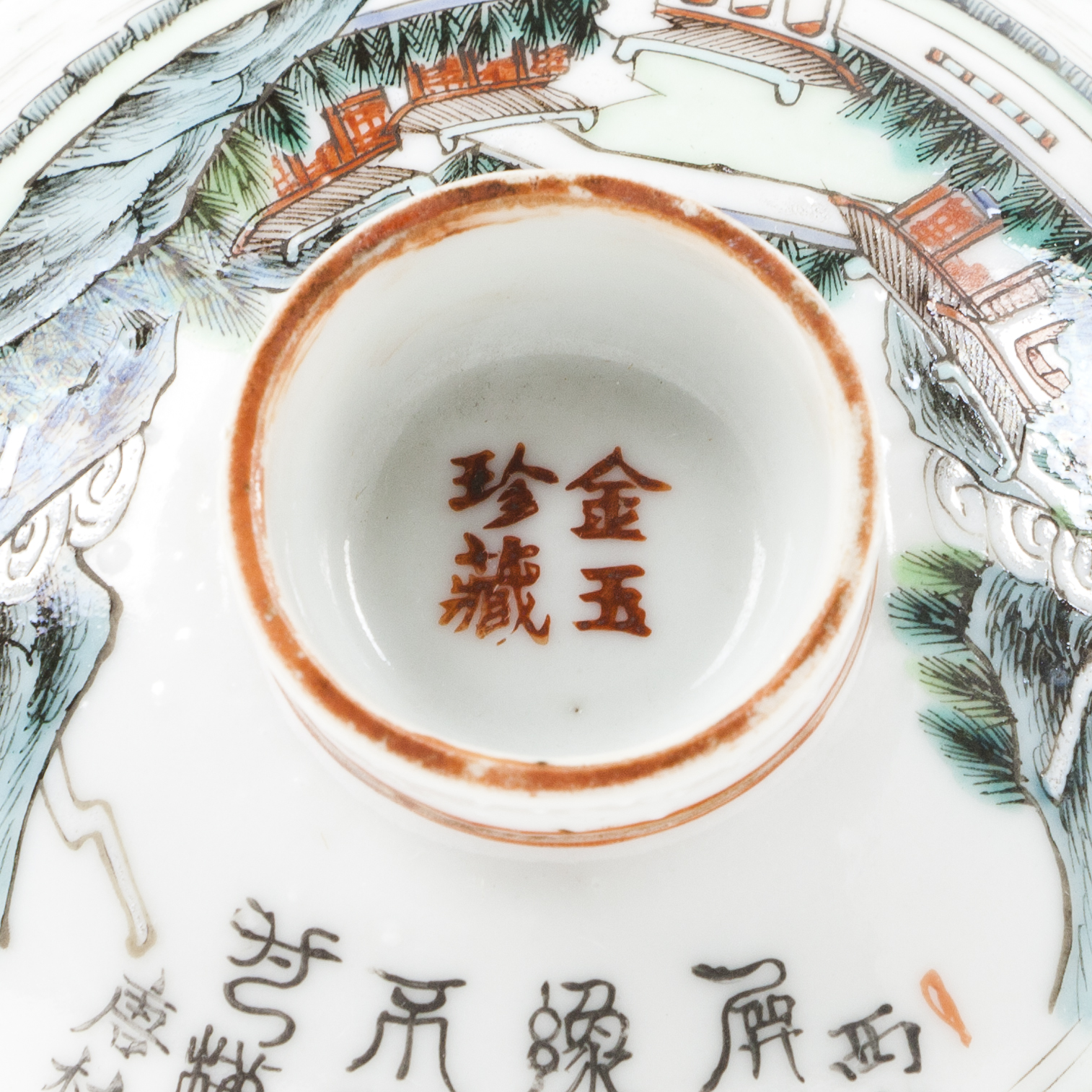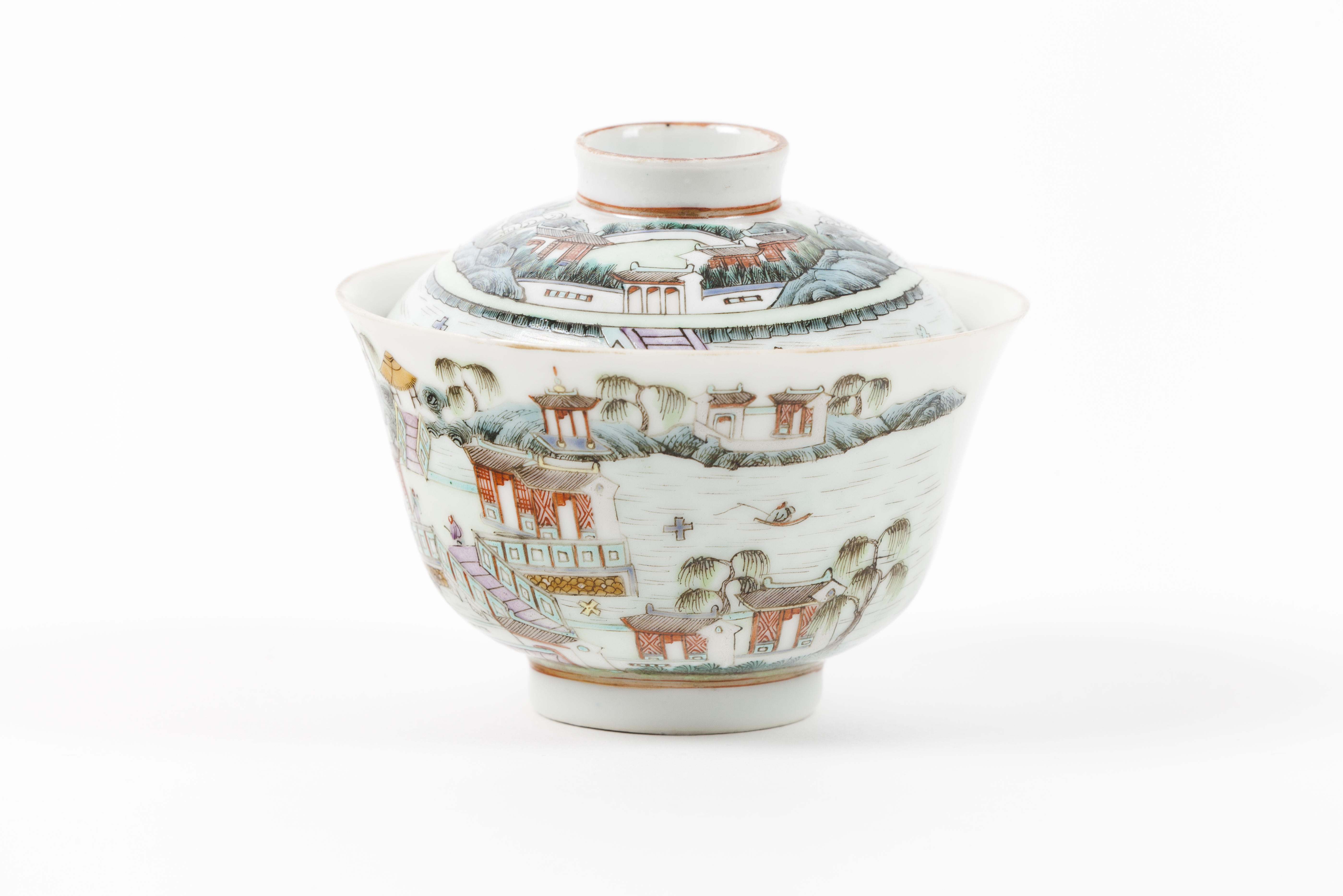 A Famille Rose 'landscape' cup and cover