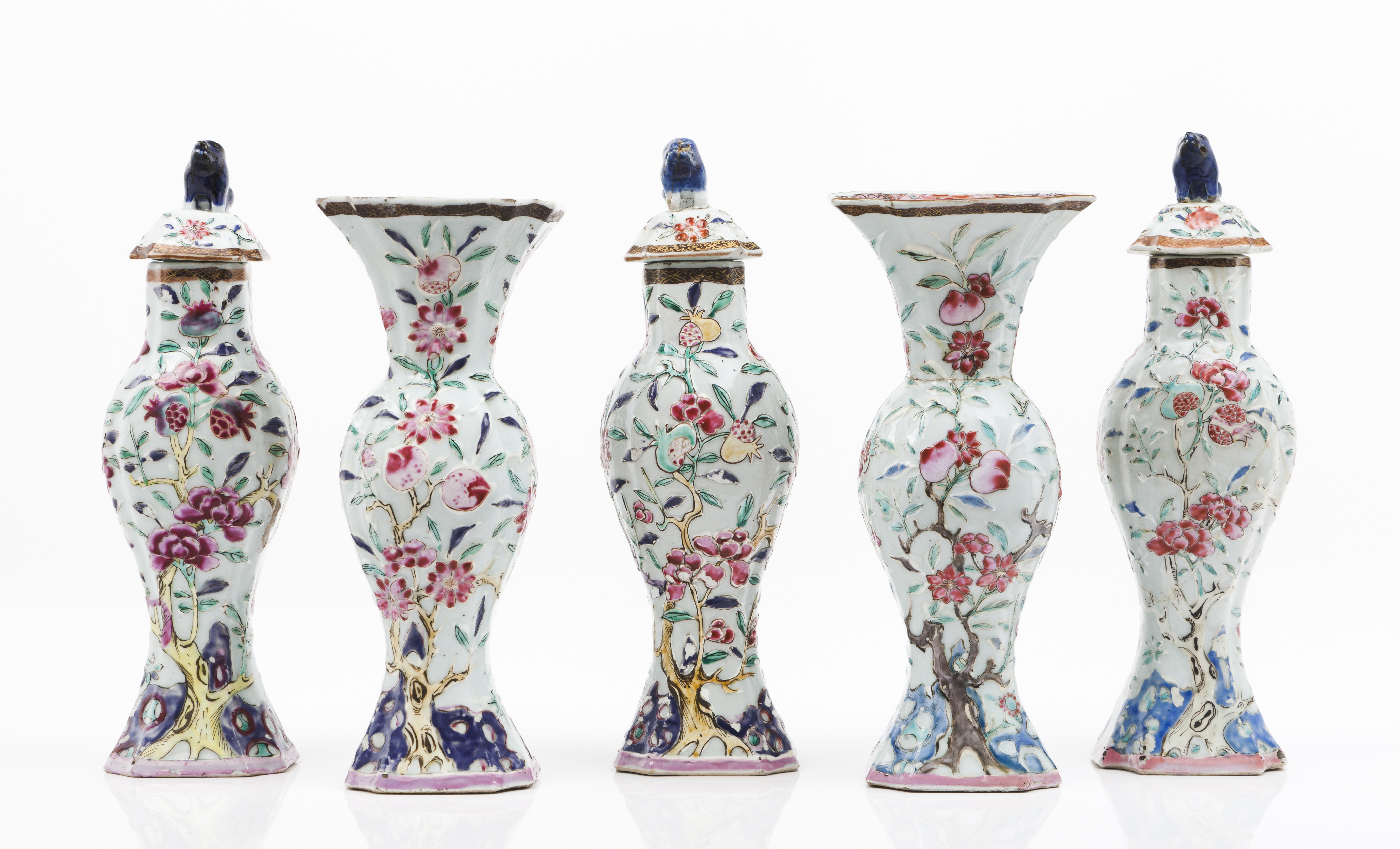 Vases with inner decoration to rim and floral and ruyi motifs border