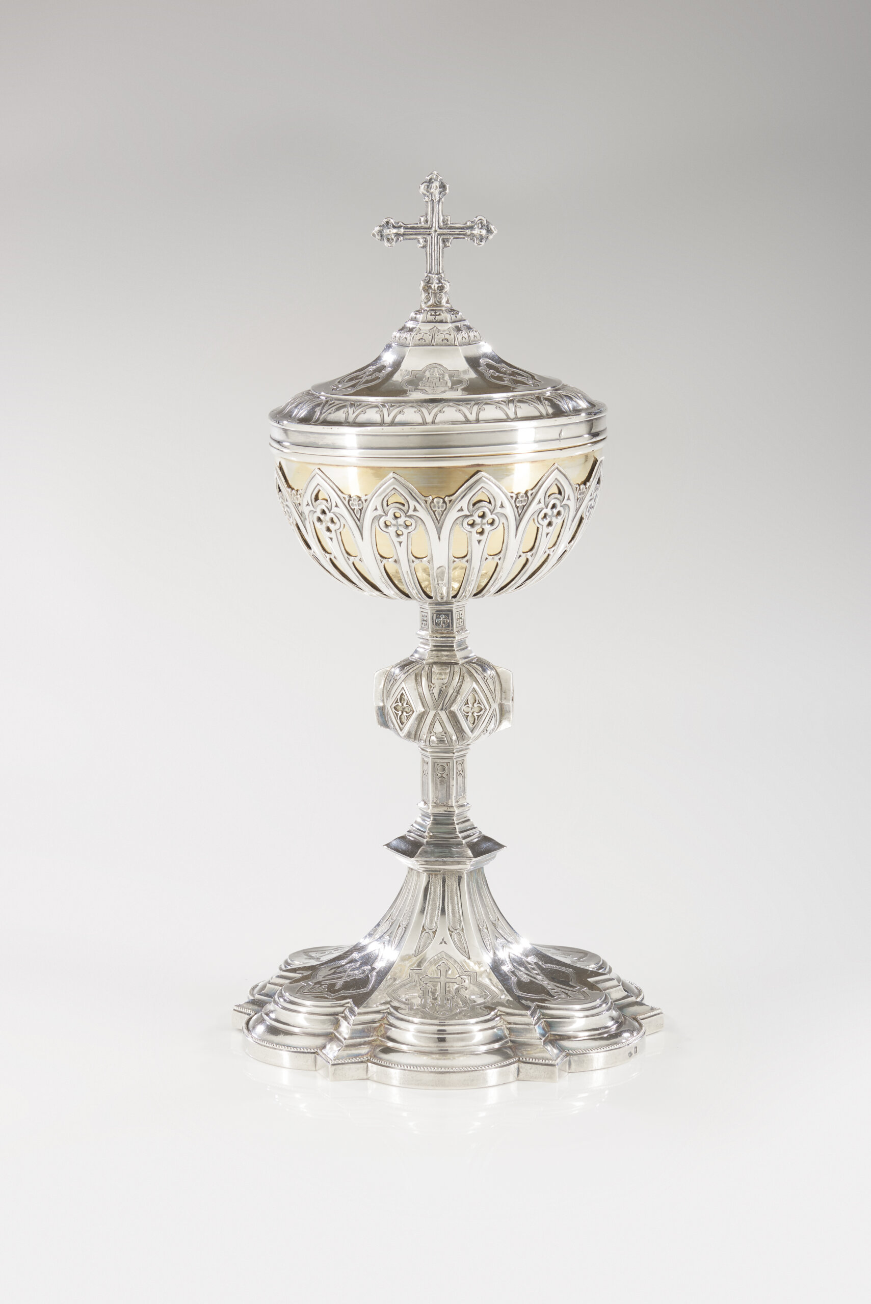 Pierced, relief, and engraved Neo-Gothic motif decoration