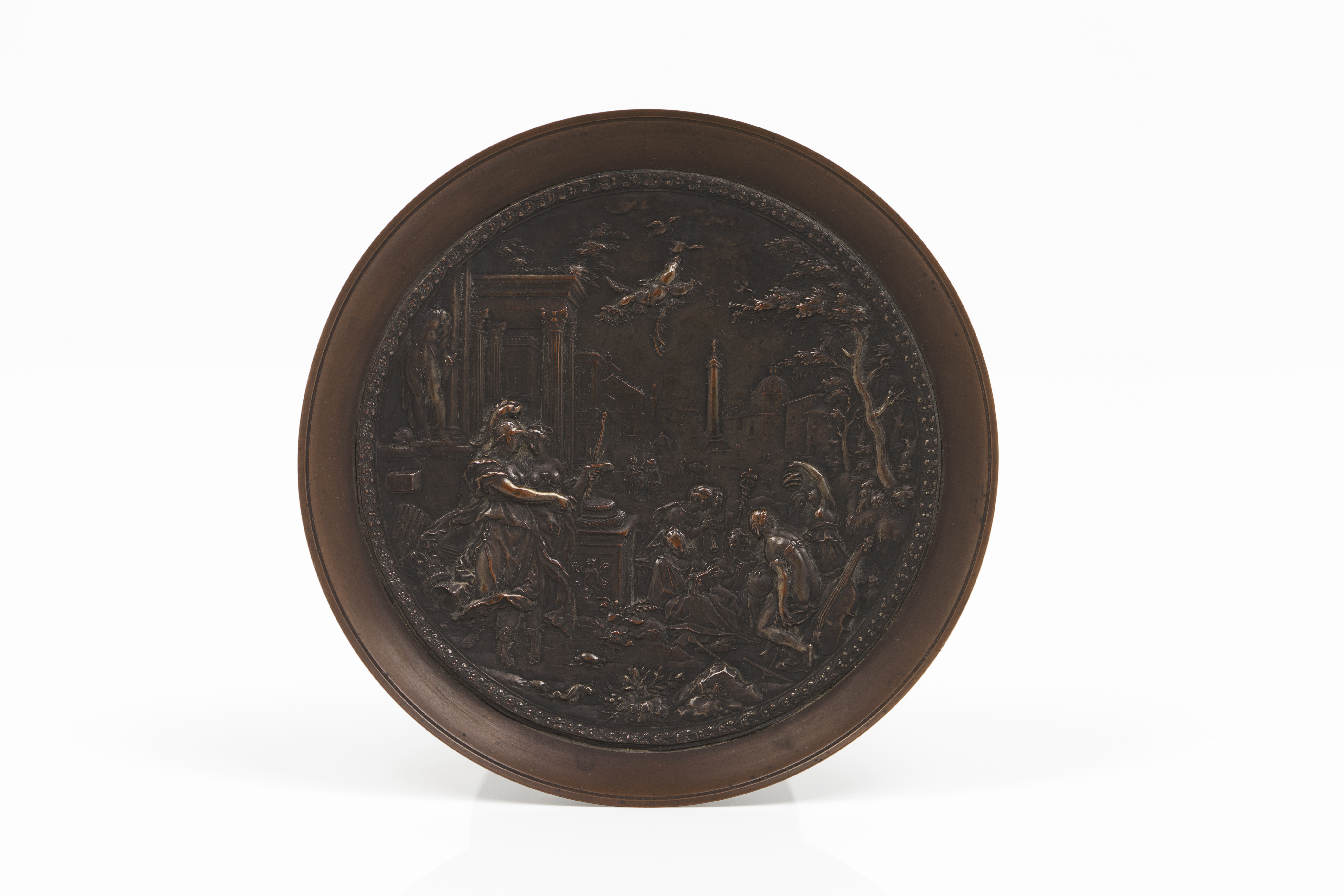 On the top "The goddess Athena introducing the Personification of Painting to the Liberal Arts Circle", after engraving by Aegidius Sadeler (ca.1600) from a Hans von Aachen painting