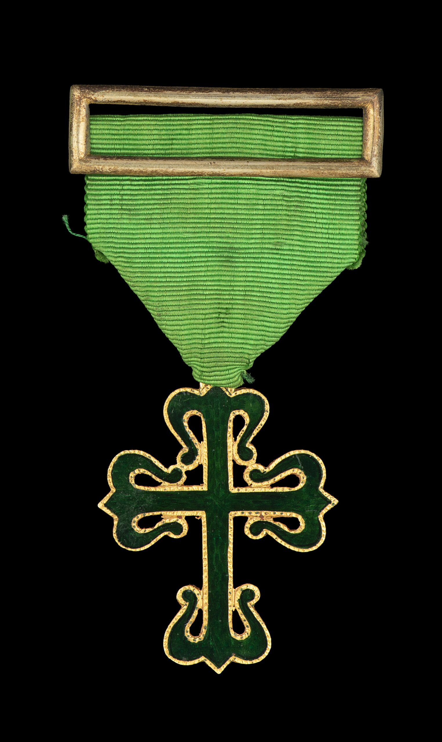 A green enamelled gold pendant of the Military Order of São Bento de Avis