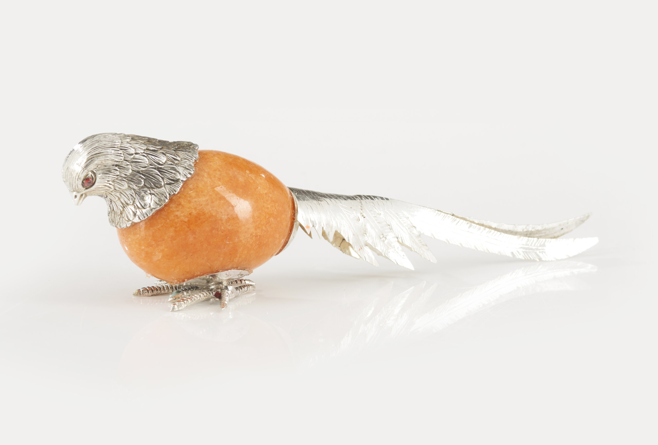A hardstone and silver bird