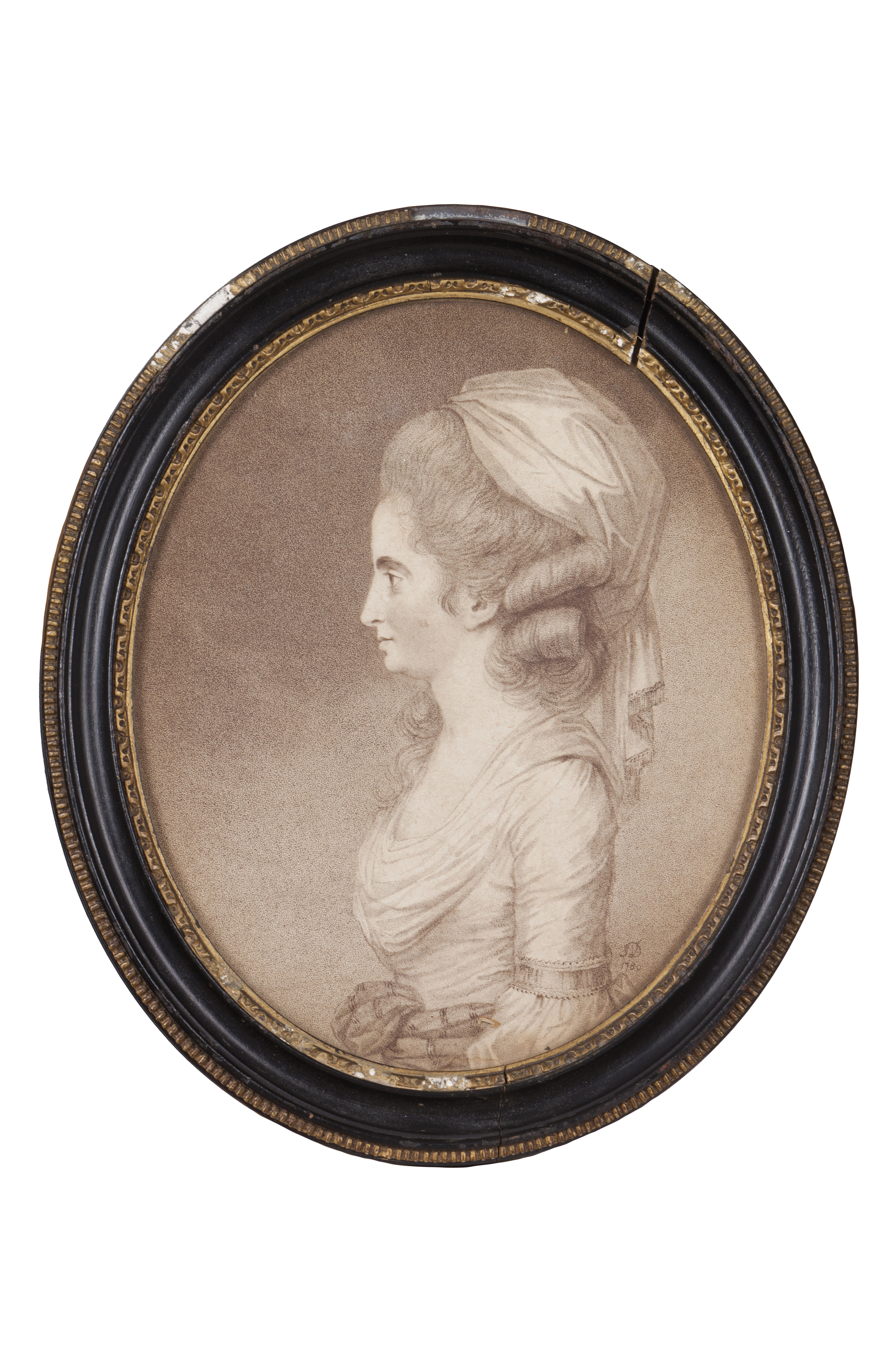 An oval black etching