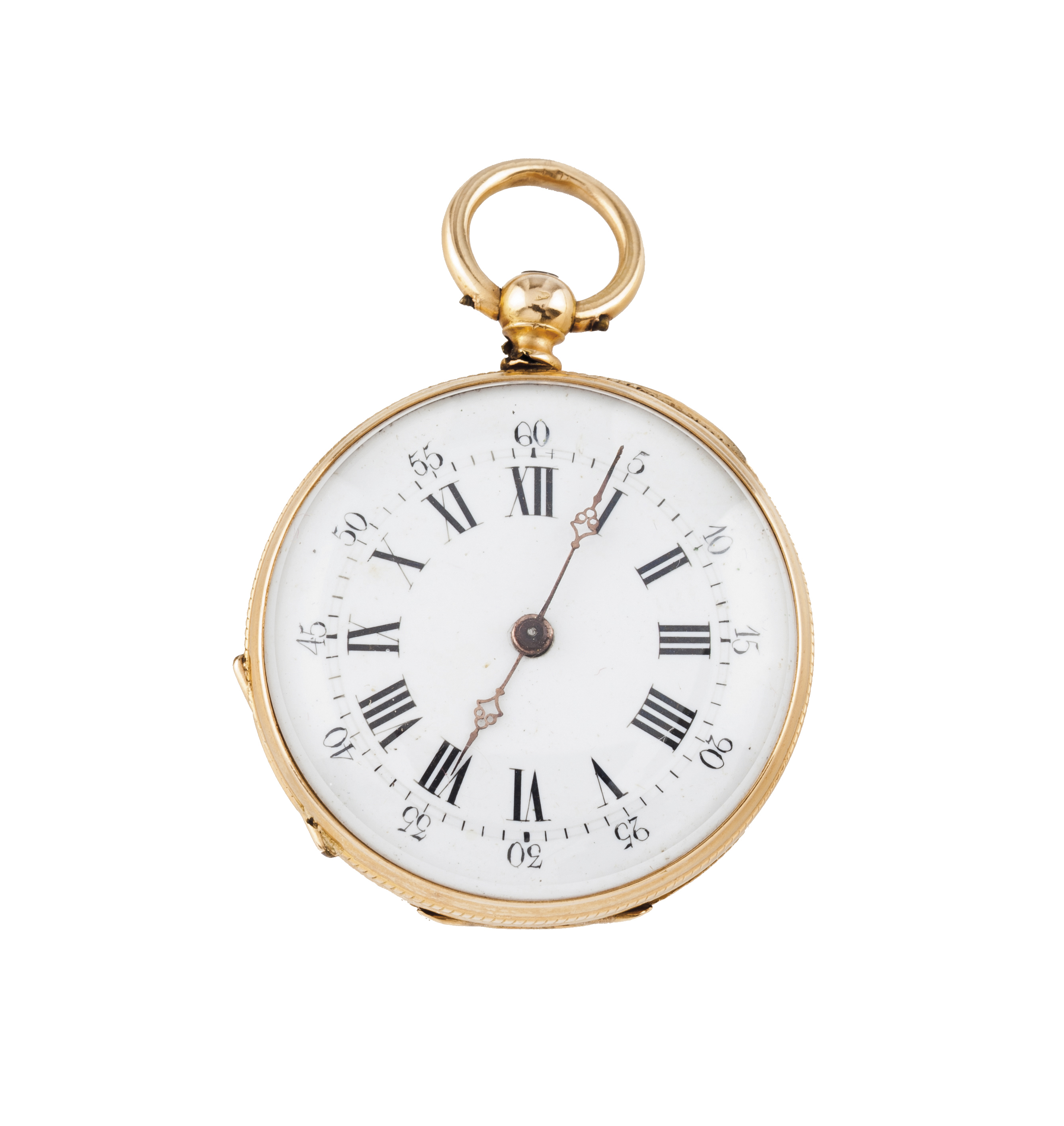 White enamelled dial of Roman numbering with minutes markers