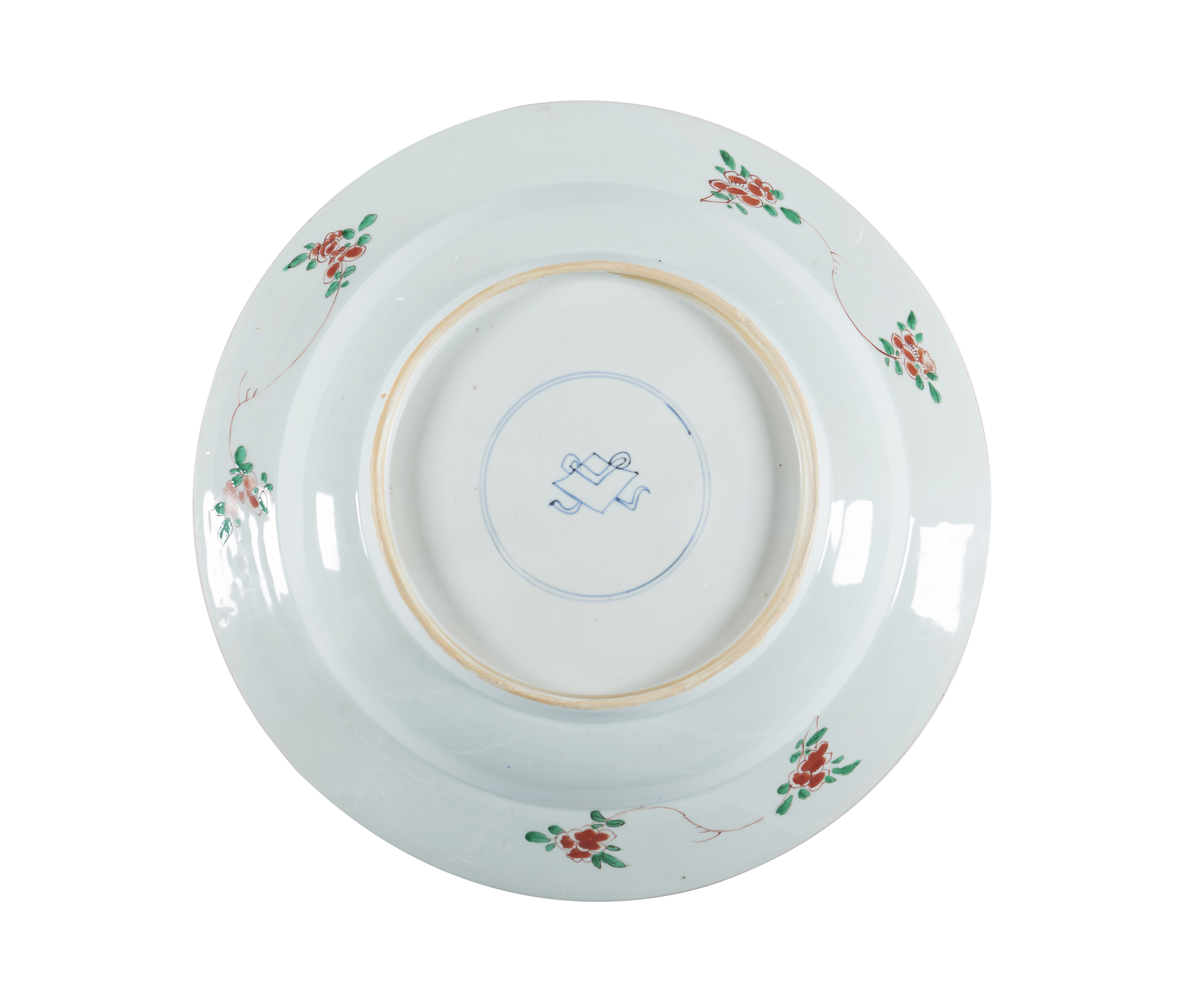 A large Famille Verte on powder-blue-ground dish