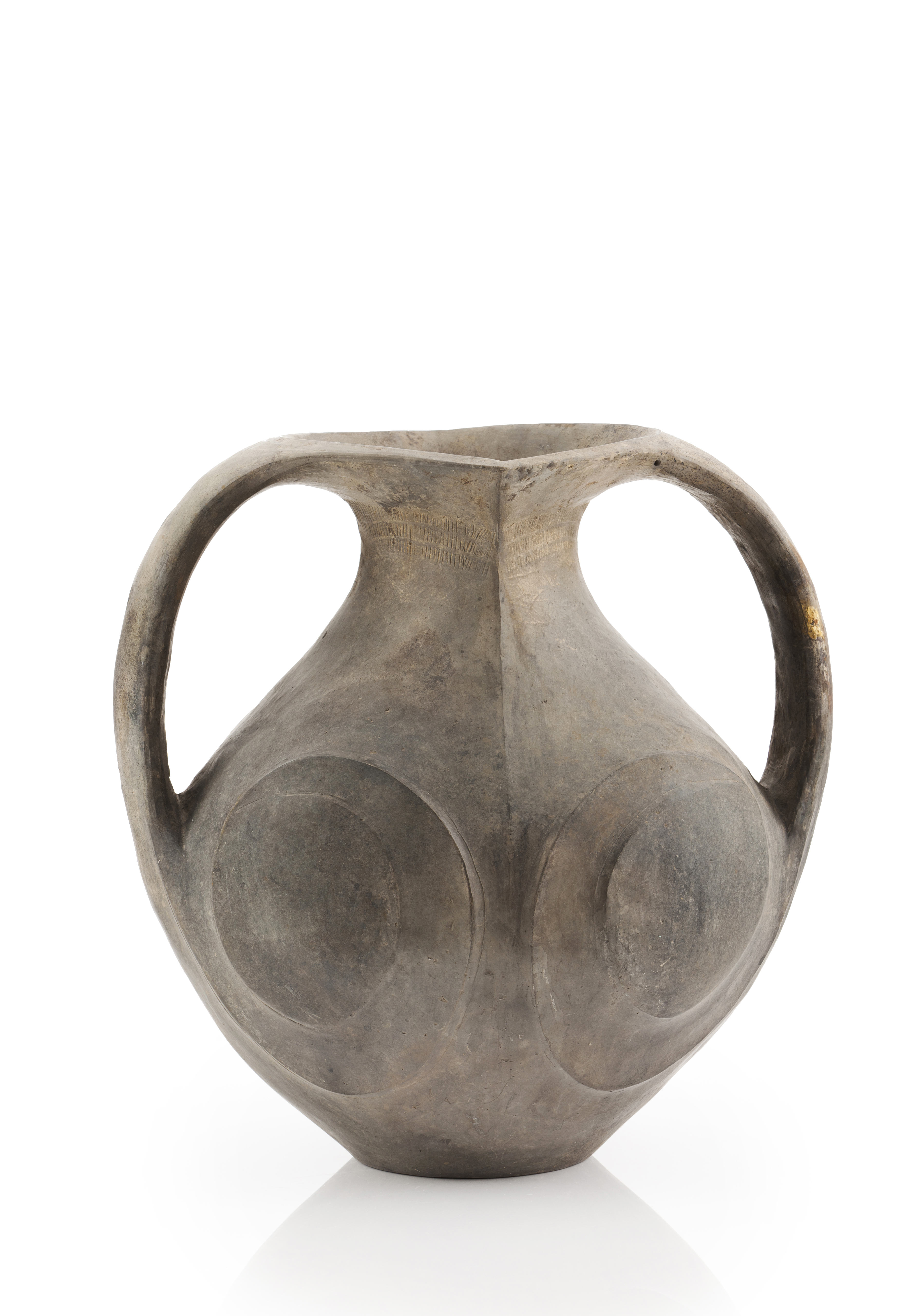 Two wide handles and engraved banded decoration to neck