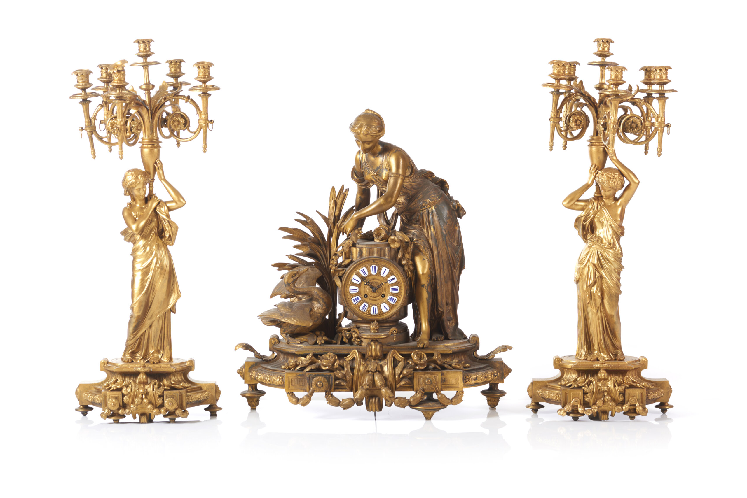 A "Leda and the swan" Napoleon III garniture