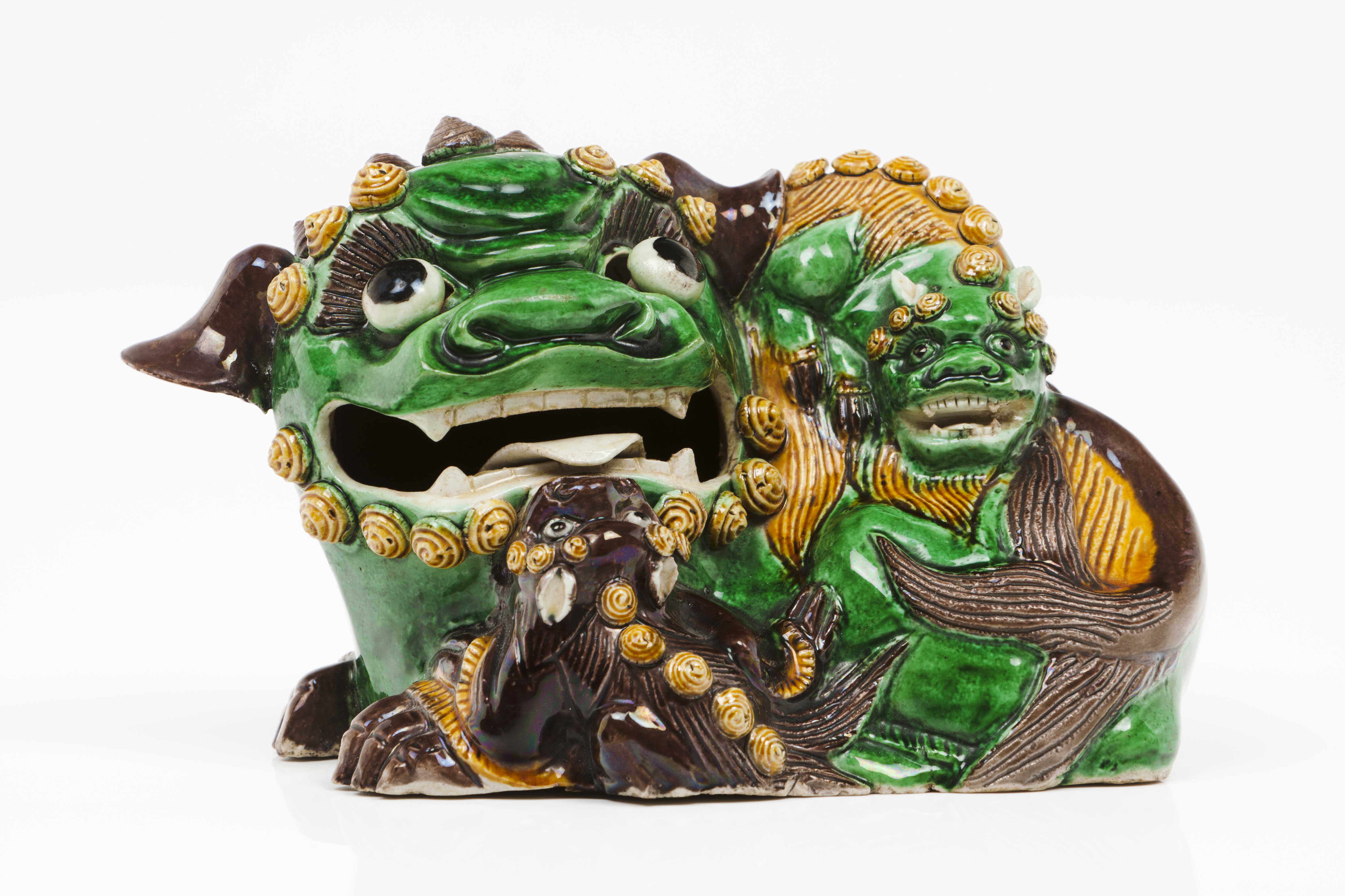Chinese porcelain sculpture depicting a lion and cub