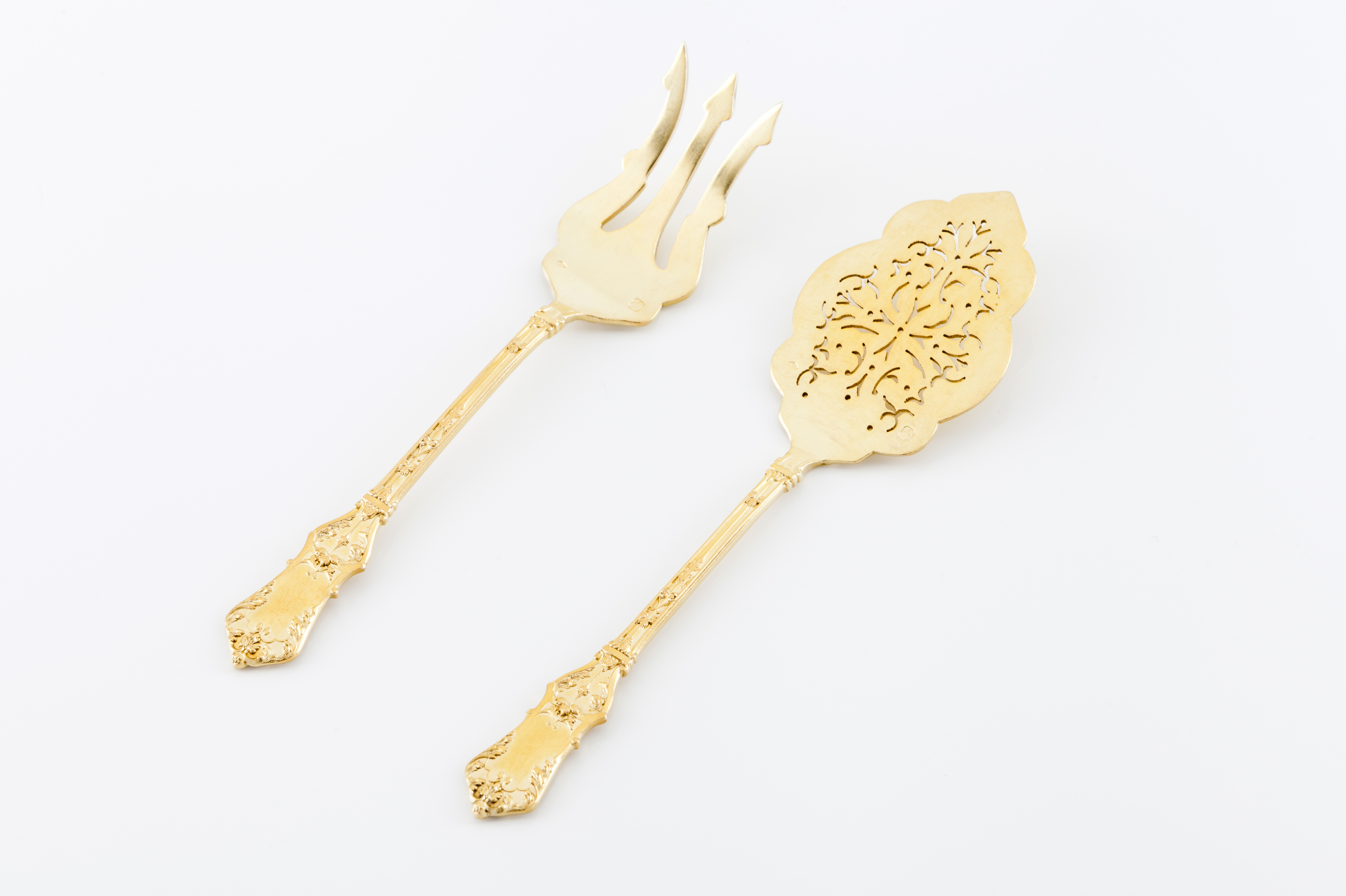 Floral, acanthus leaves, scrolls, lotus flowers and cartouche decoration. Pierced knife blade
