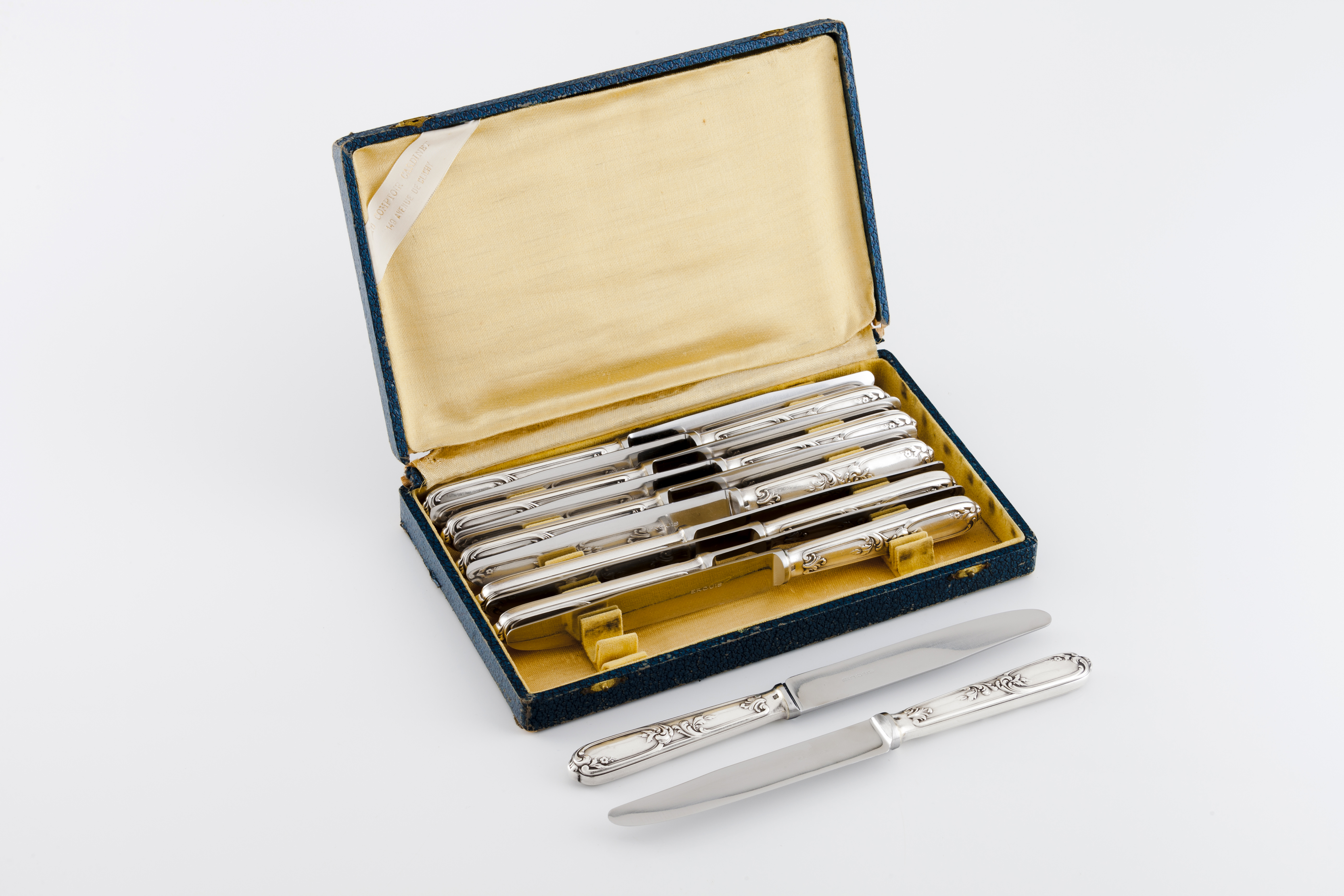 Comprising of 12 meat knives, 12 table forks and 12 soup spoons in the original storage case