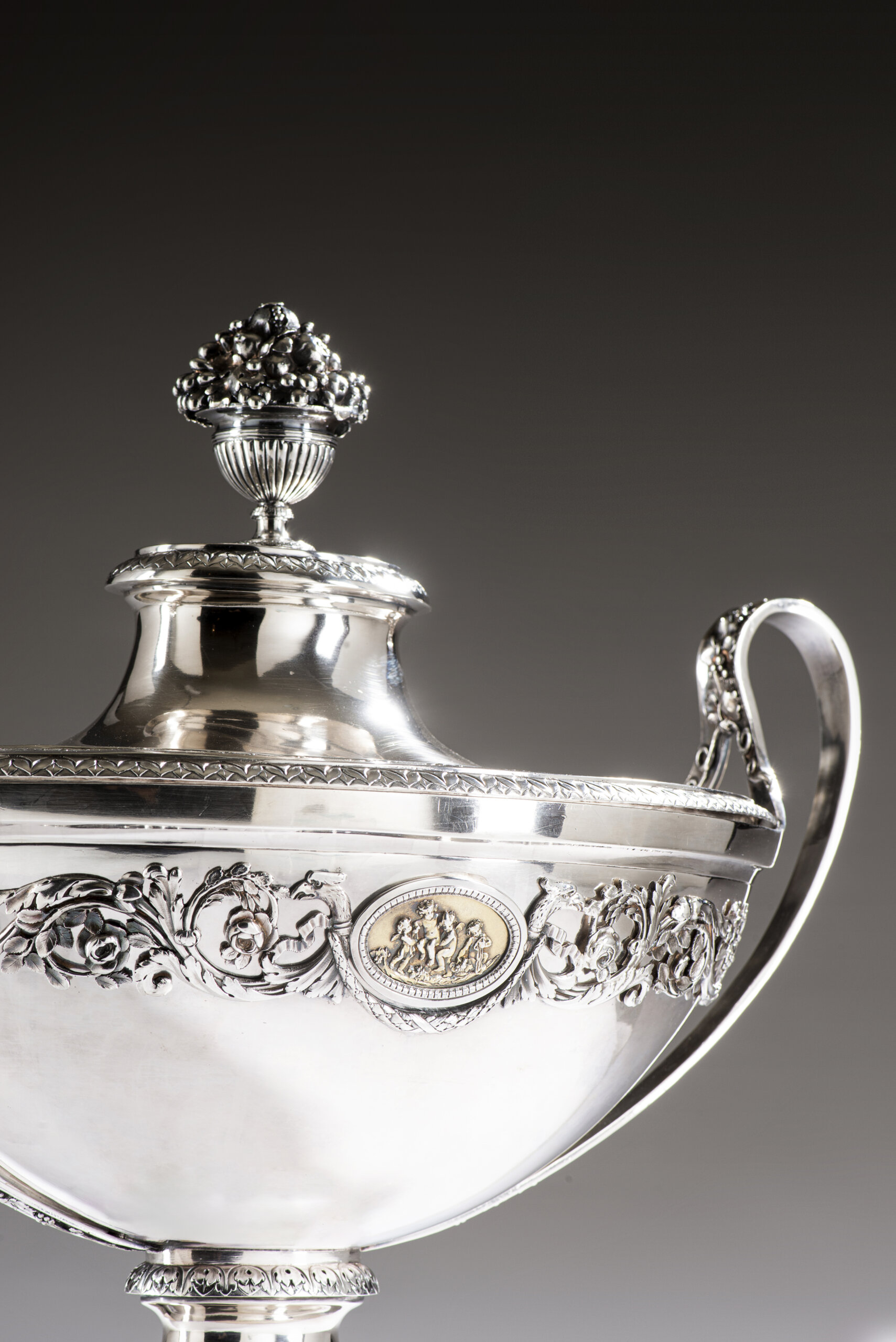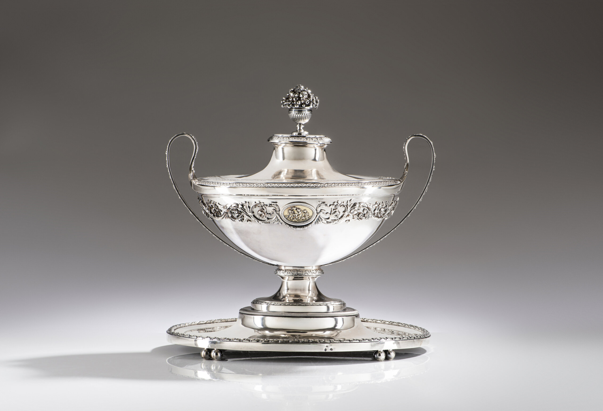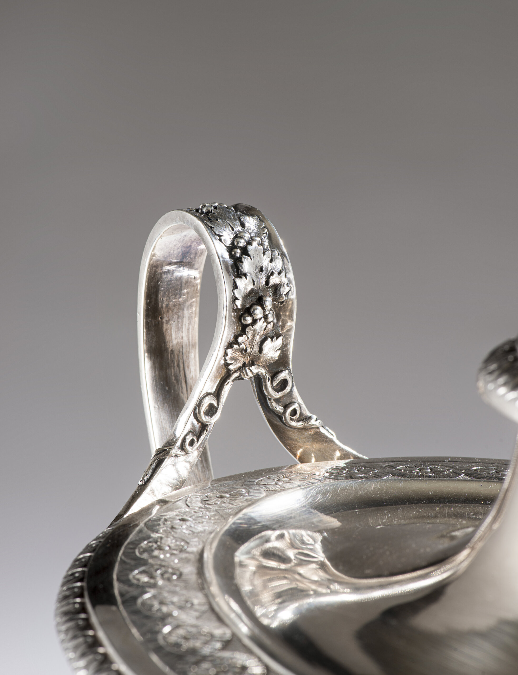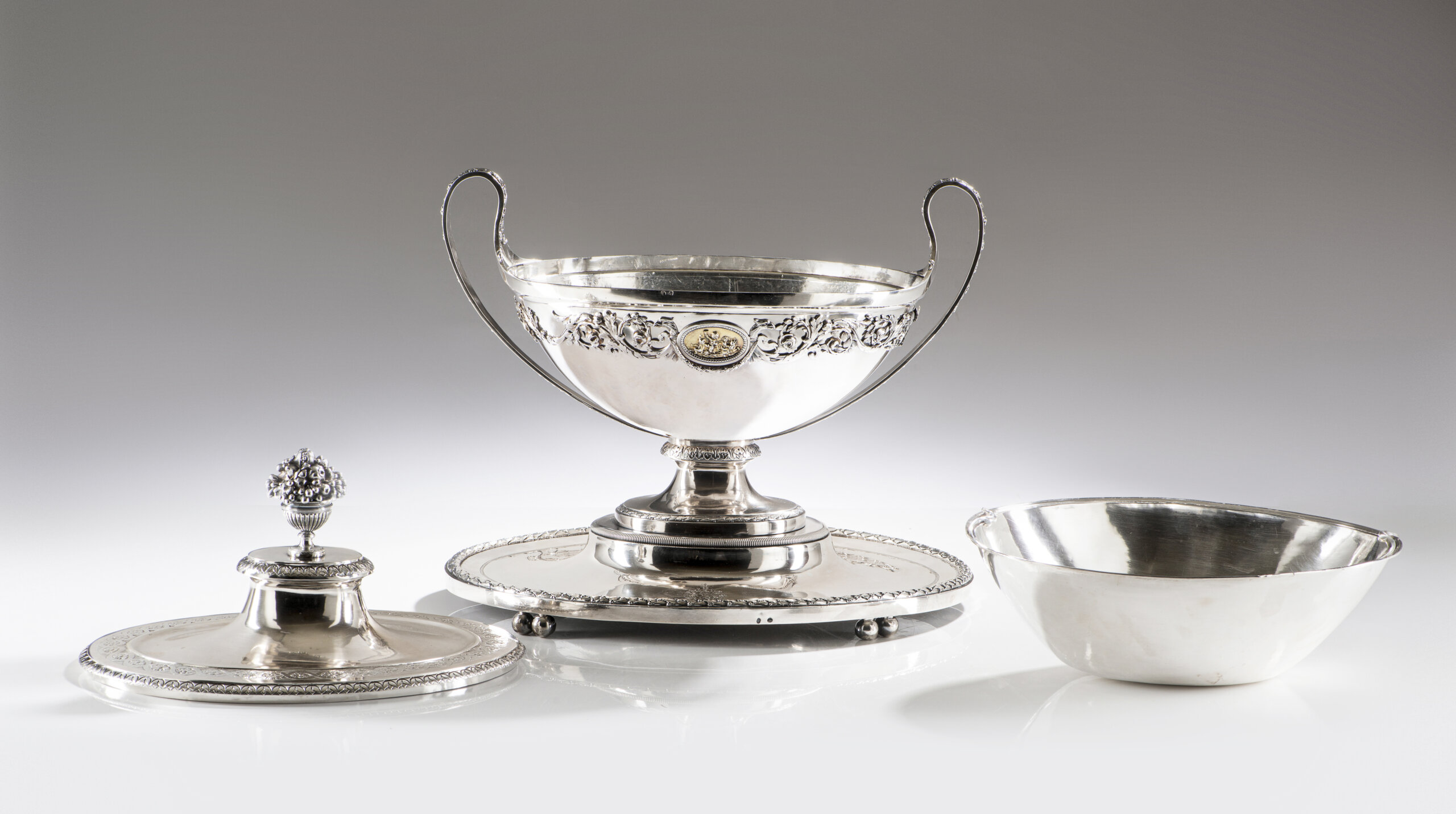 Pieces from this silver tableware set were presented at the Portuguese and French Goldsmithing Exhibition, held at the Fundação Ricardo Espírito Santo Silva in 1955. In the respective catalog, they were listed as works by the goldsmith Louis-Jean-Baptiste Cheret (1760-1832). At the 1934 exhibition at the Fundação Ricardo Espírito Santo, there was a sauceboat with an identical mark attributed to Louis-Cartier. It was sold at Christie's in the auction THE COLLECTION OF RITA ESPÍRITO SANTO as lot 49.