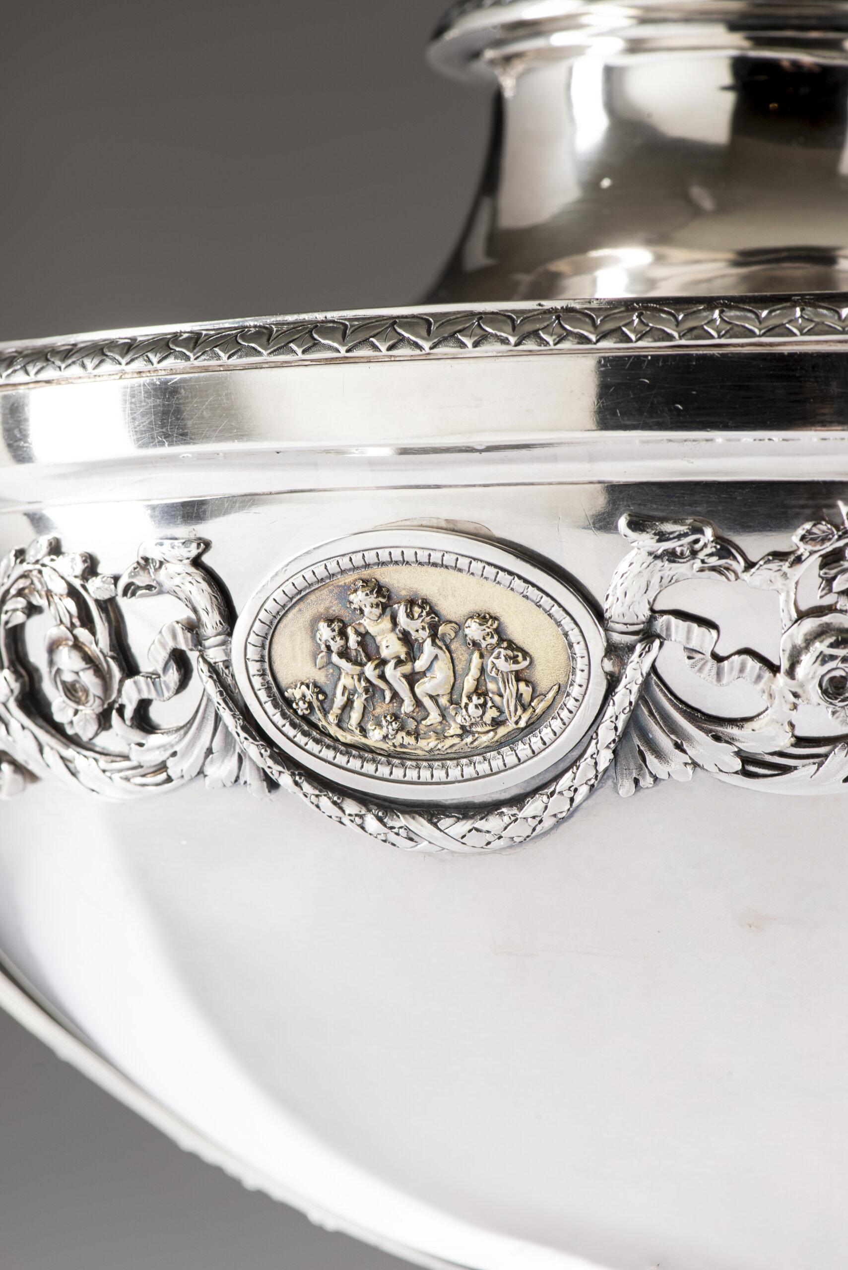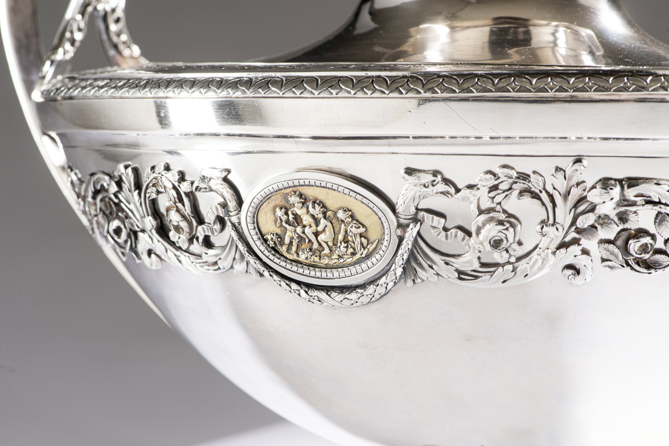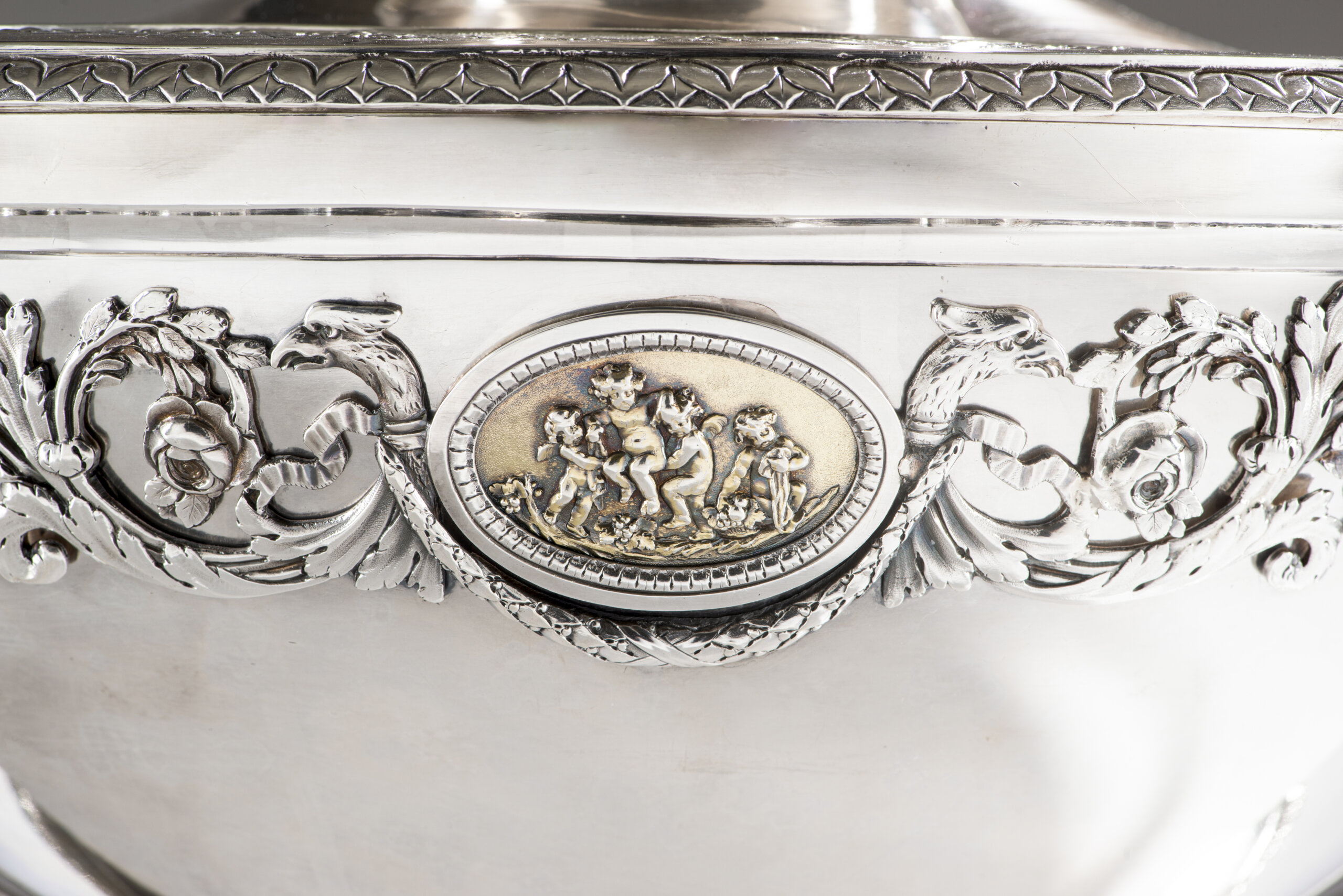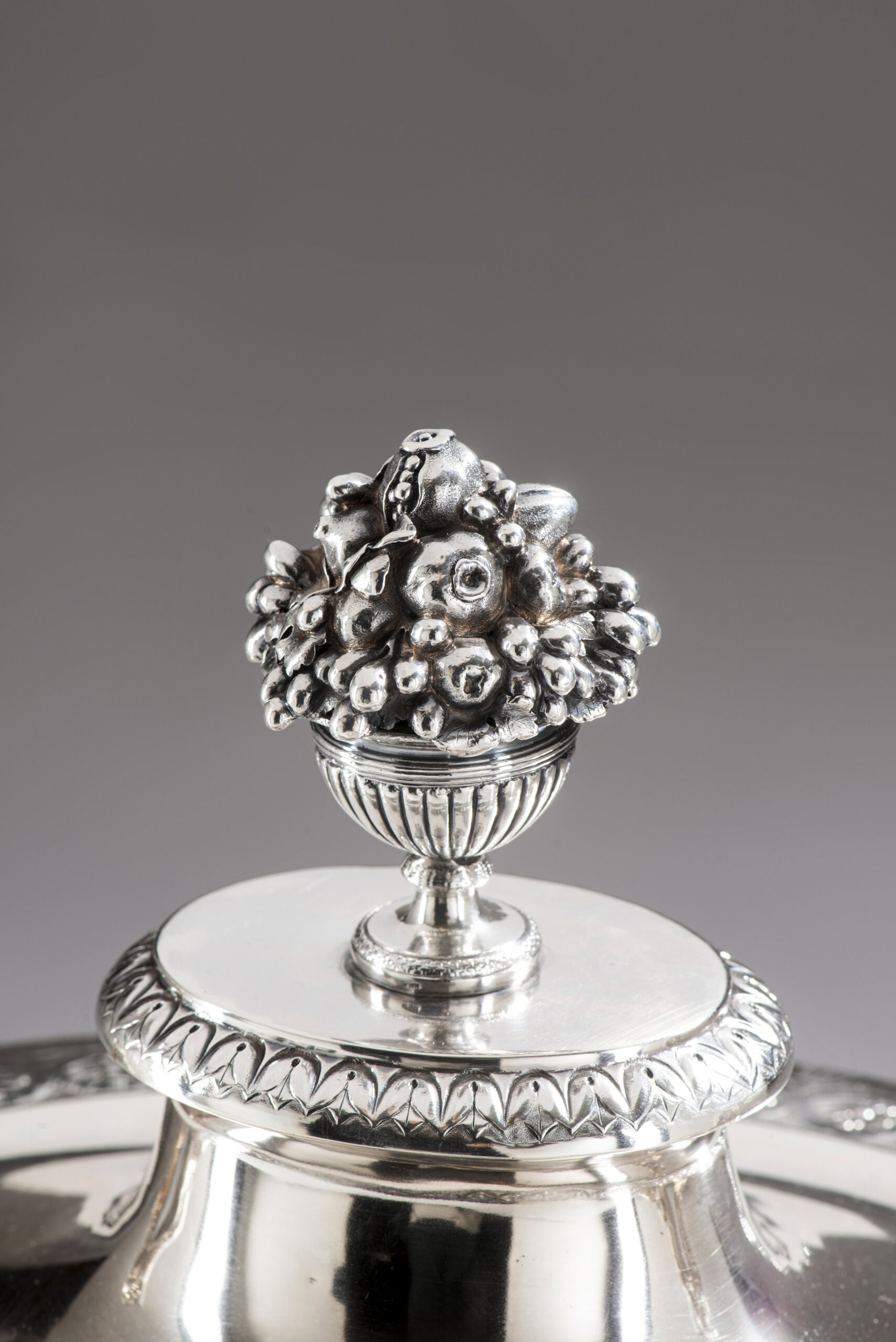 Pieces from this silver tableware set were presented at the Portuguese and French Goldsmithing Exhibition, held at the Fundação Ricardo Espírito Santo Silva in 1955. In the respective catalog, they were listed as works by the goldsmith Louis-Jean-Baptiste Cheret (1760-1832). At the 1934 exhibition at the Fundação Ricardo Espírito Santo, there was a sauceboat with an identical mark attributed to Louis-Cartier. It was sold at Christie's in the auction THE COLLECTION OF RITA ESPÍRITO SANTO as lot 49.