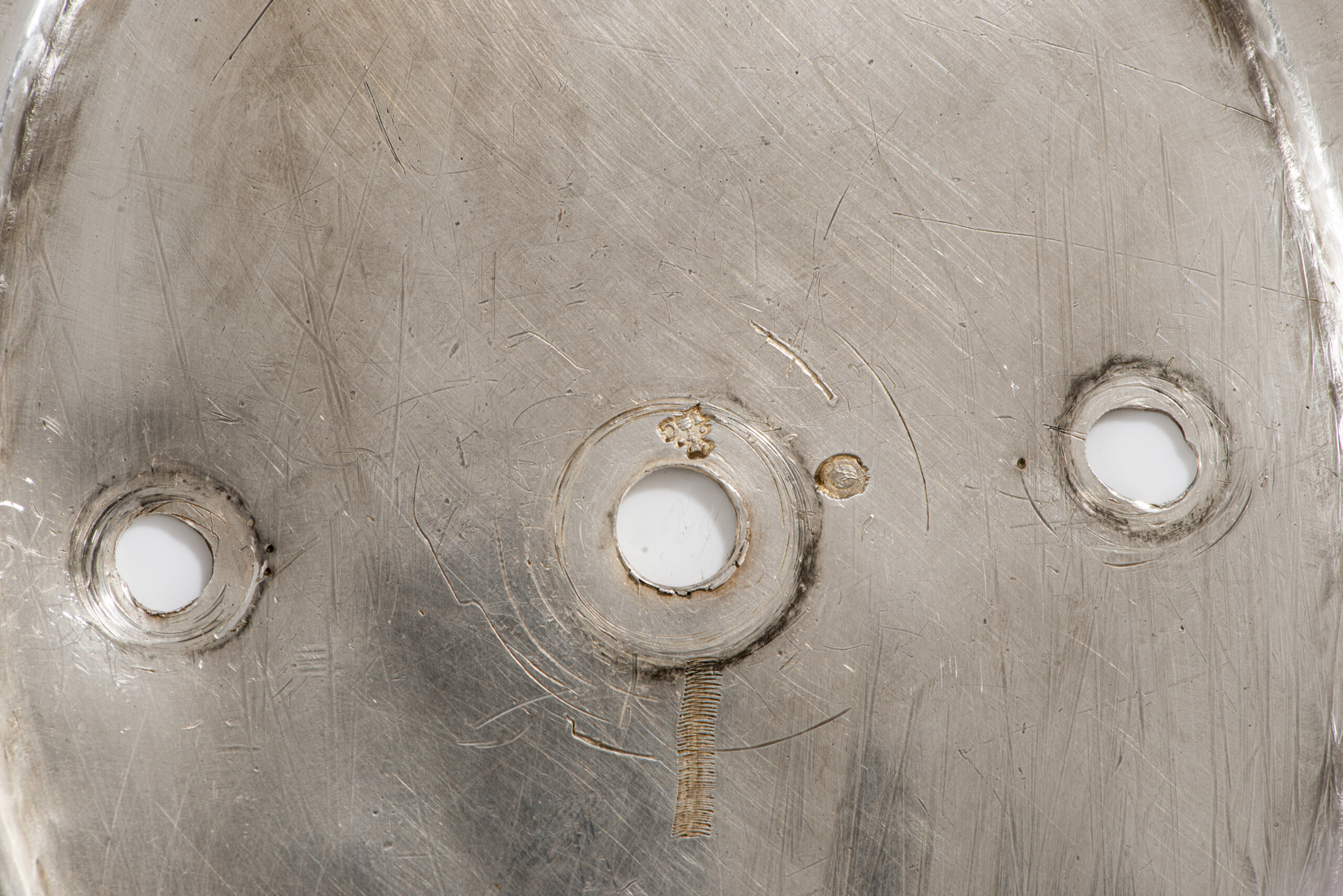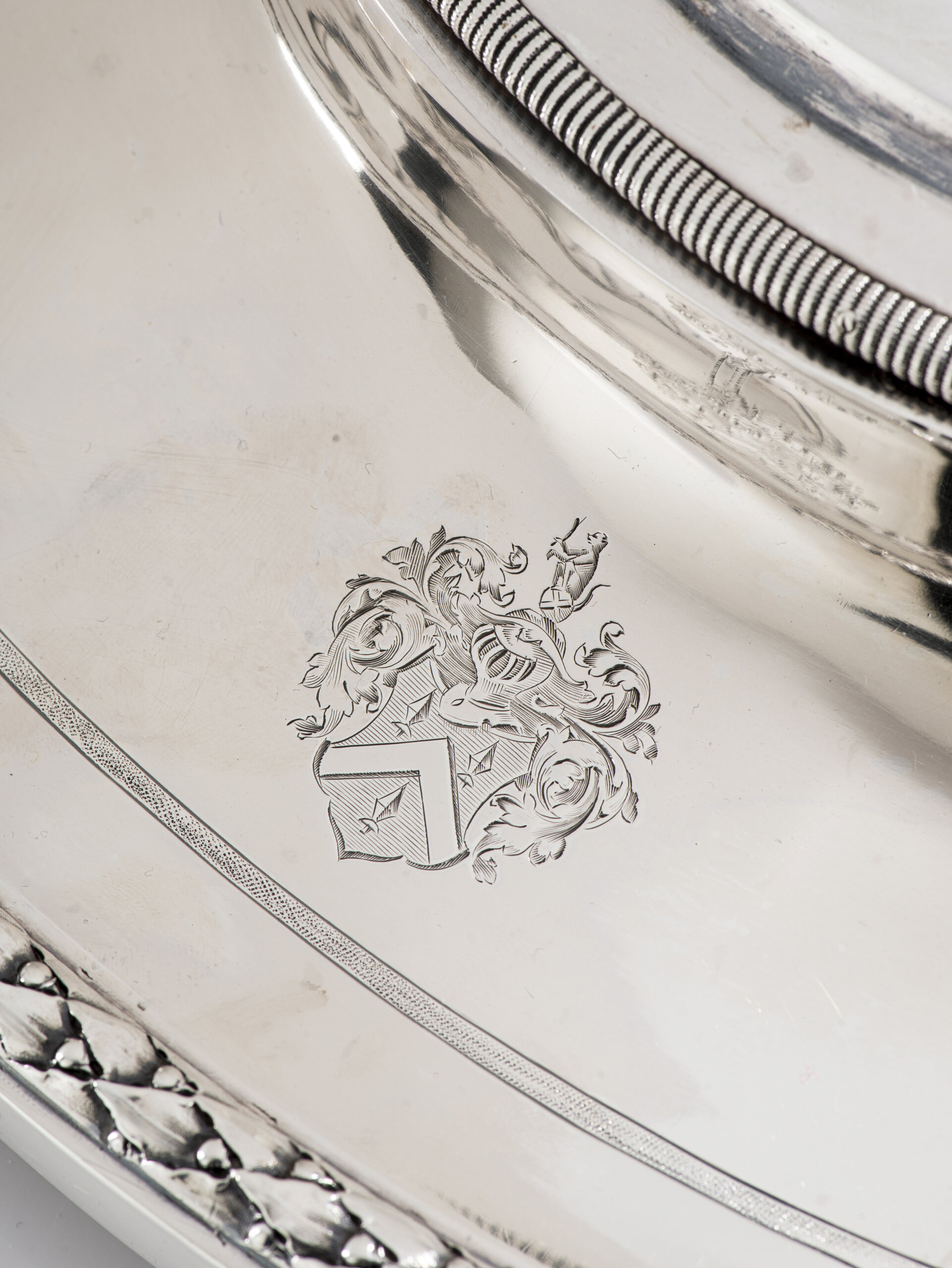 Oval stand with polished decoration, engraved at the center with a European Family Coat of Arms