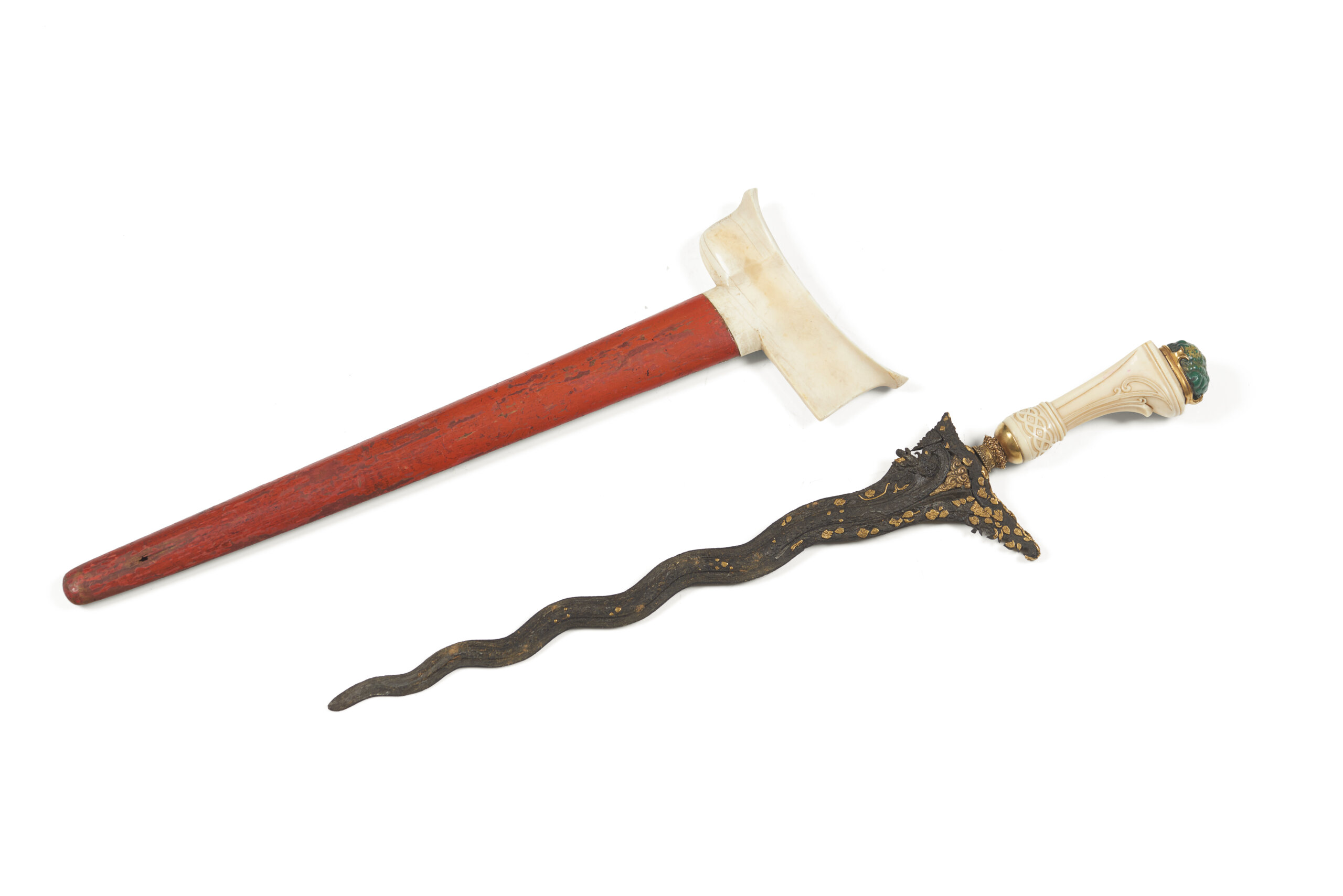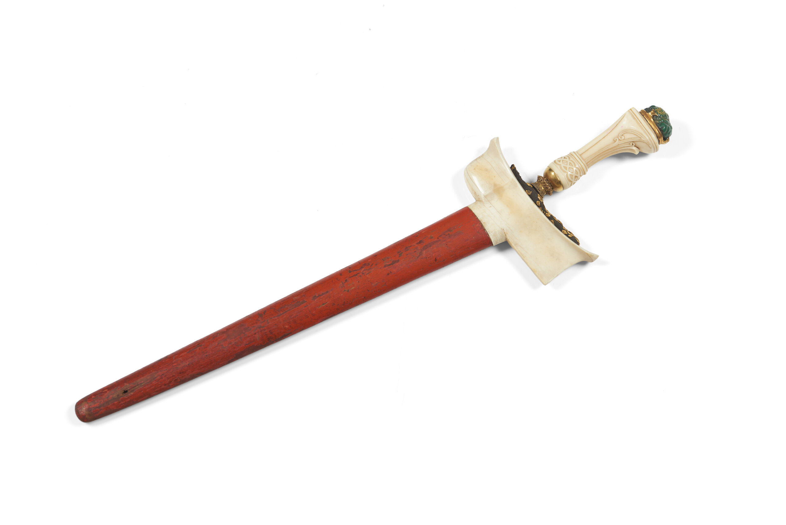 Red painted scabbard of Portuguese caravel shaped ivory mouth