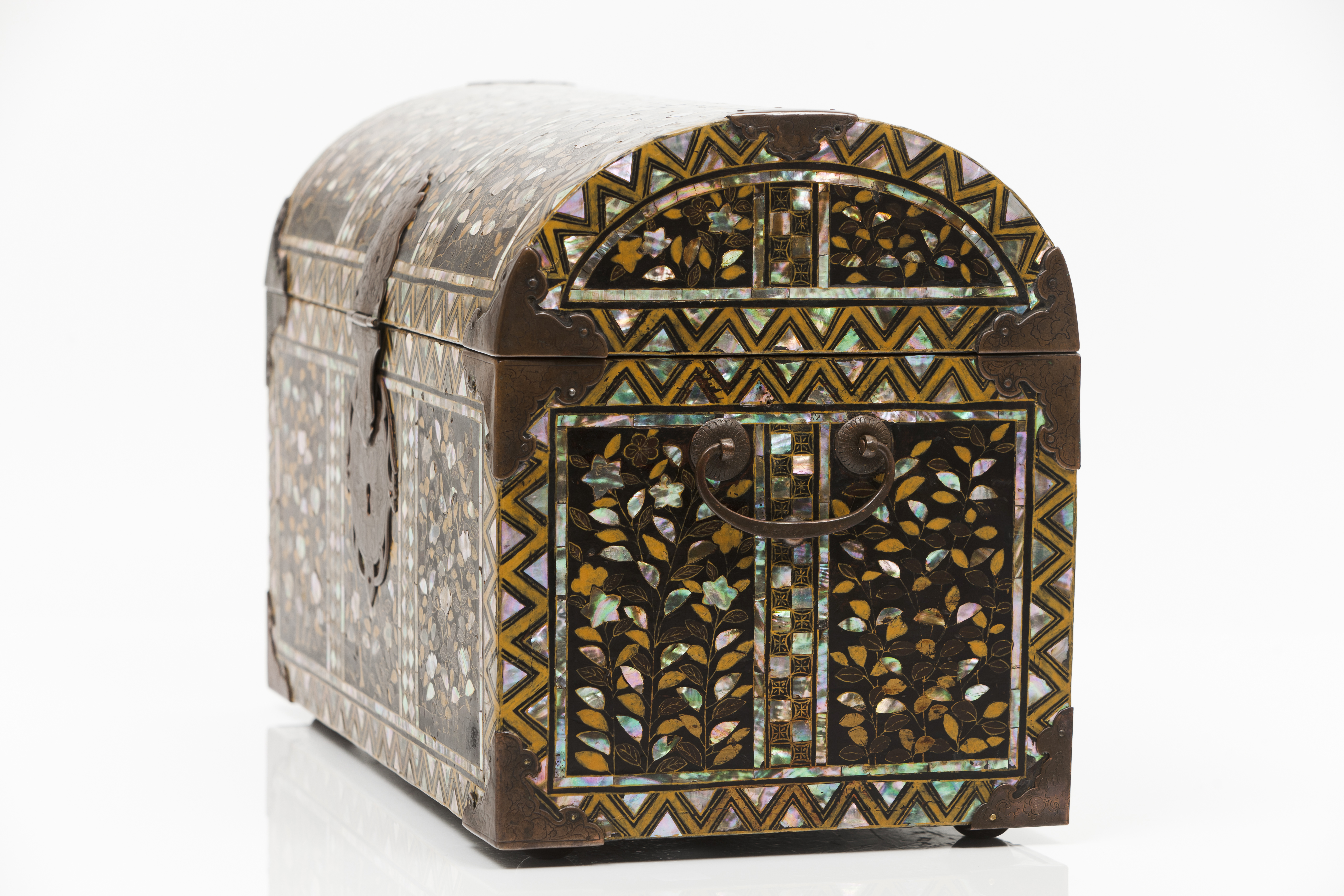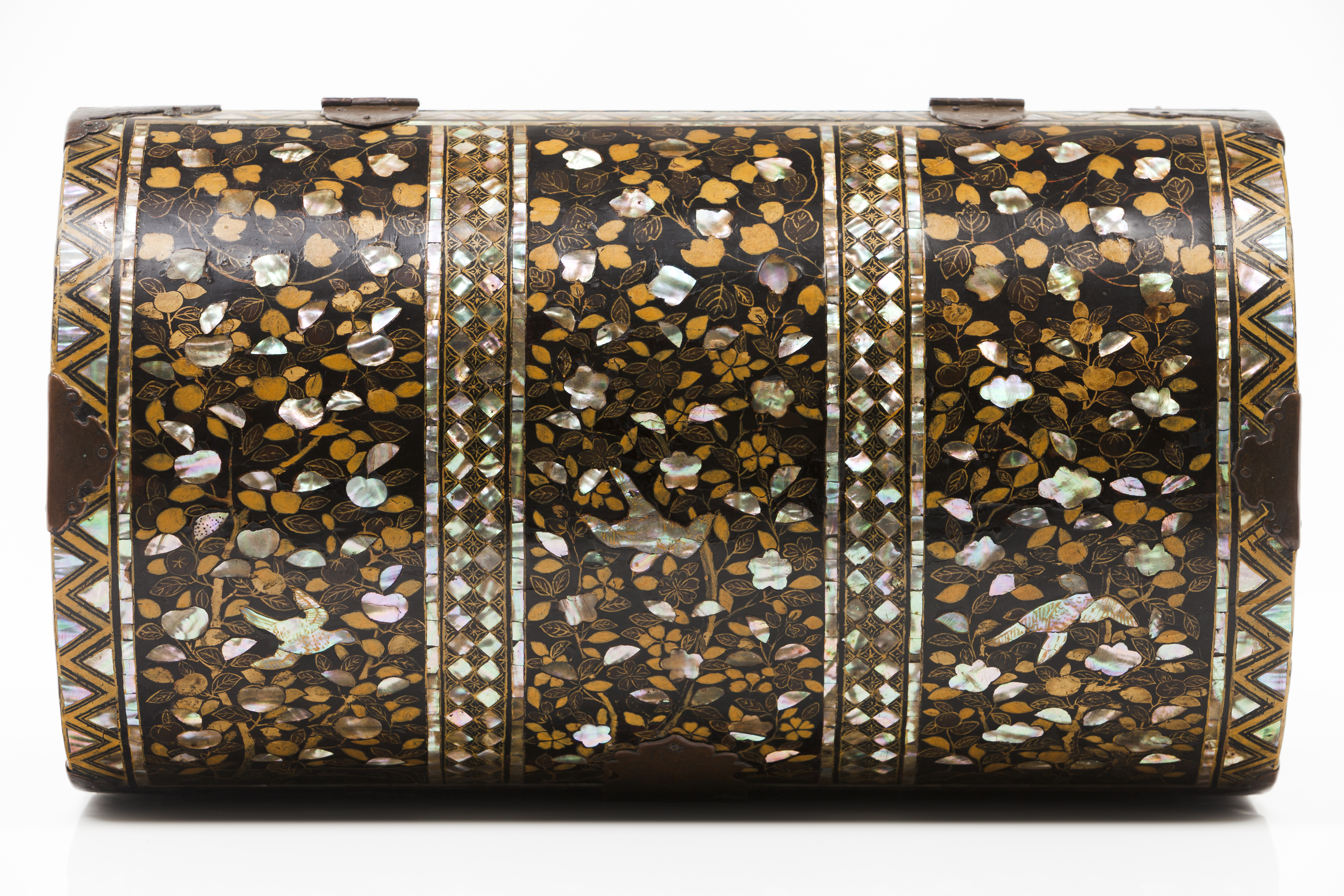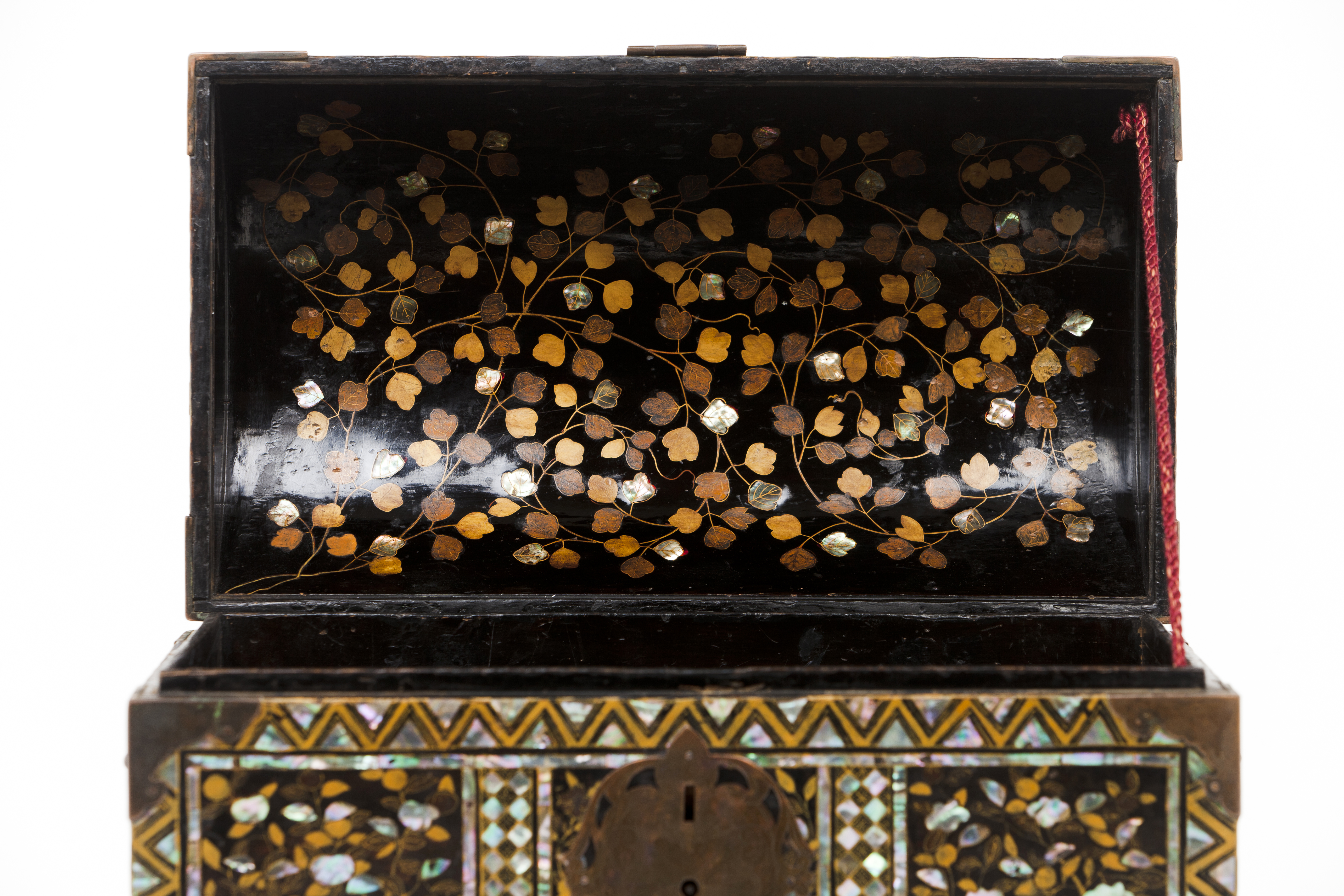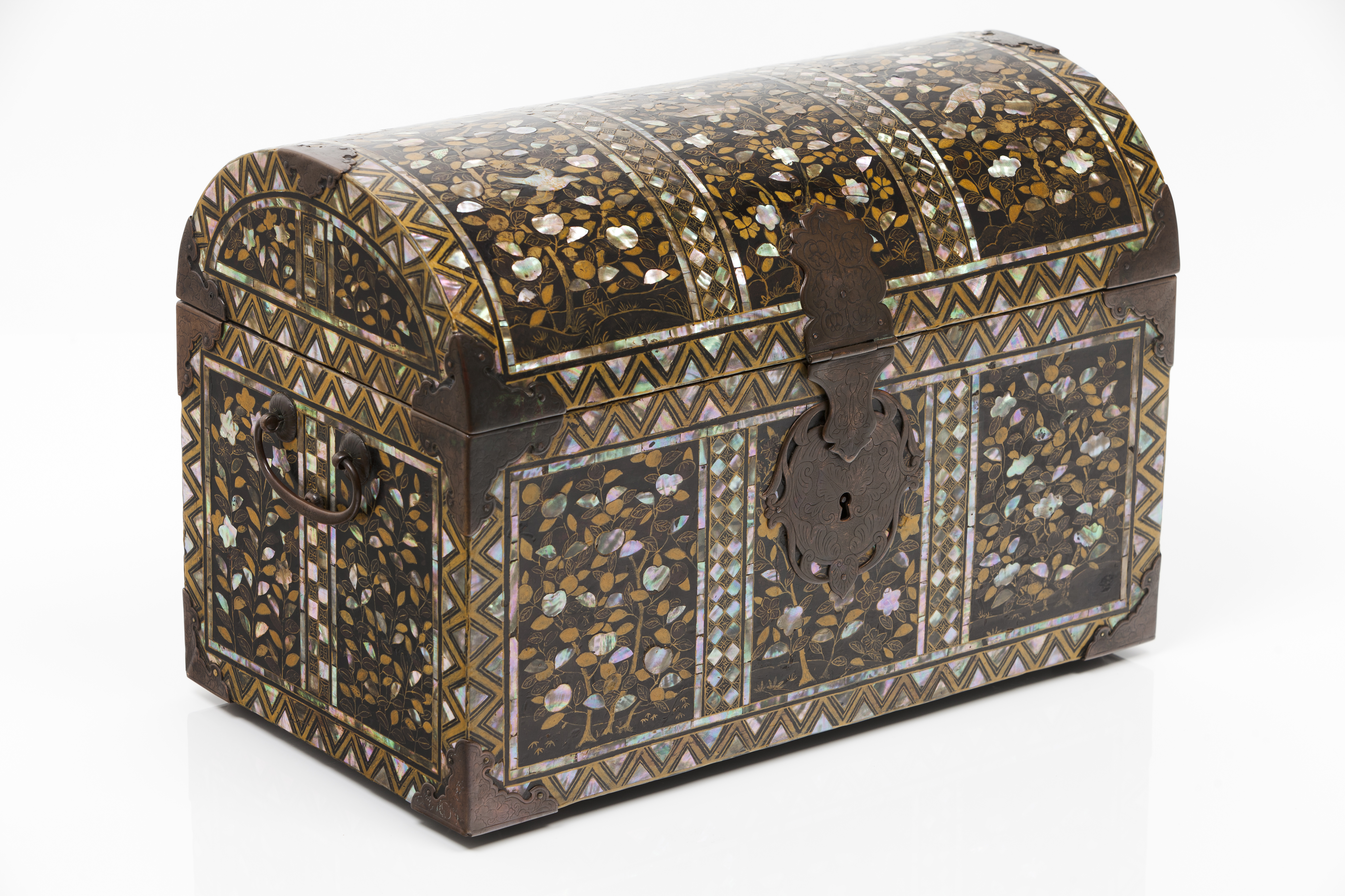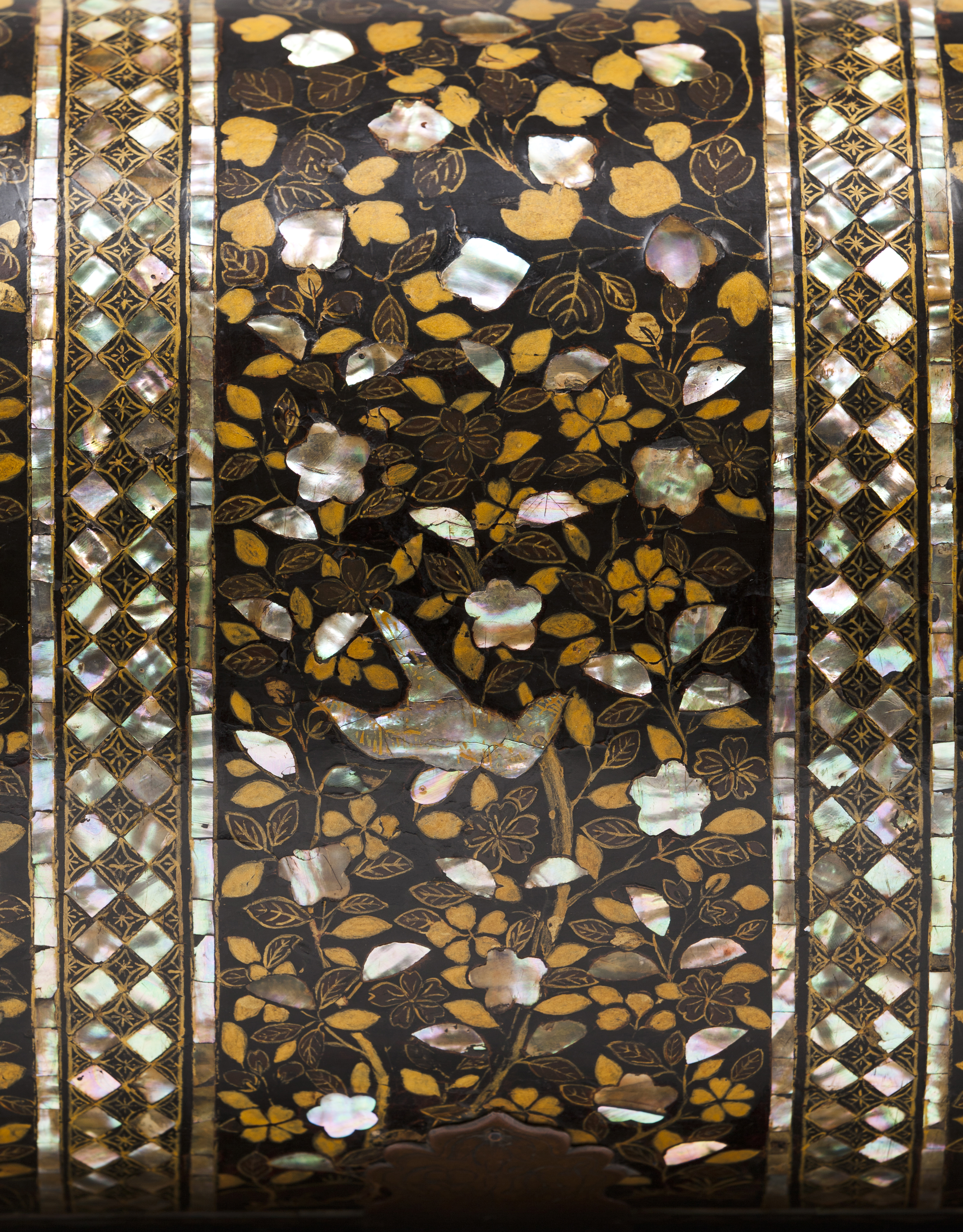 Panelled Namban "karakusa" decoration separated by inlaid mother-of-pearl bands