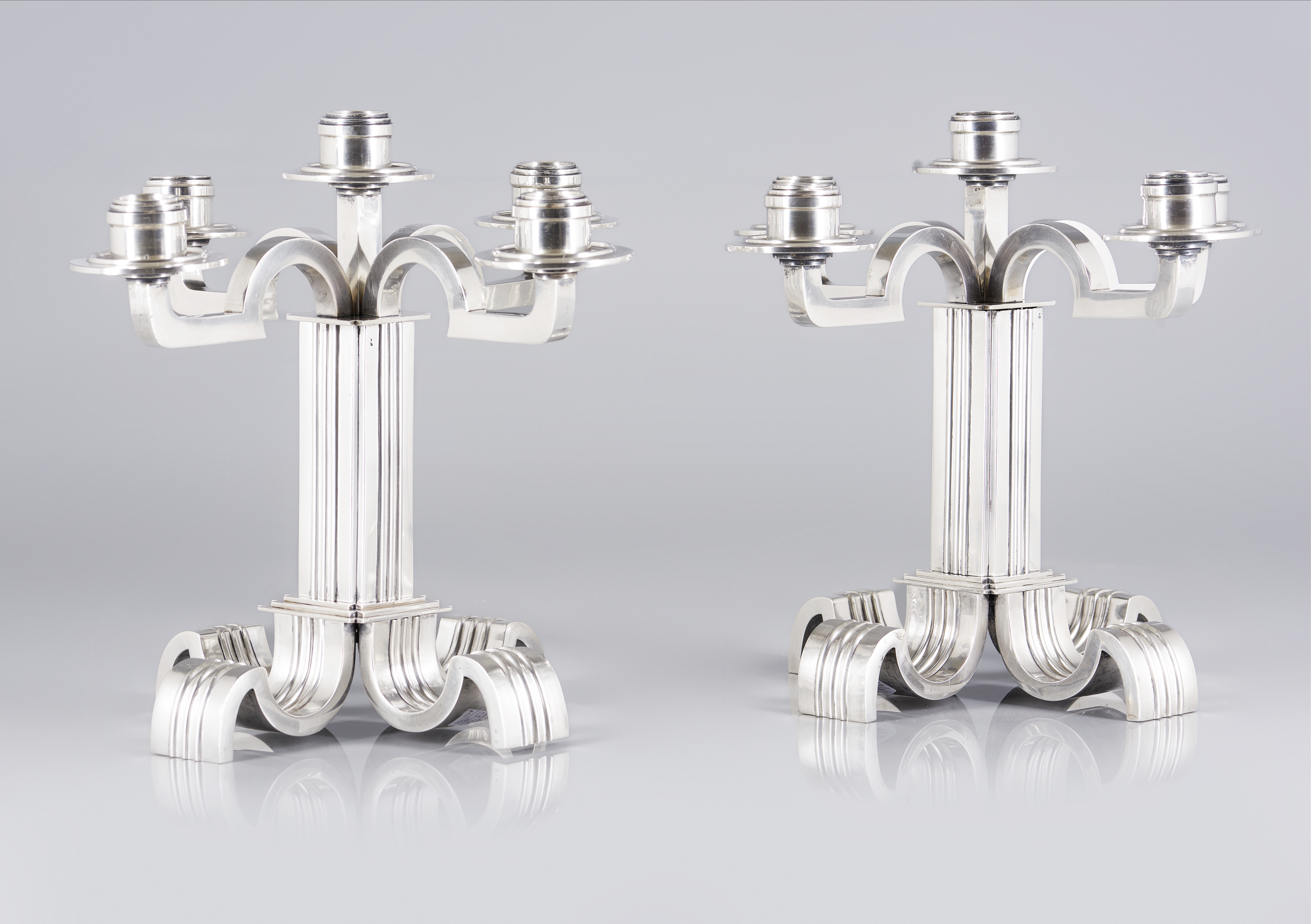 A pair of Art Deco five branch candelabra