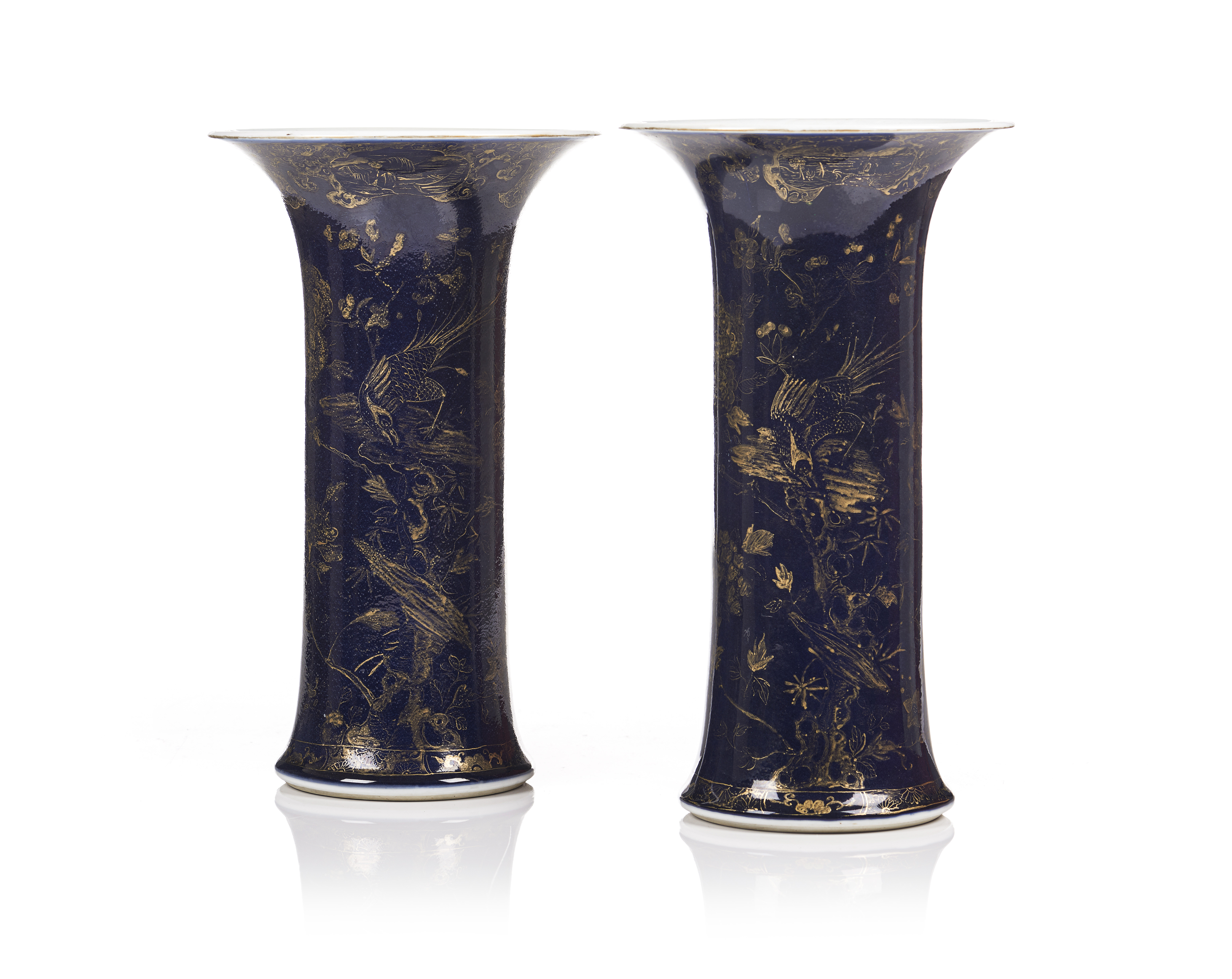 Powder-blue decoration of gilt floral and pheasant motifs