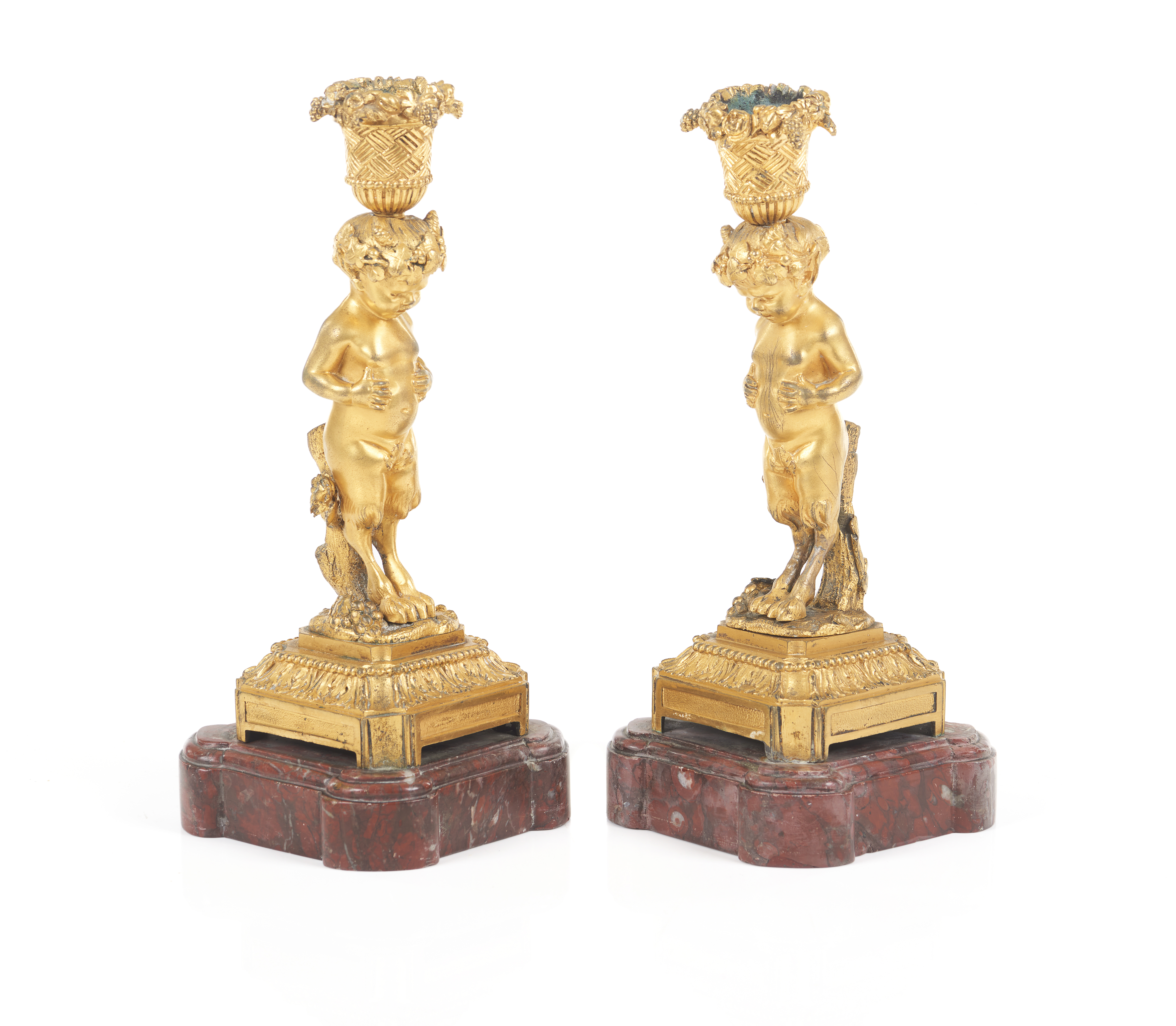 Satyr shaped shaft on rouge griotte marble stand