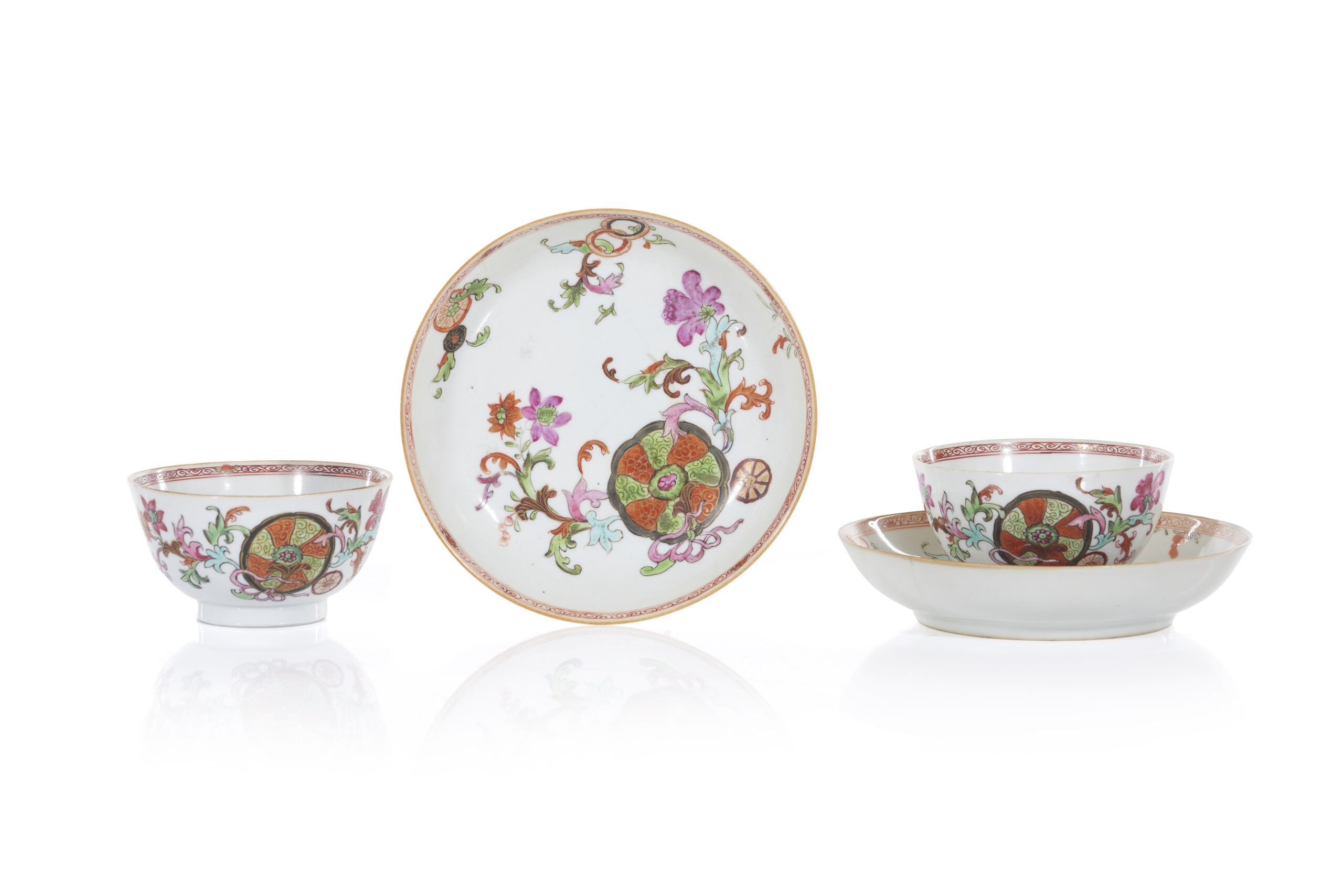 A pair of Chinese export porcelain 'Tea Leaf' cups and saucers