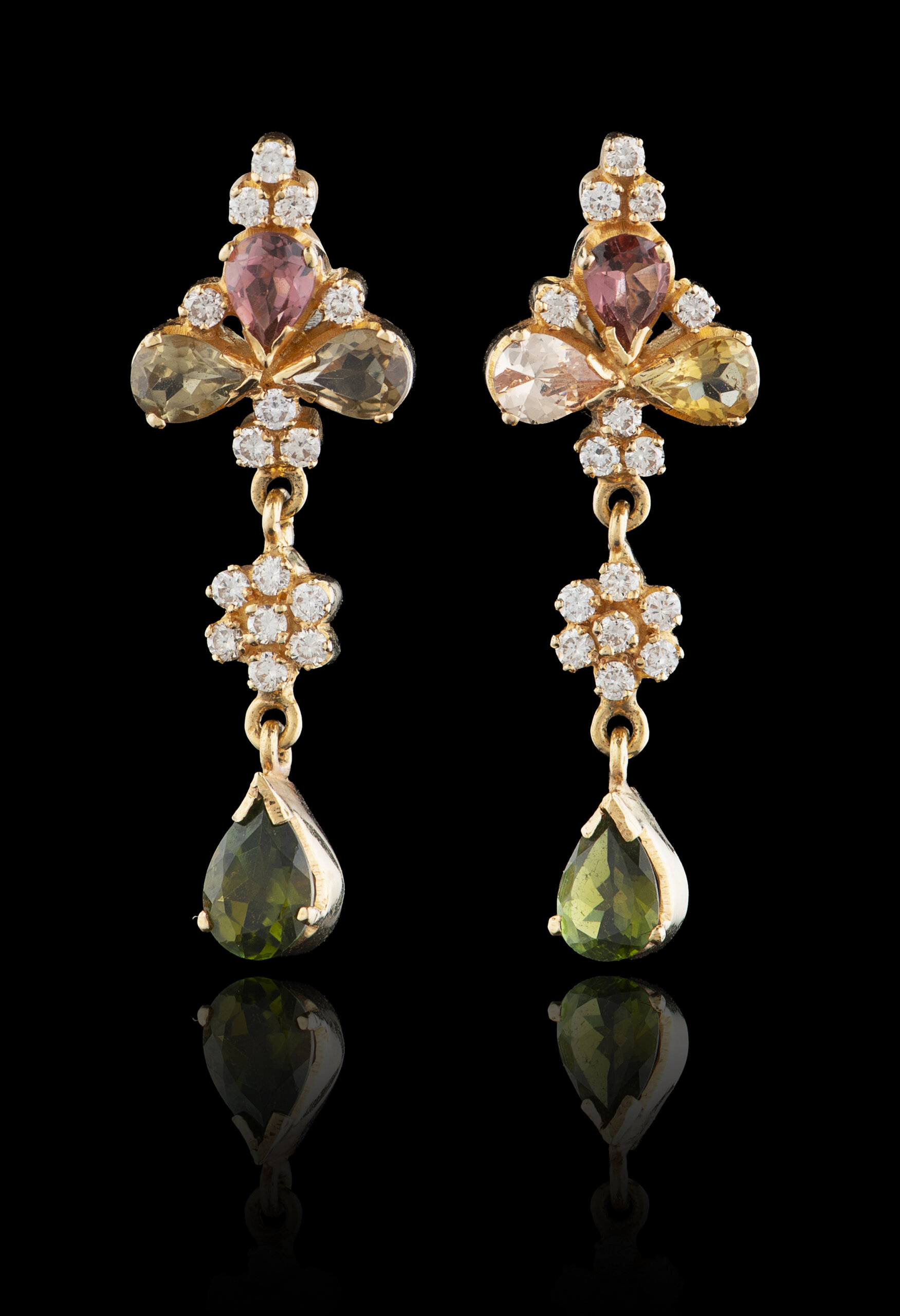 Set with 4 pear-cut citrines and 4 pear-cut tourmalines, 30 brilliant-cut diamonds with an approximate total weight of 0.60 ct.