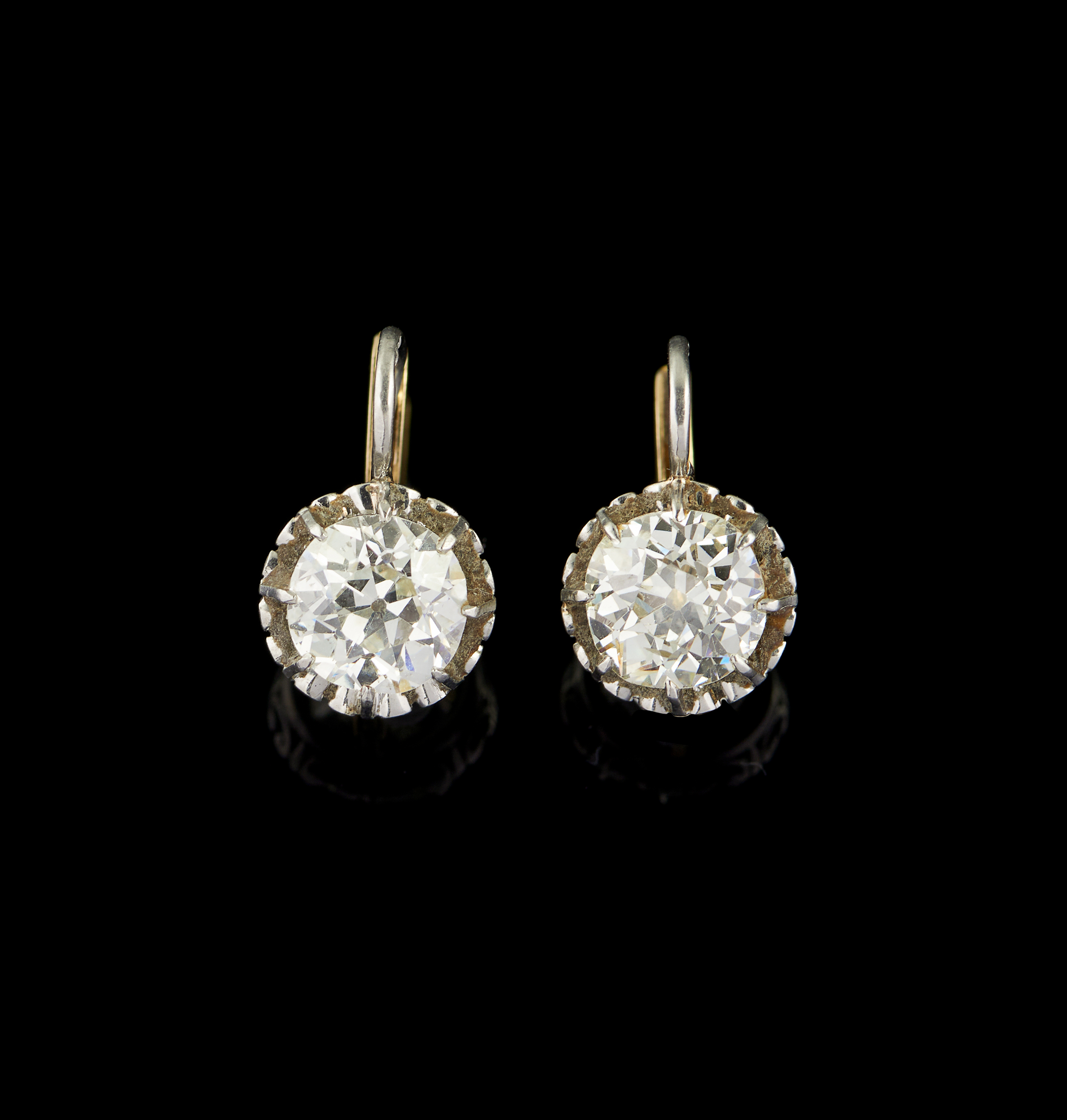 Set with 2 ancient brilliant cut diamonds weighing approximately 1.55 ct.