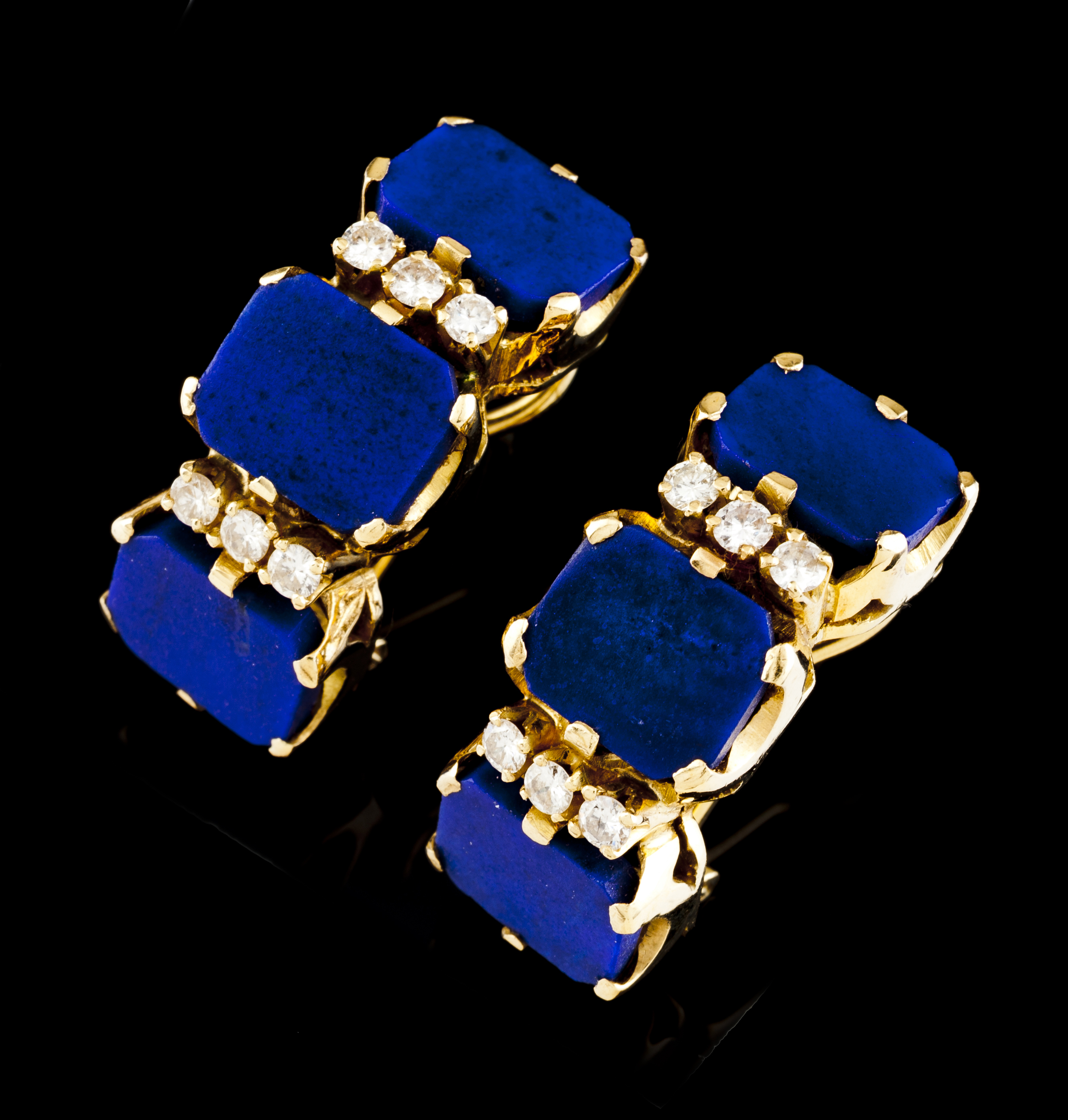 Set with 6 lapis lazuli plaques and 12 brilliant cut diamonds totalling approximately 0,70 ct.
