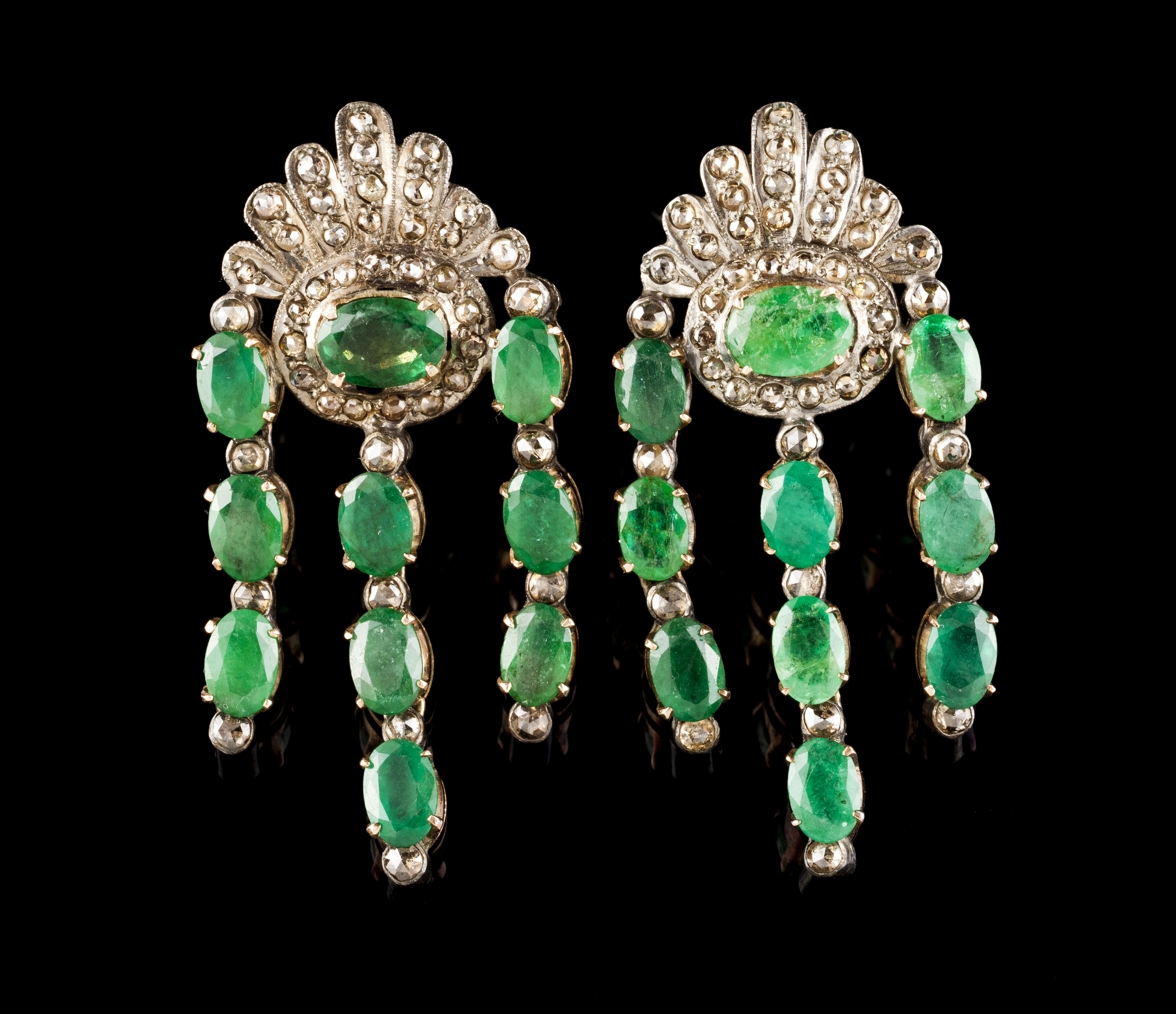 Set in 835/000 silver and 9kt (375/000) gold with rose cut diamonds and 20 oval cut emeralds